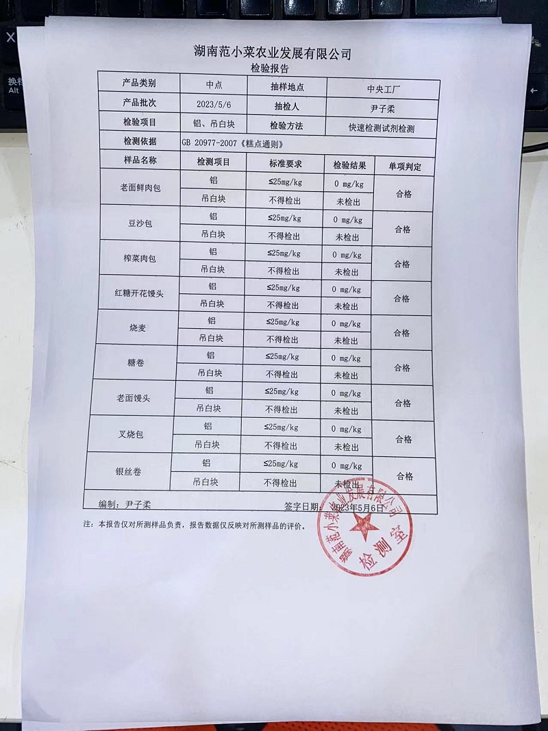 范小菜热食肉制品、调味料、 一品佳、范小菜中点、水产、农残、速冻米面制品2023.5.6