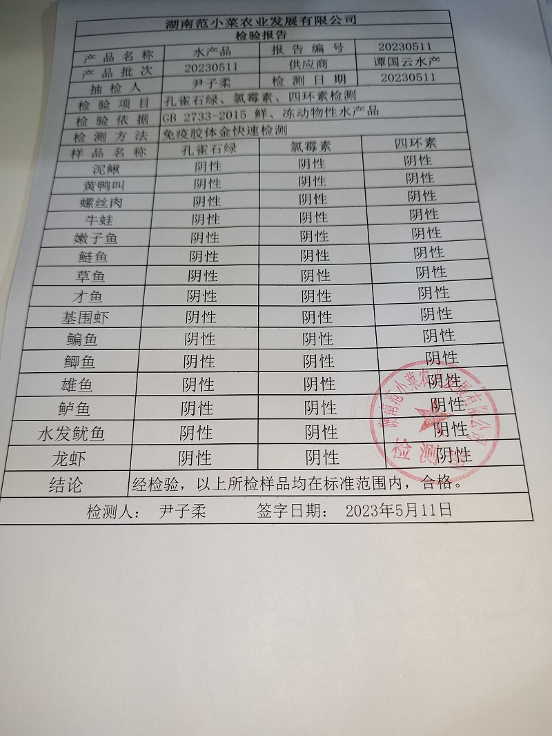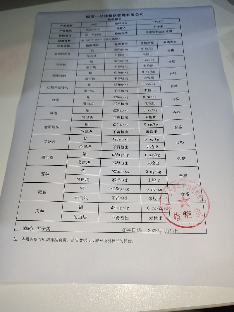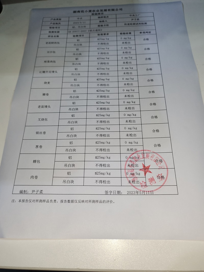 范小菜、一品佳热食肉制品、意粉、调味料、 中点、水产、农残、速冻米面制品2023.05.11