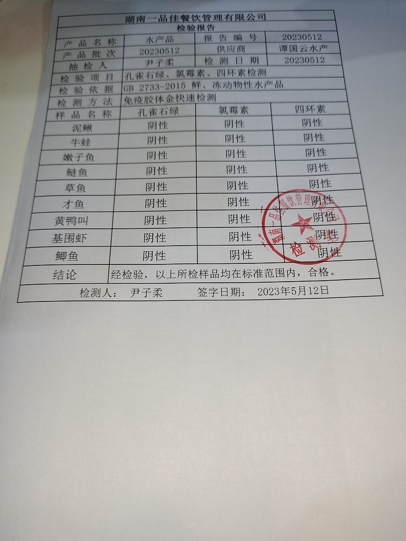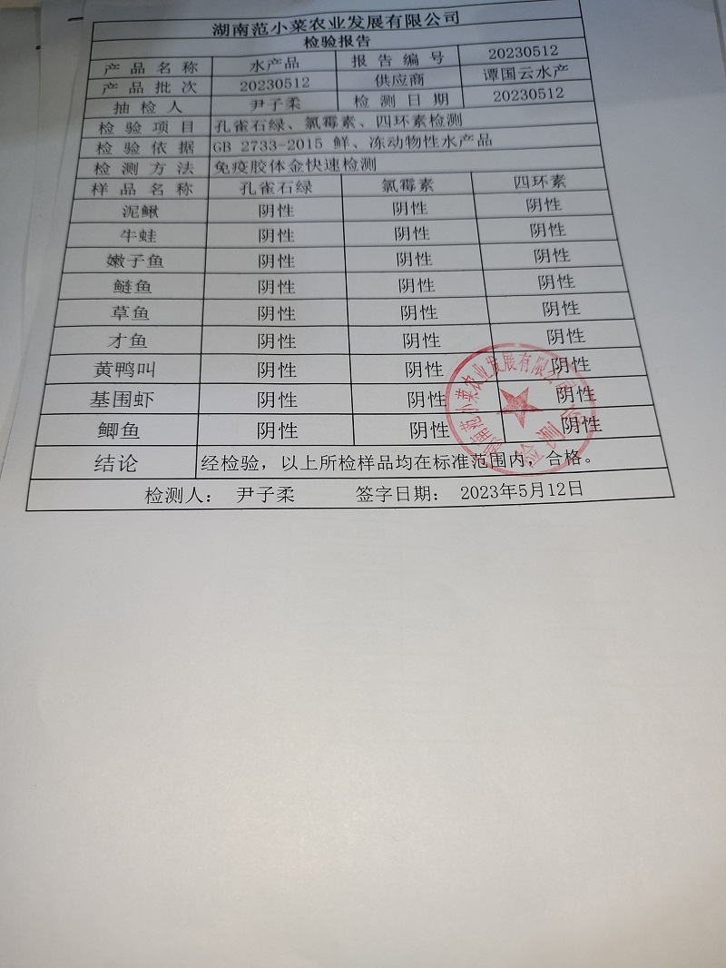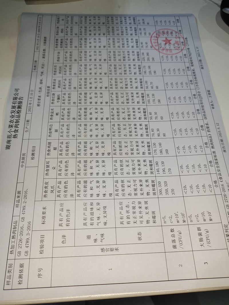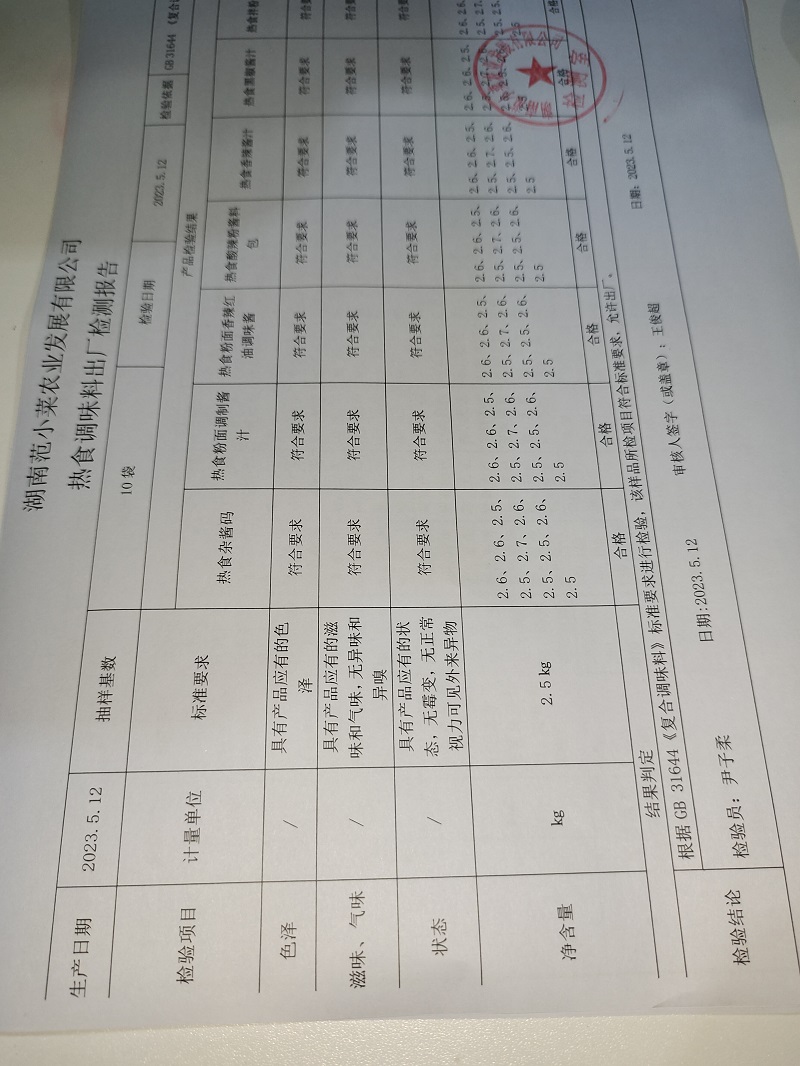 范小菜热食肉制品、调味料、 一品佳中点、水产、农残2023.0512