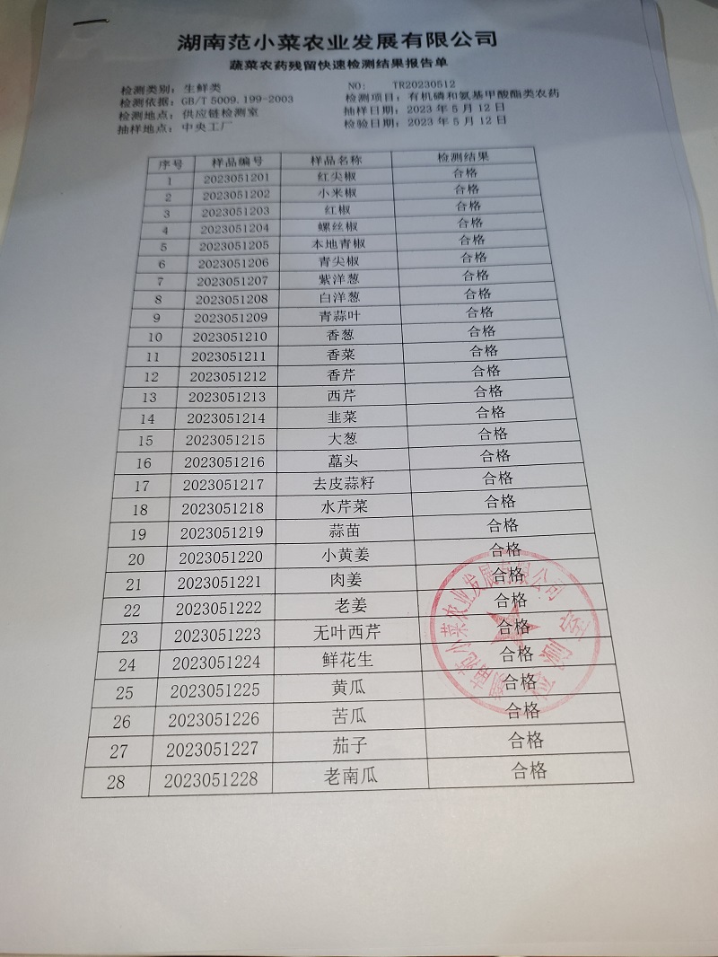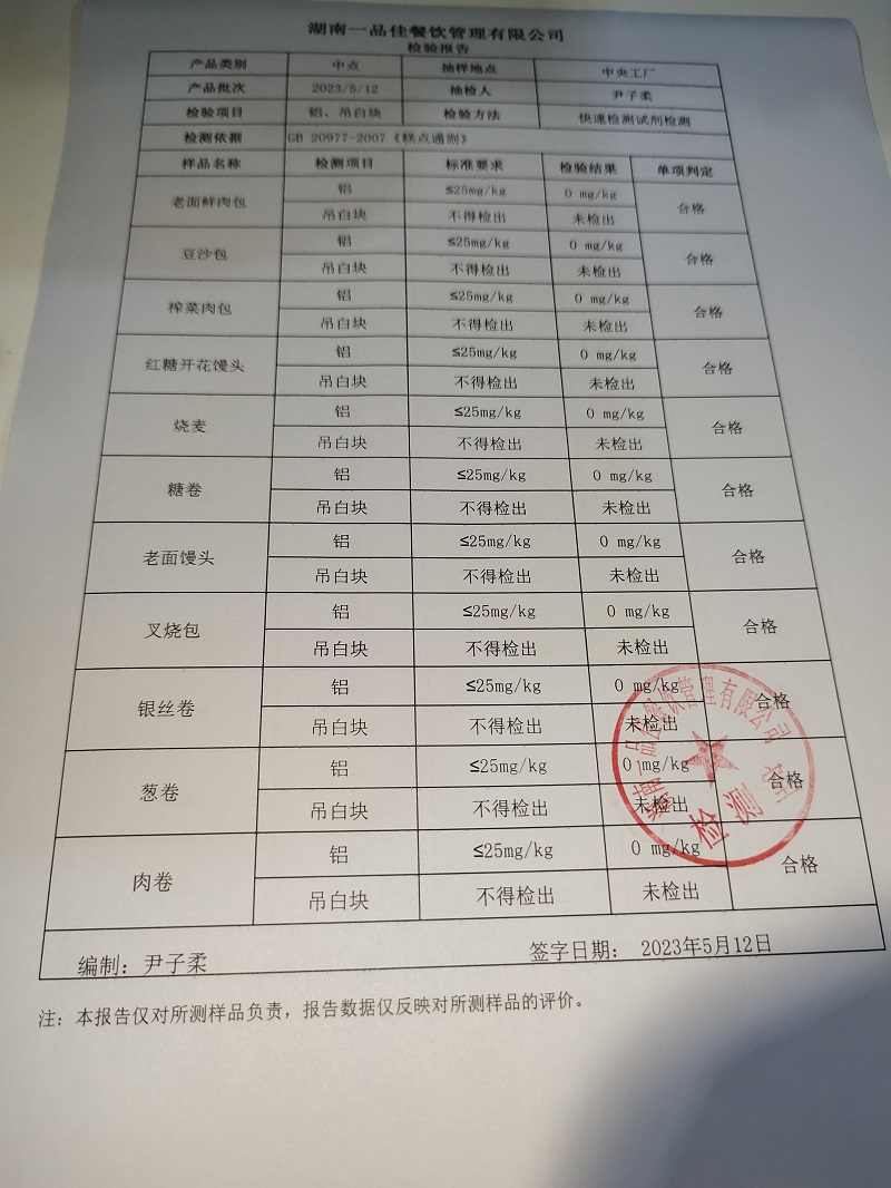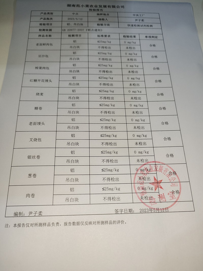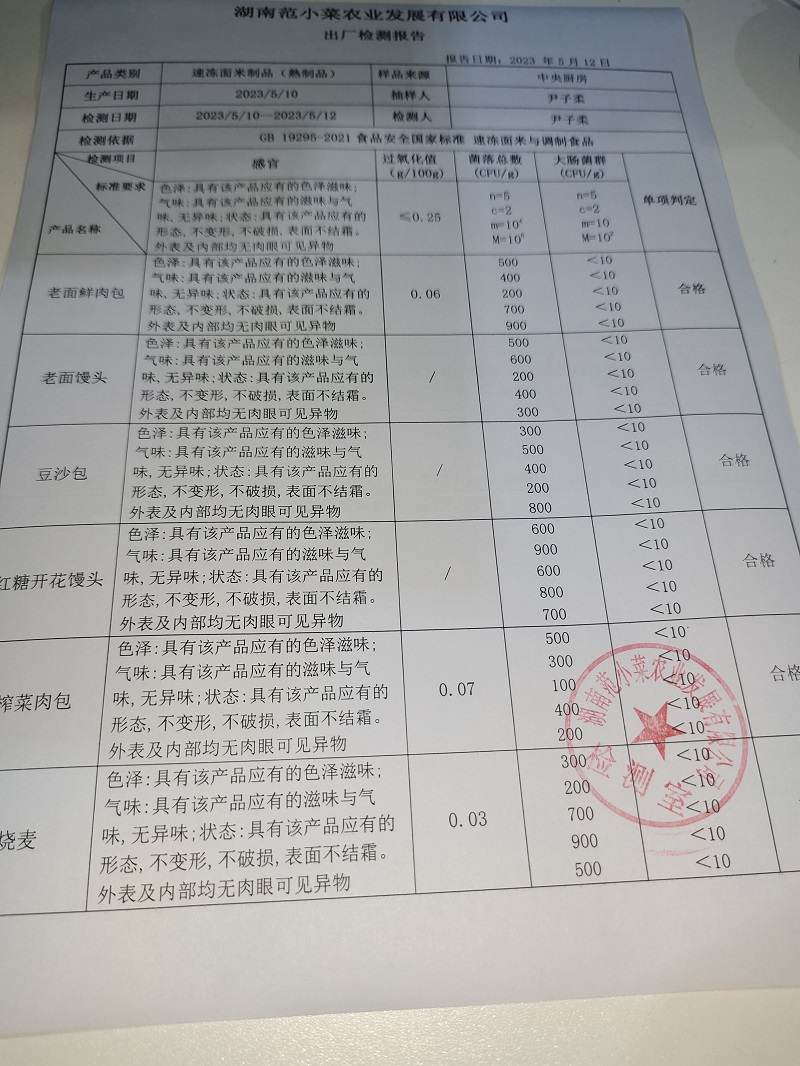 范小菜、一品佳热食肉制品、意粉、调味料、 中点、水产、农残