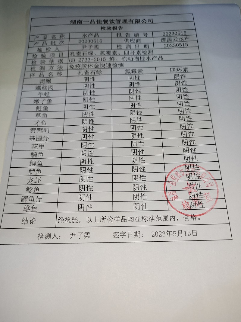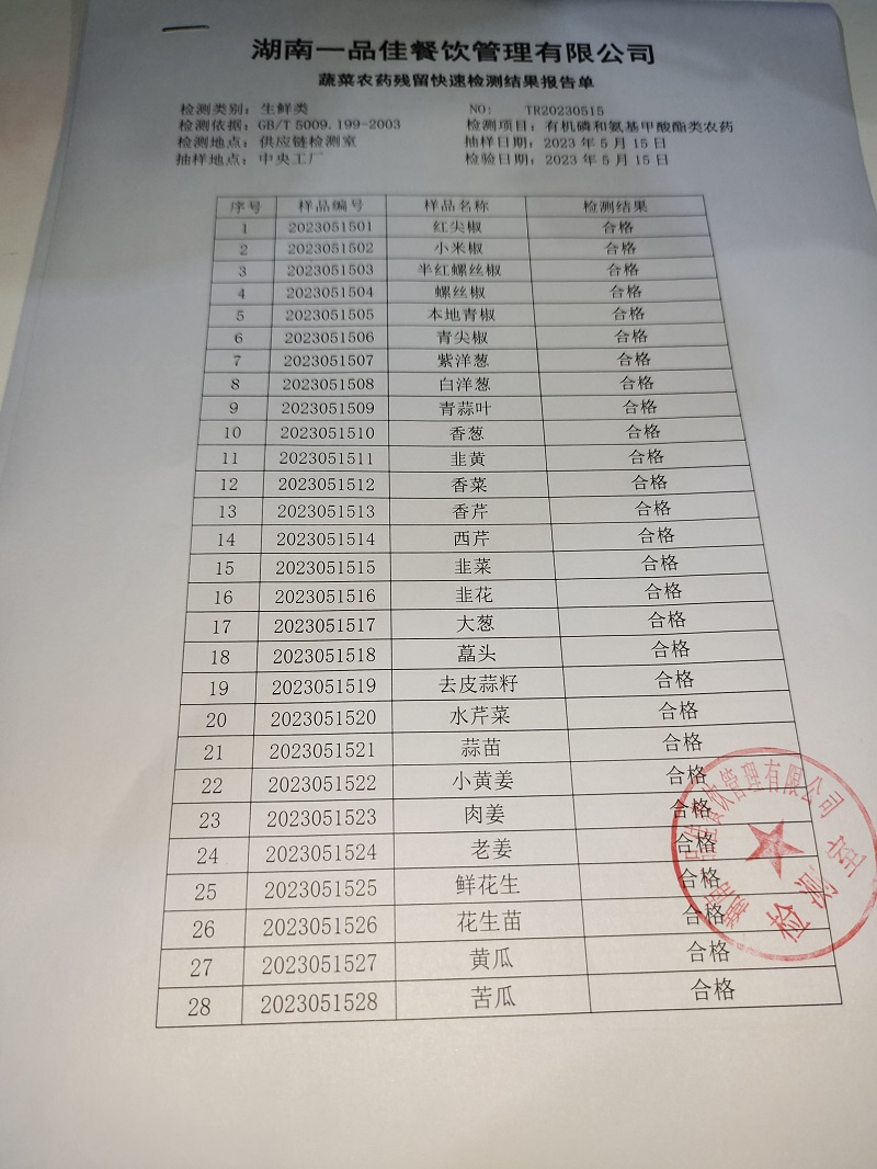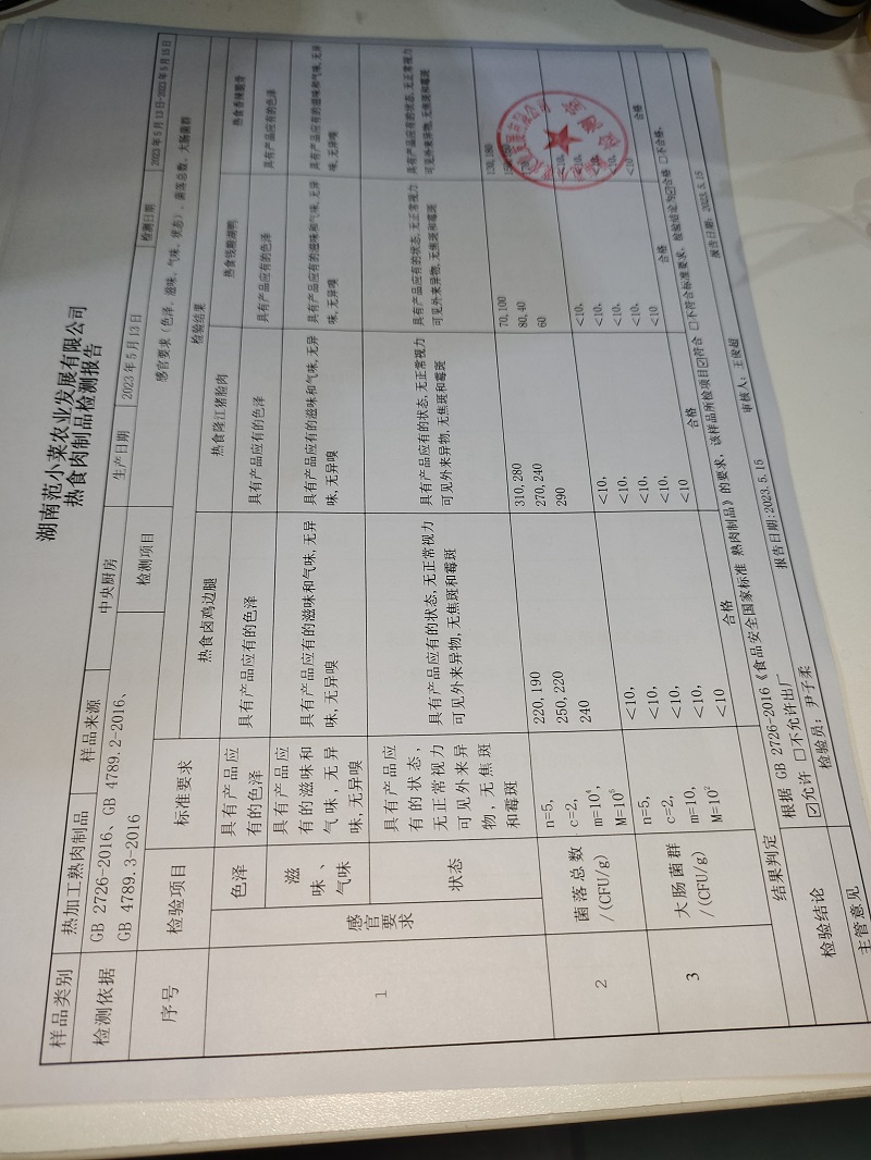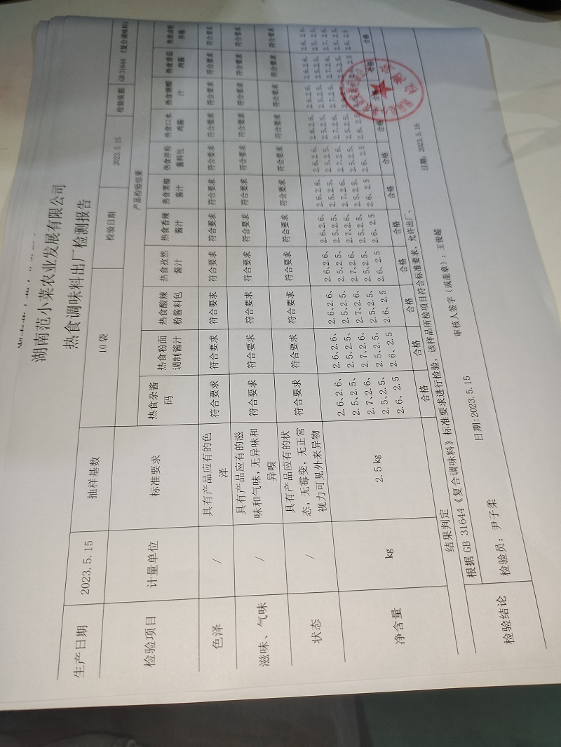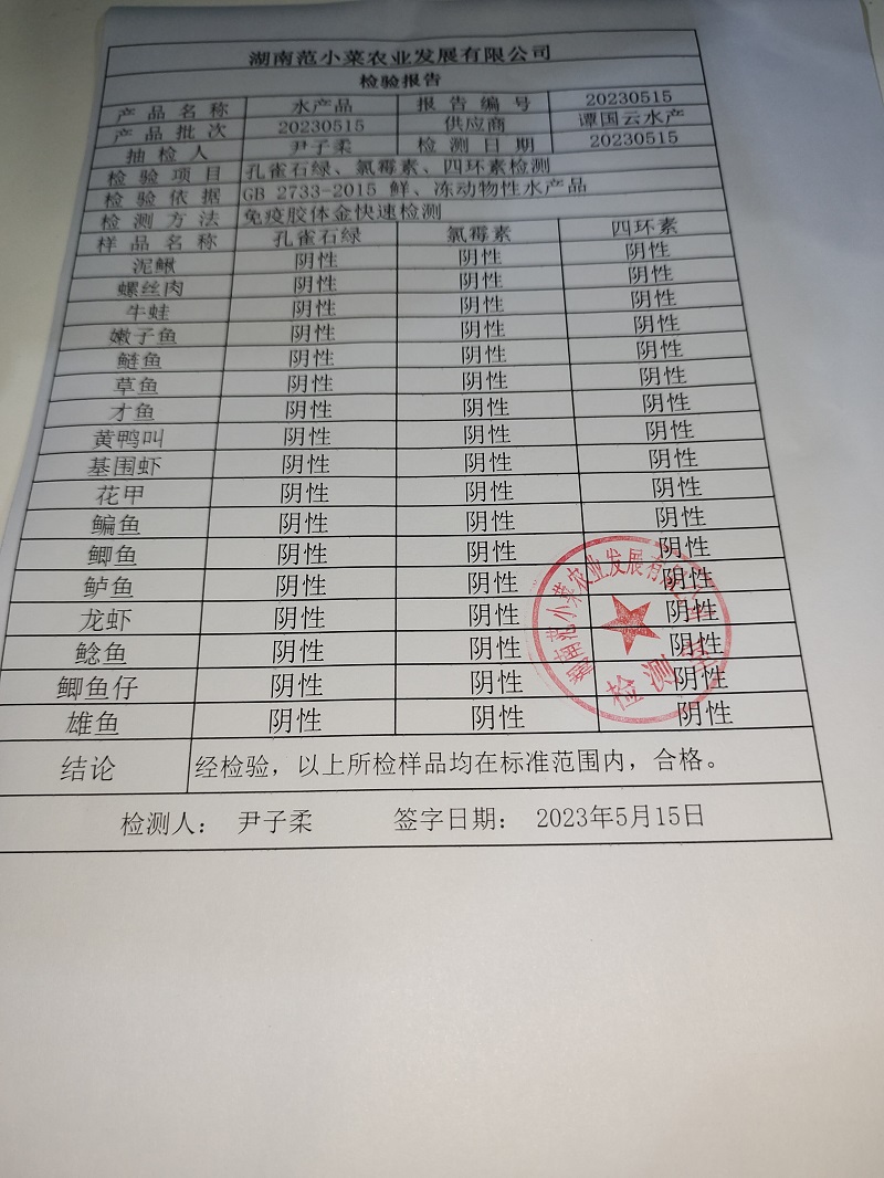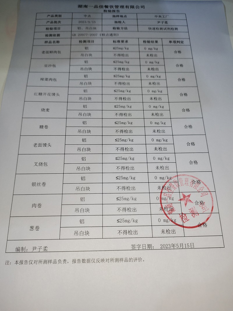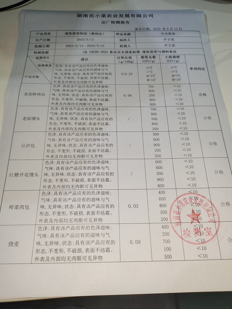 范小菜、一品佳热食肉制品、意粉、调味料、 中点、水产、农残、速冻米面制品2023.05.15