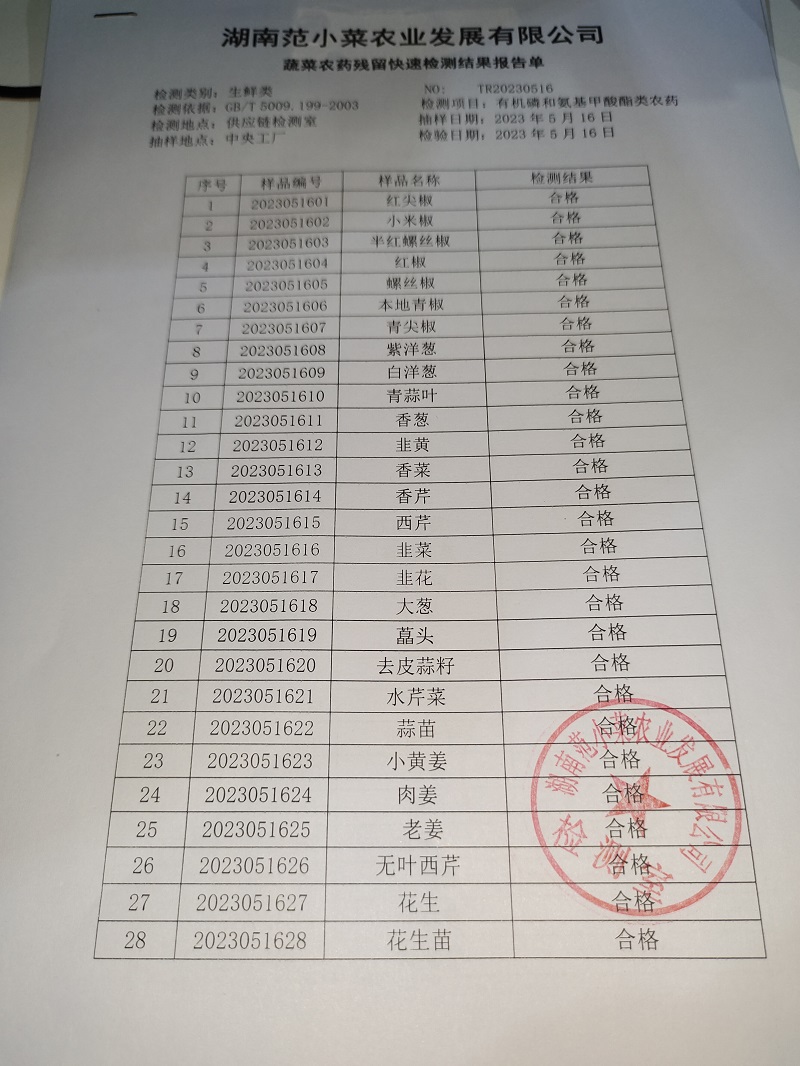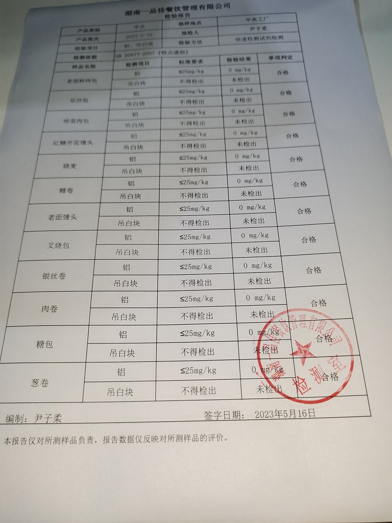 范小菜、一品佳热食肉制品、意粉、调味料、 中点、水产、农残、速冻米面制品2023.05.16