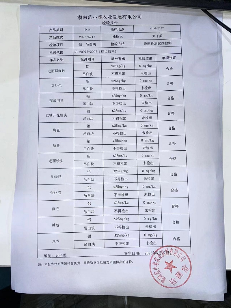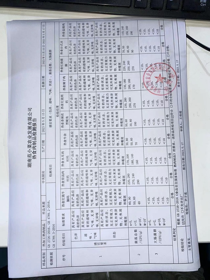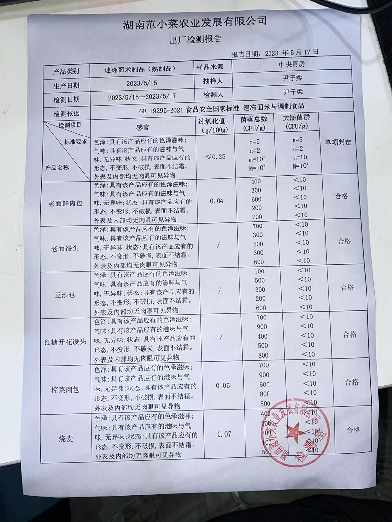 范小菜热食肉制品、调味料、 一品佳、范小菜中点、水产、农残、速冻米面制品2023.5.17
