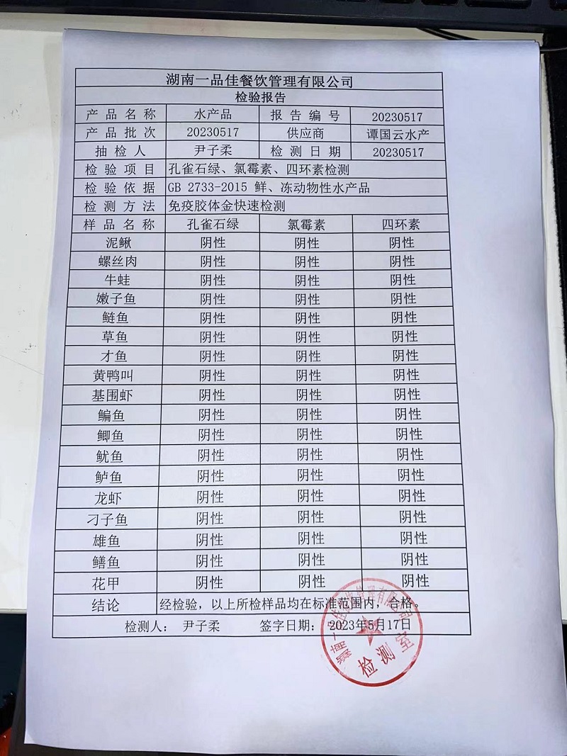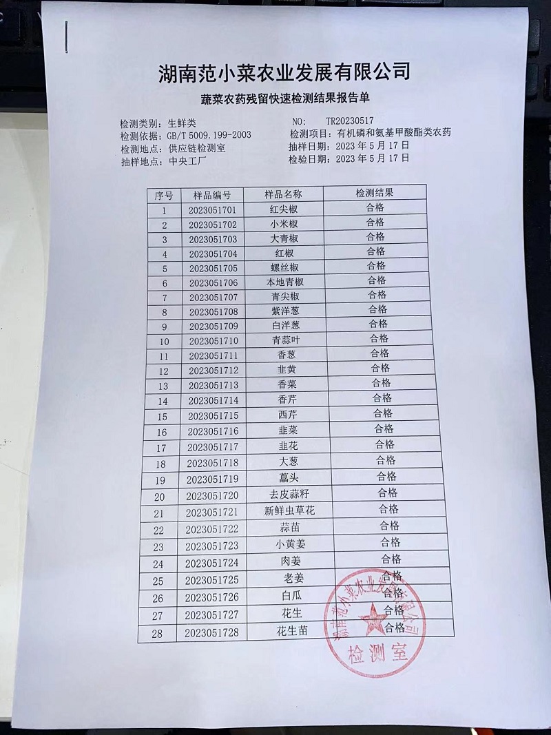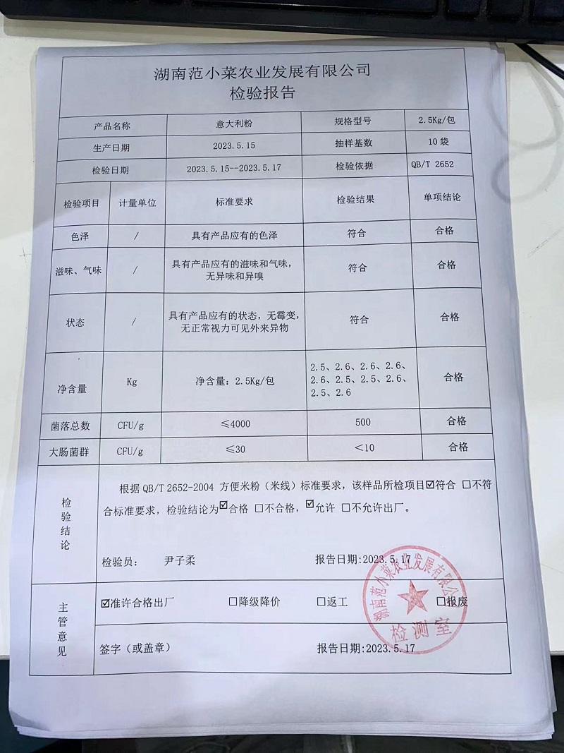 范小菜、一品佳热食肉制品、意粉、调味料、 中点、水产、农残