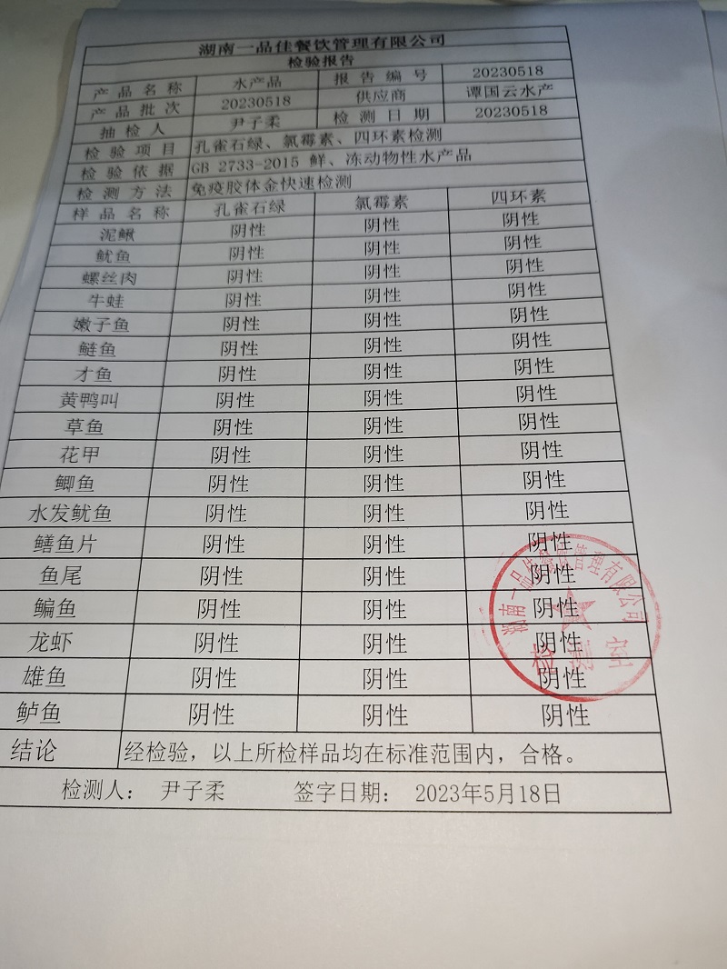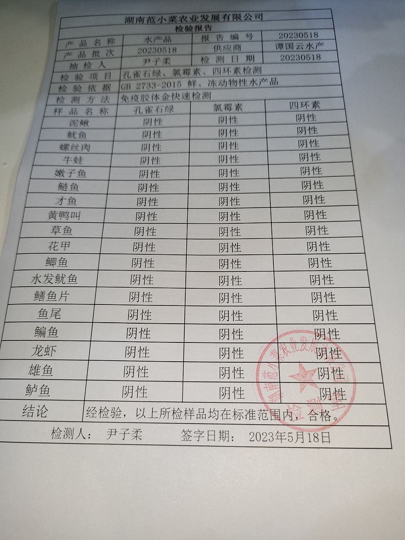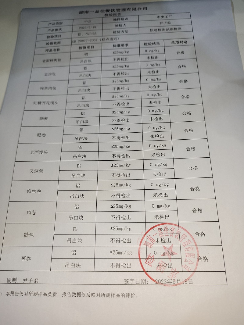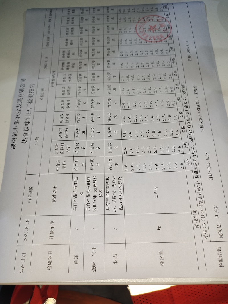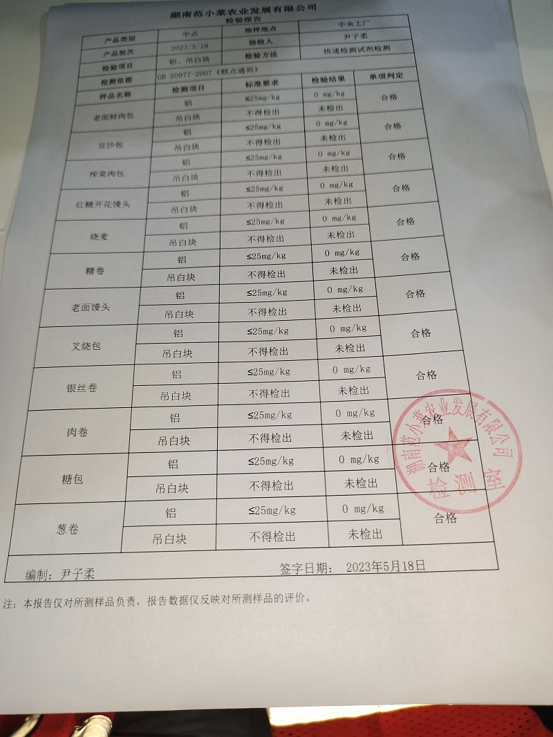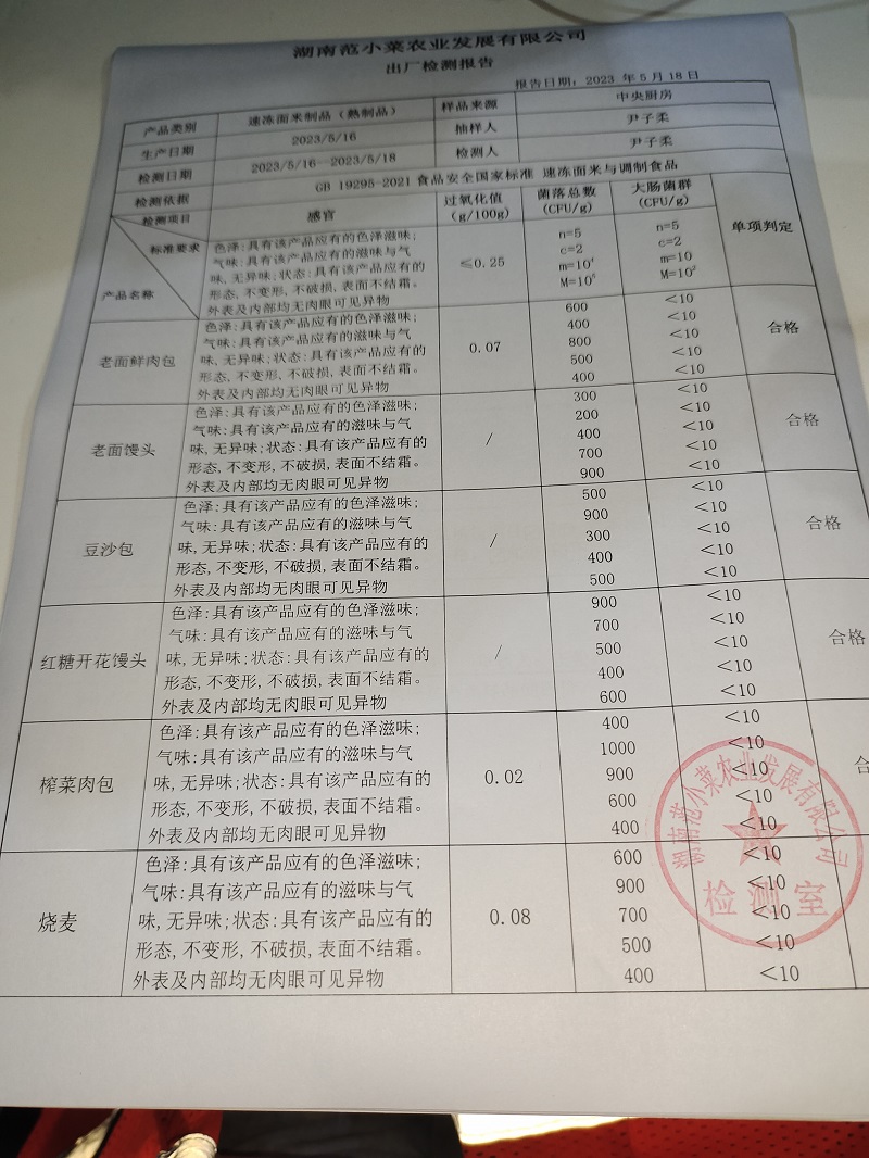 范小菜、一品佳热食肉制品、意粉、调味料、 中点、水产、农残、速冻米面制品2023.05.18