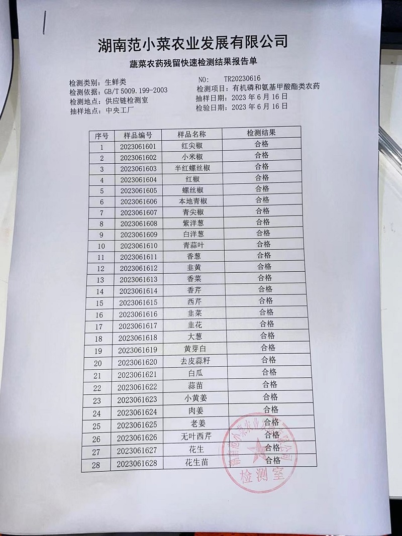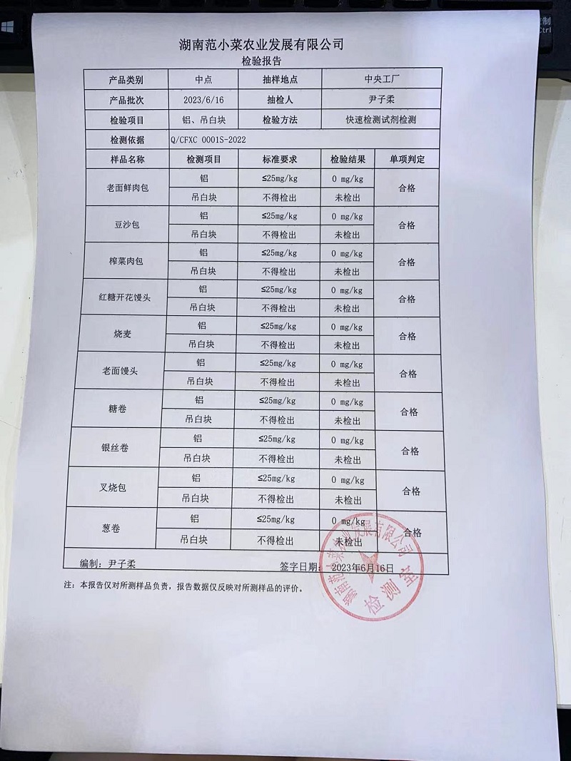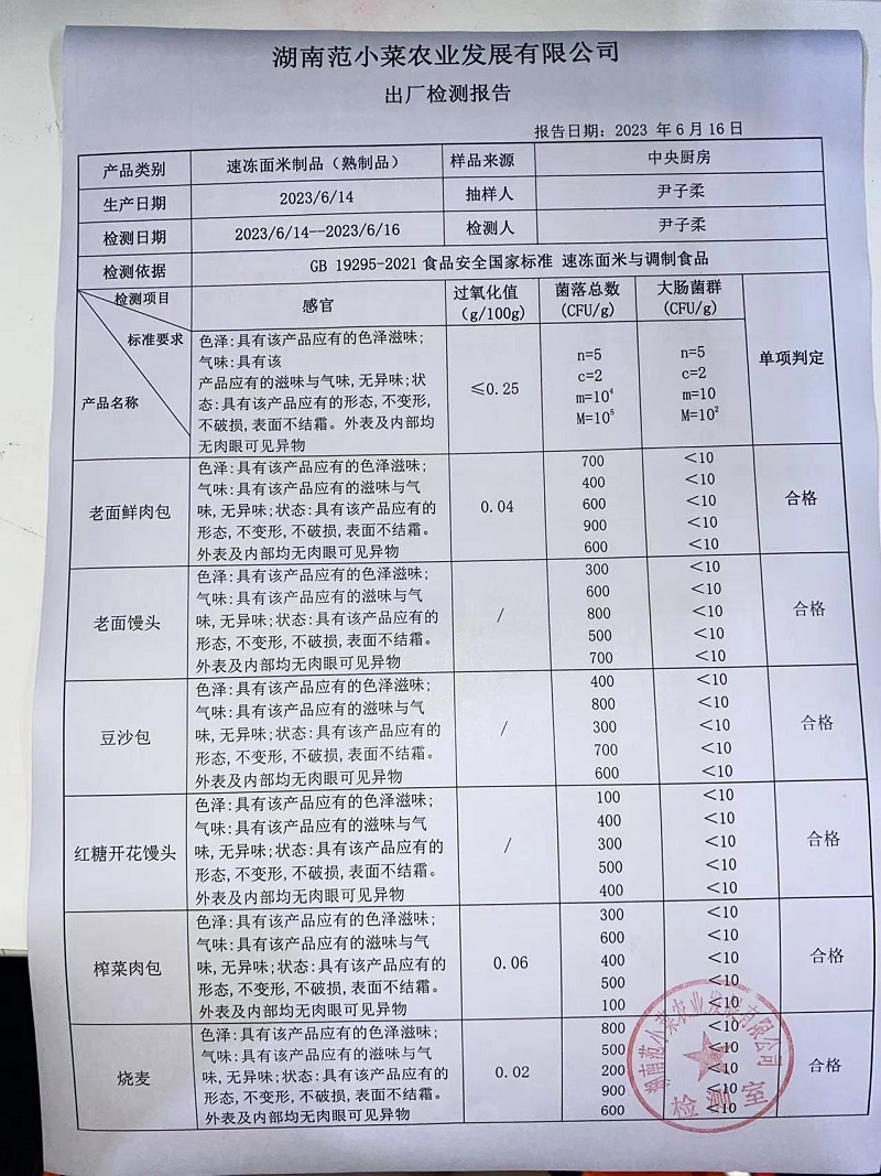范小菜热食肉制品、调味料、 一品佳、范小菜中点、水产、农残、速冻米面制品2023.6.16