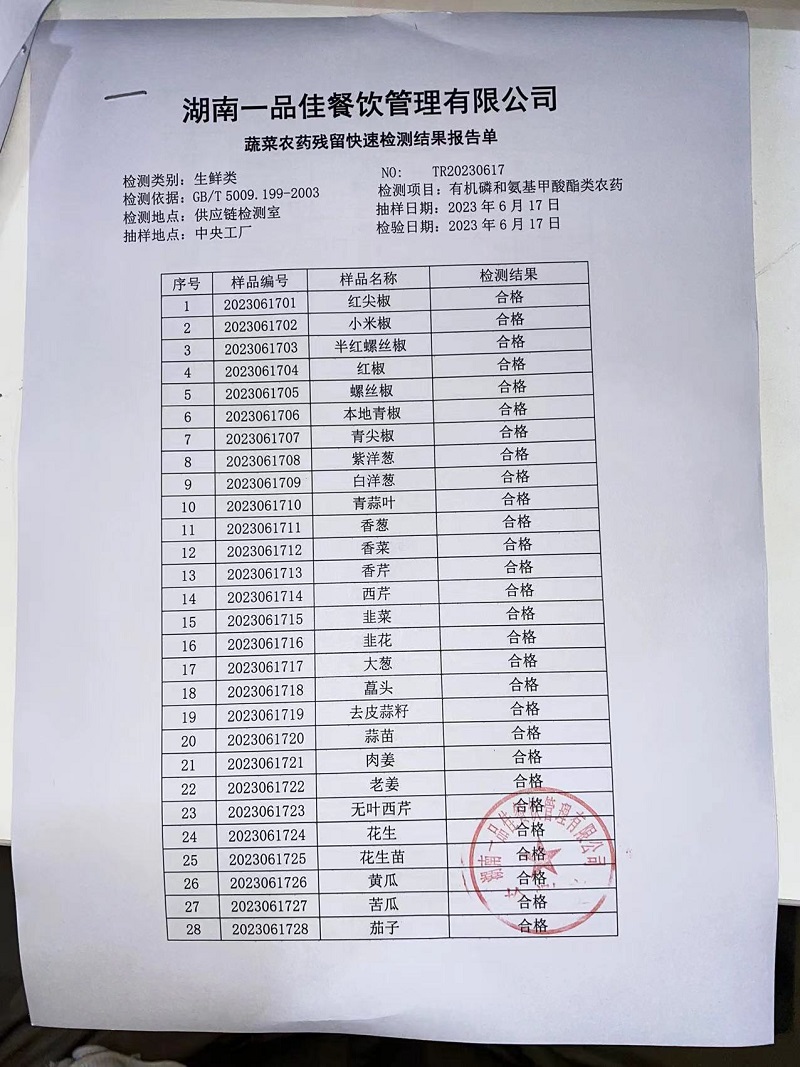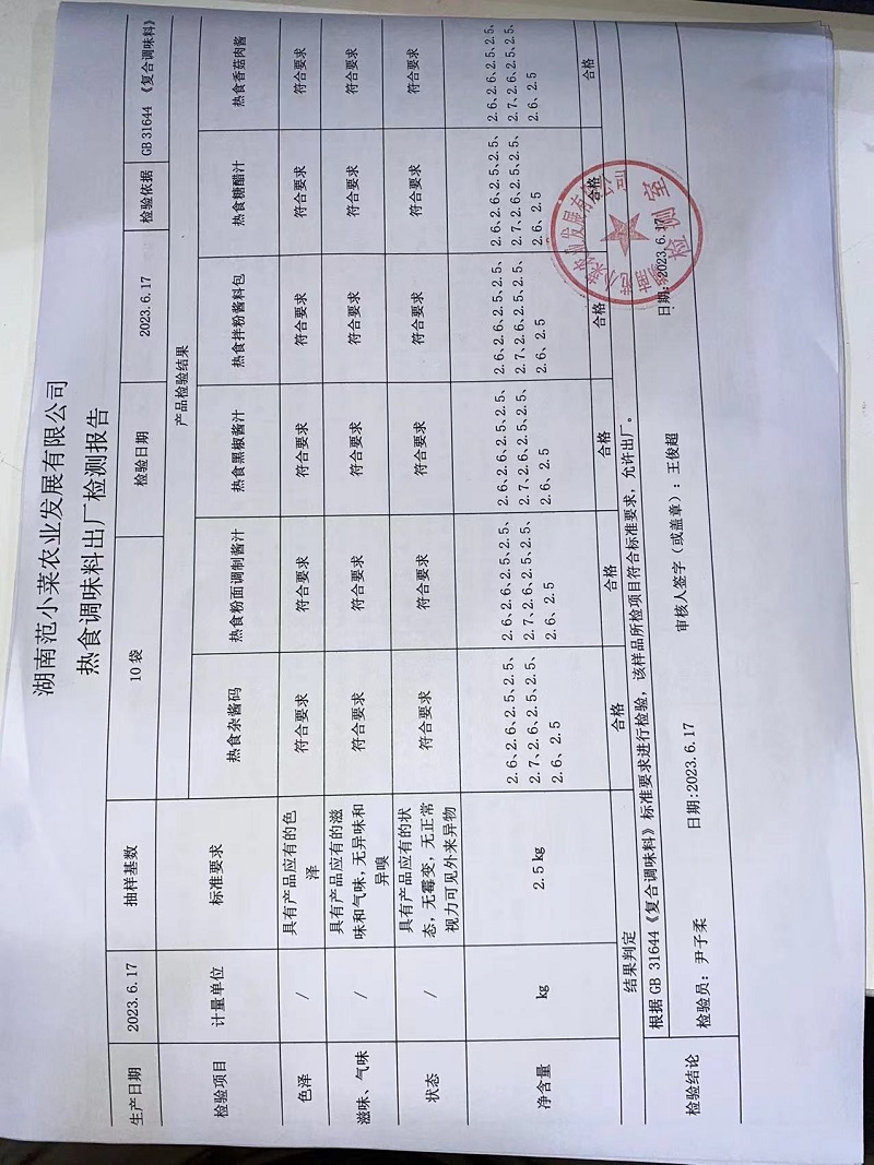 范小菜热食肉制品、调味料、 一品佳中点、水产、农残2023