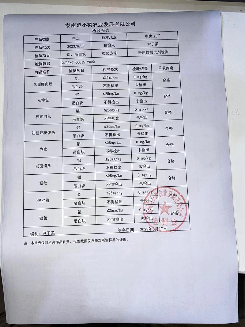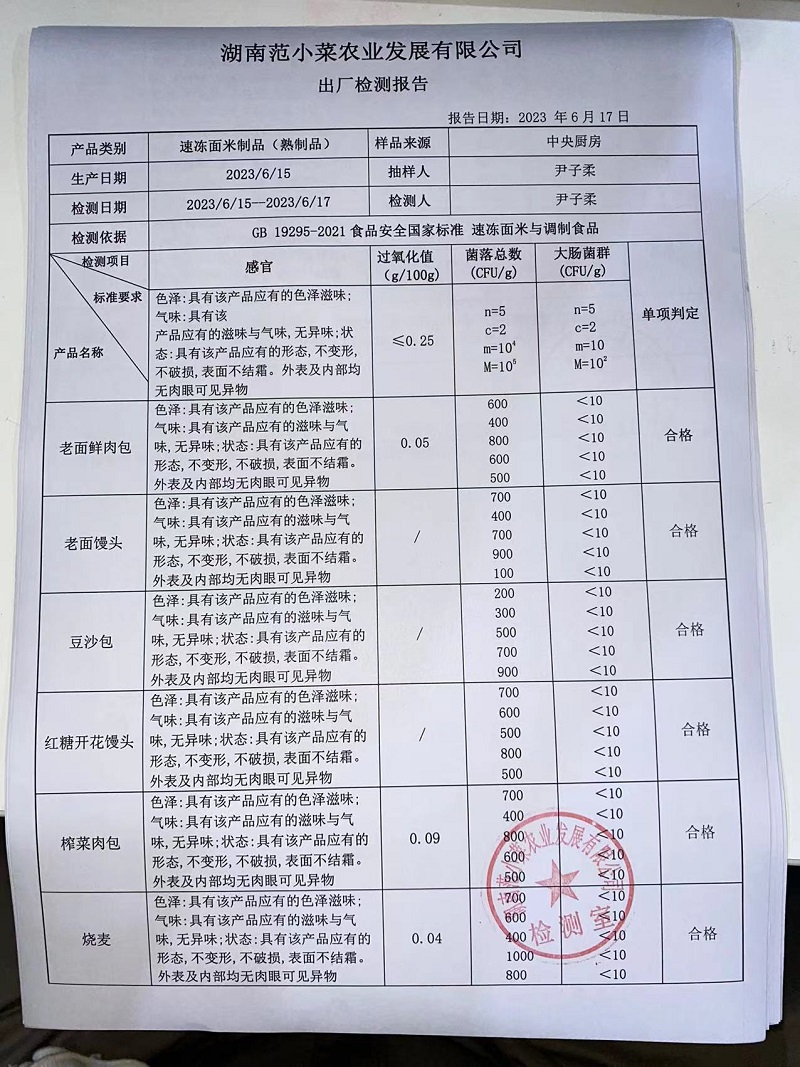范小菜热食肉制品、调味料、 一品佳、范小菜中点、水产、农残、速冻米面制品2023.6.17