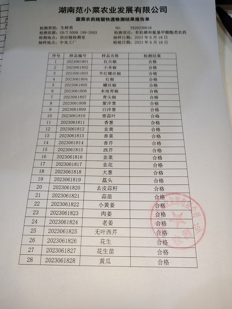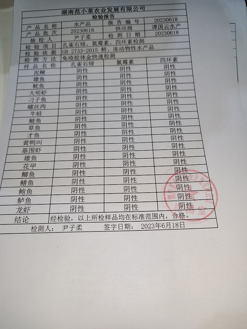 范小菜热食肉制品、调味料、 一品佳中点、水产、农残2023.06.18