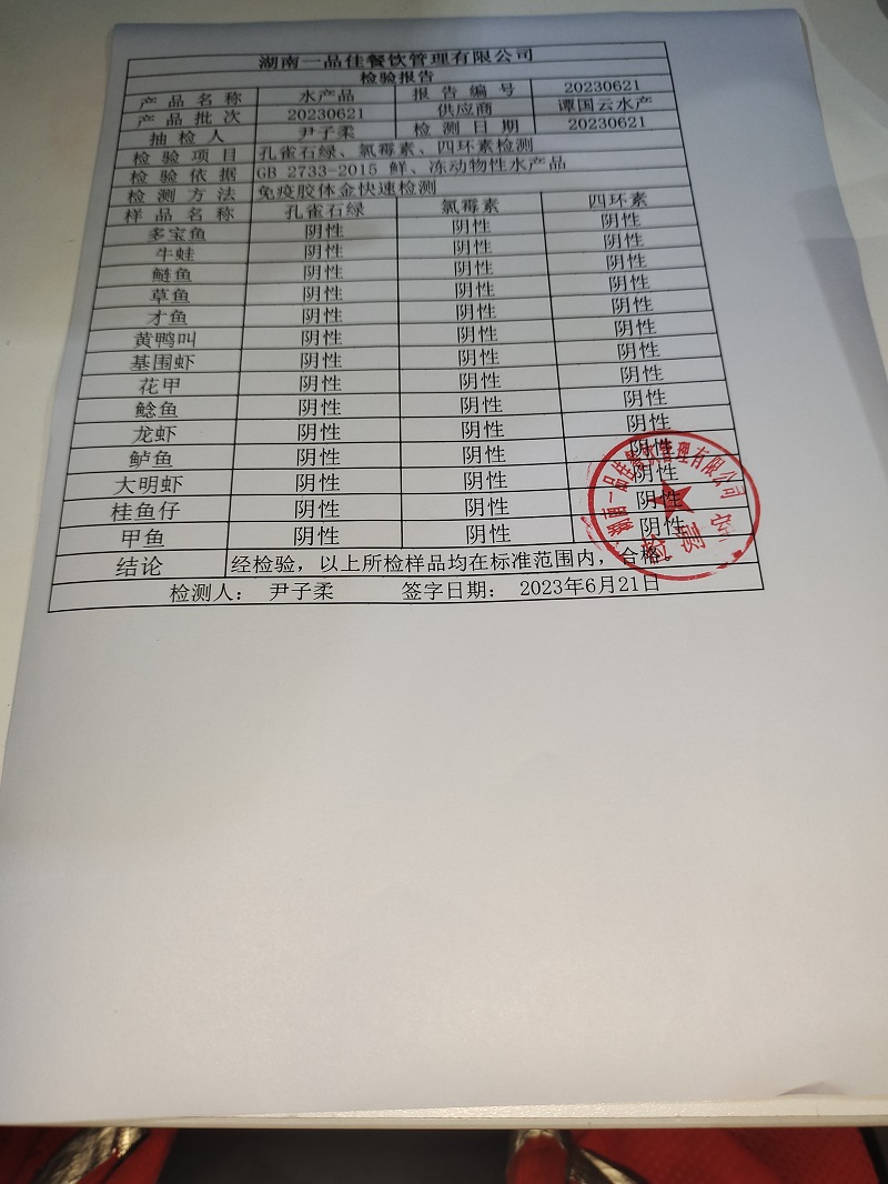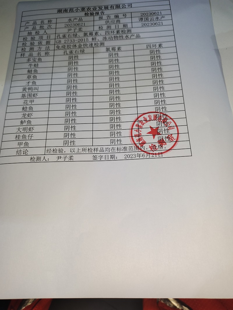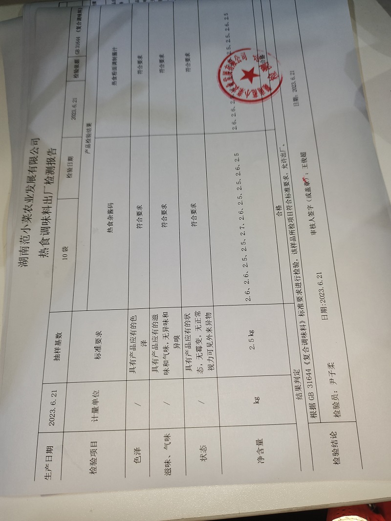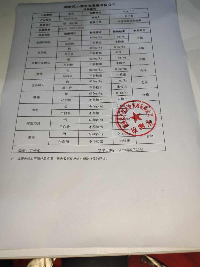 范小菜热食肉制品、调味料、 一品佳中点、水产、农残2023.06.21