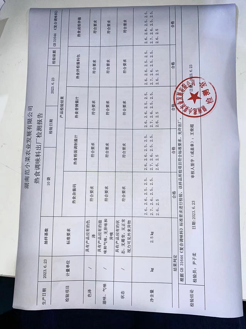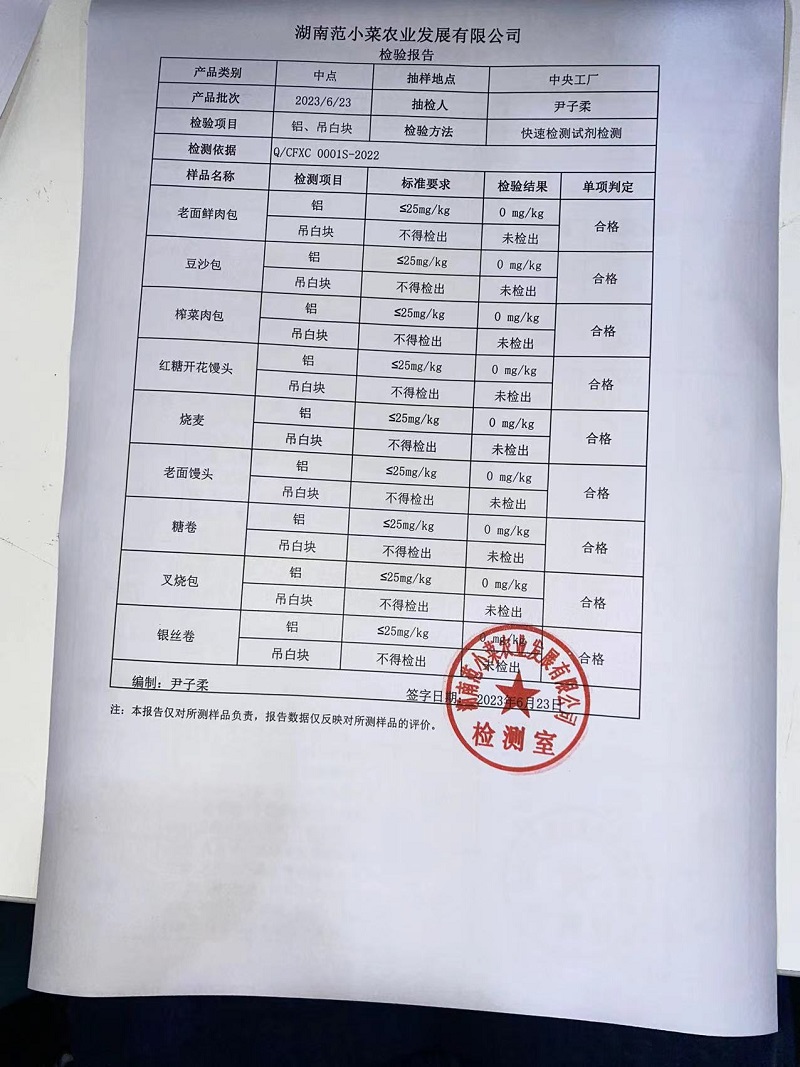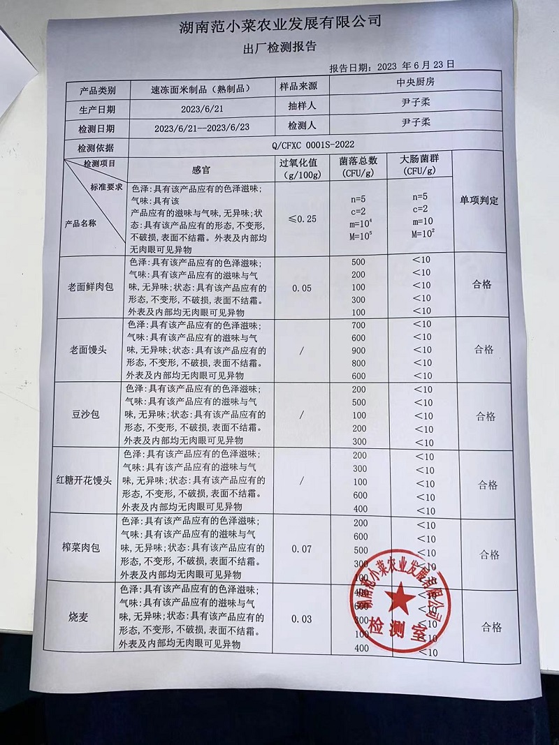 范小菜热食肉制品、调味料、 一品佳、范小菜中点、水产、农残、速冻米面制品2023.6.23