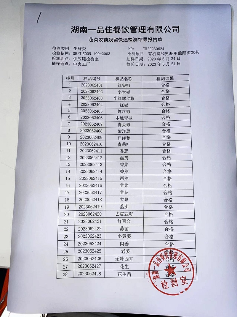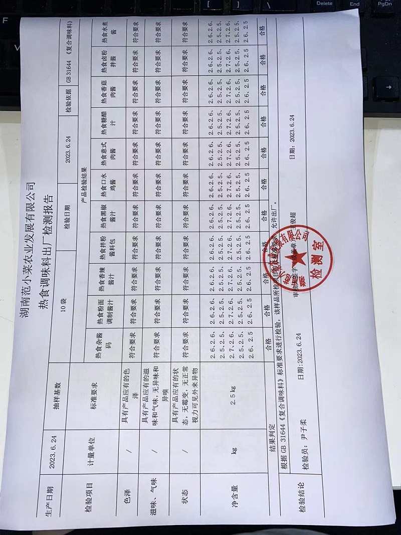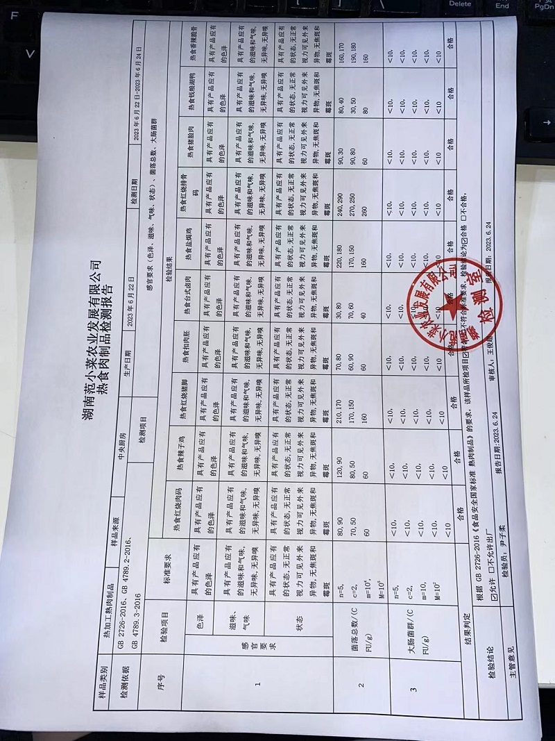 范小菜热食肉制品、调味料、 一品佳中点、水产、农残2023