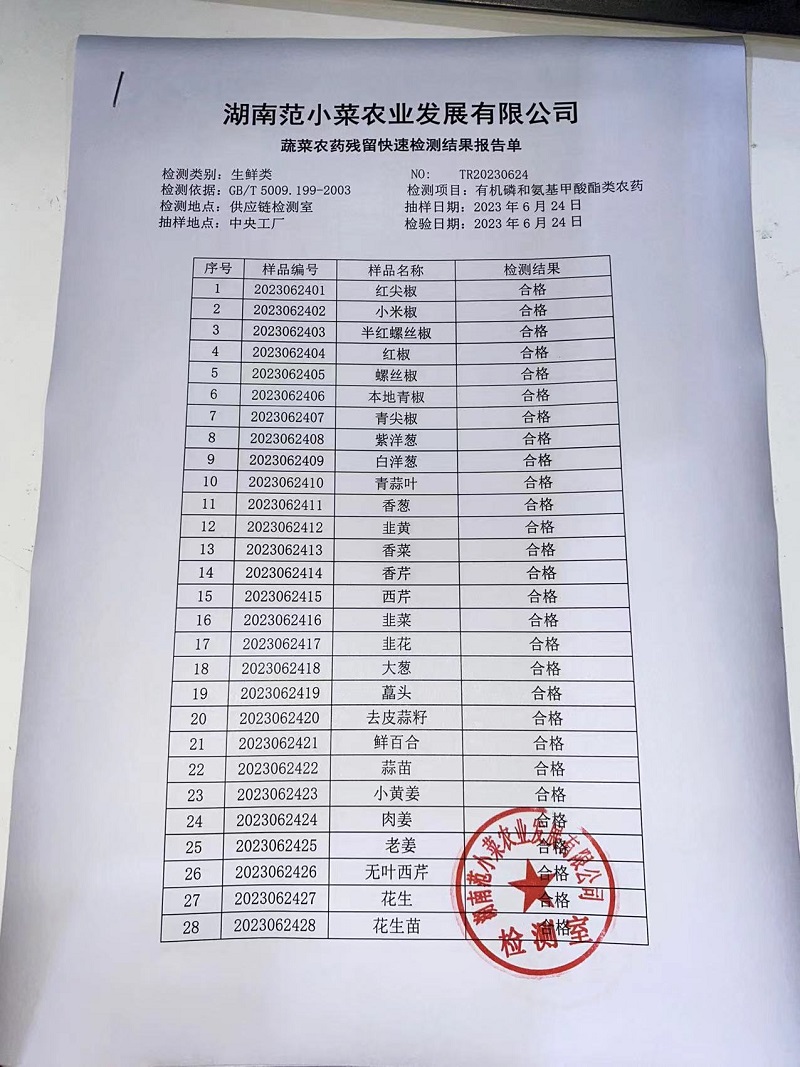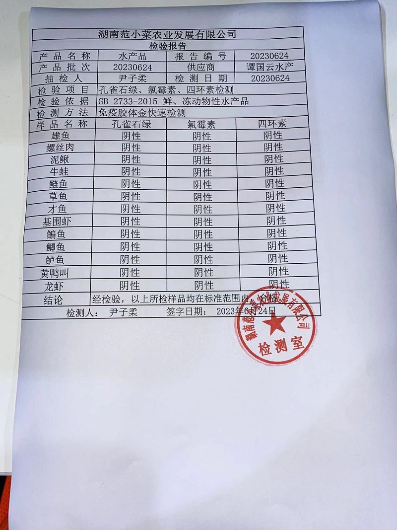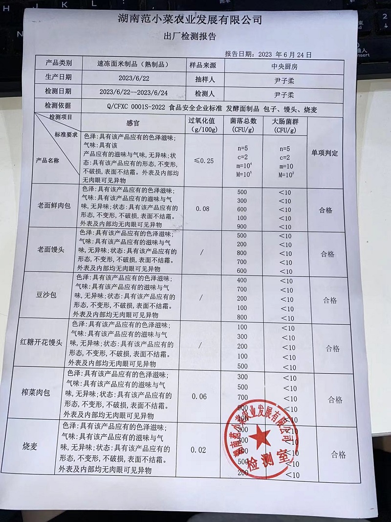 范小菜热食肉制品、调味料、 一品佳、范小菜中点、水产、农残、速冻米面制品2023.6.24