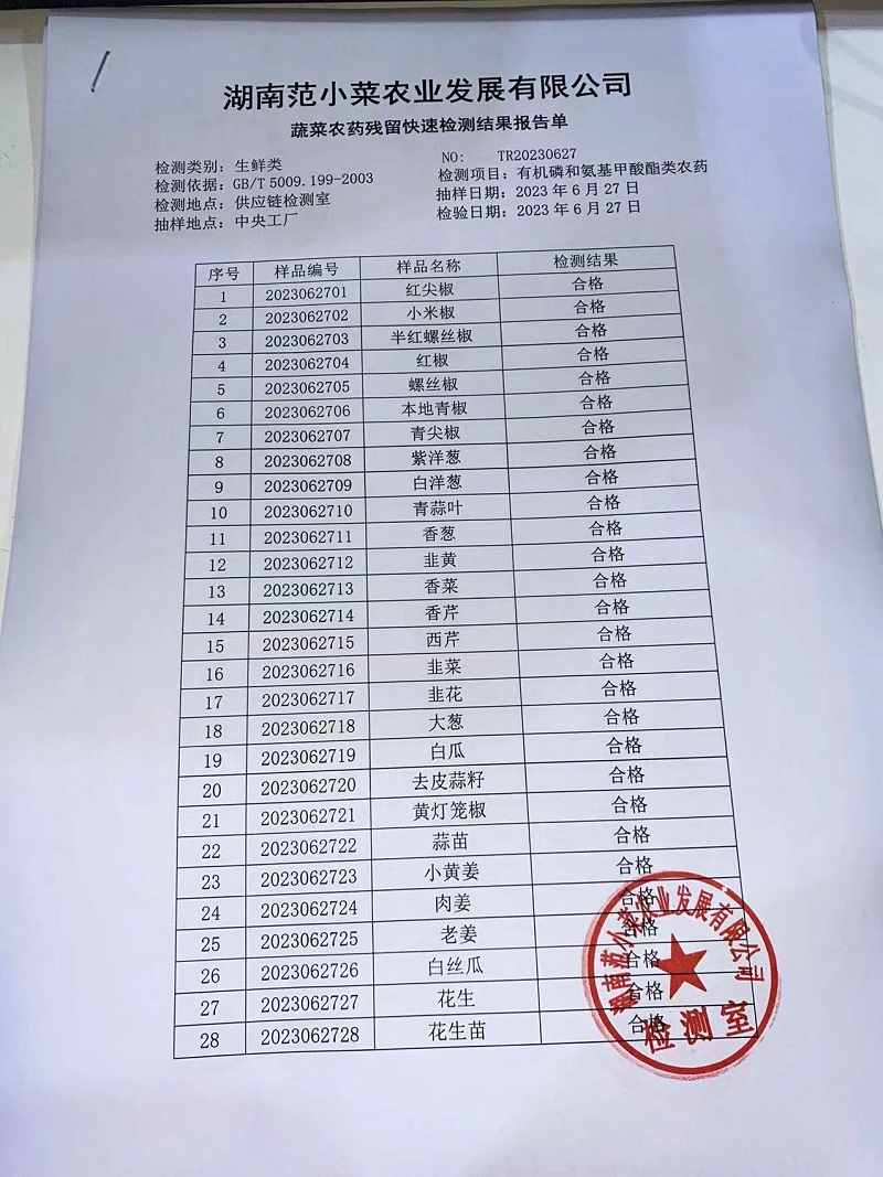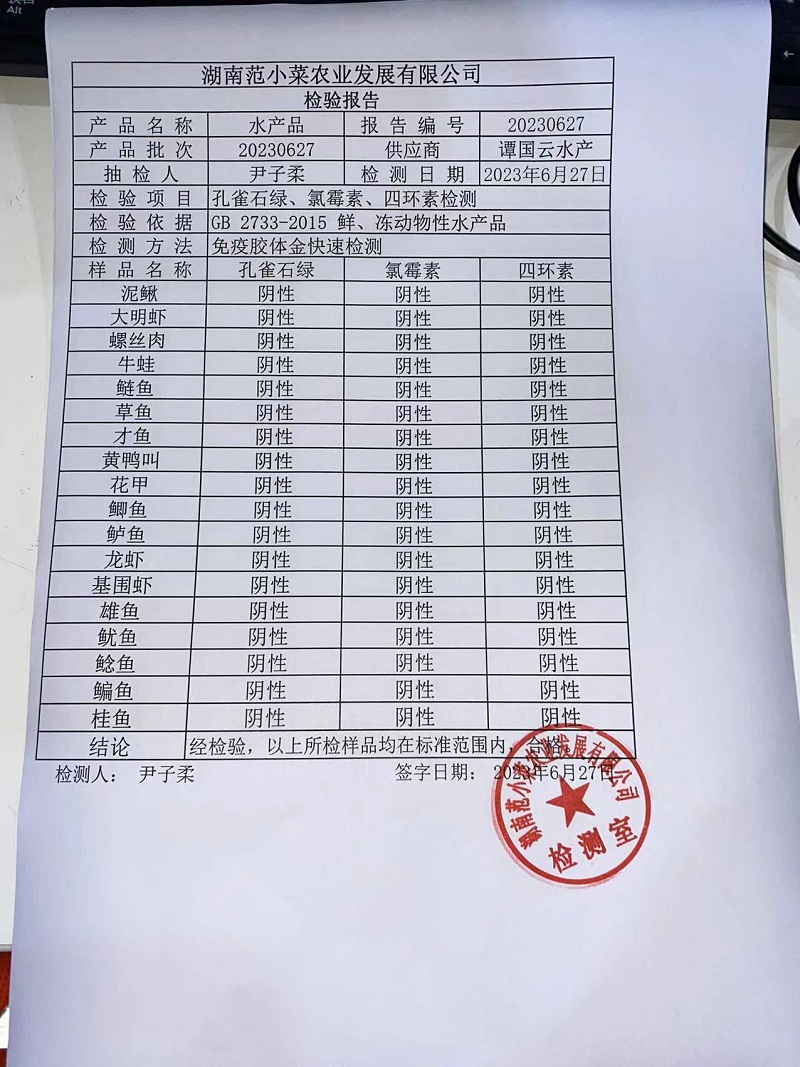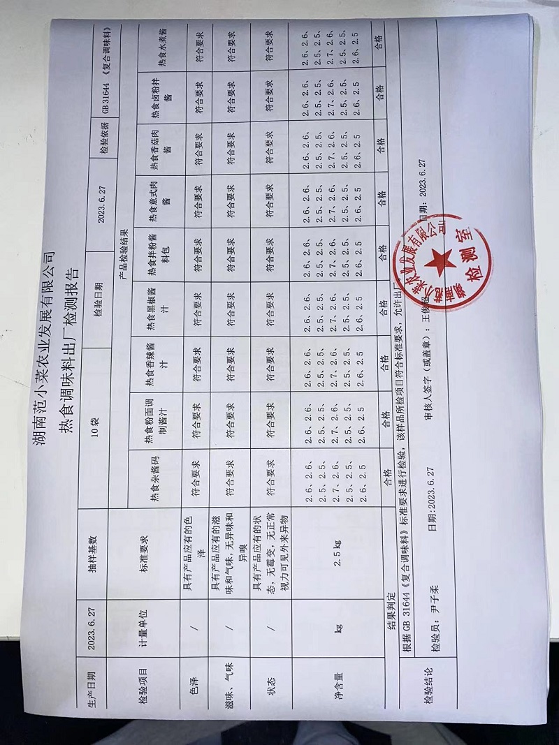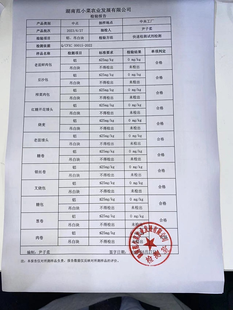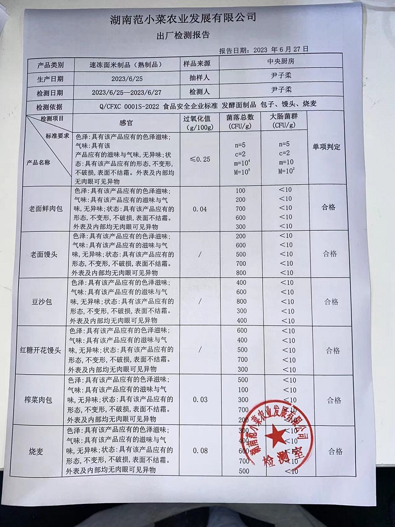 范小菜热食肉制品、调味料、 一品佳、范小菜中点、水产、农残、速冻米面制品2023.6.27