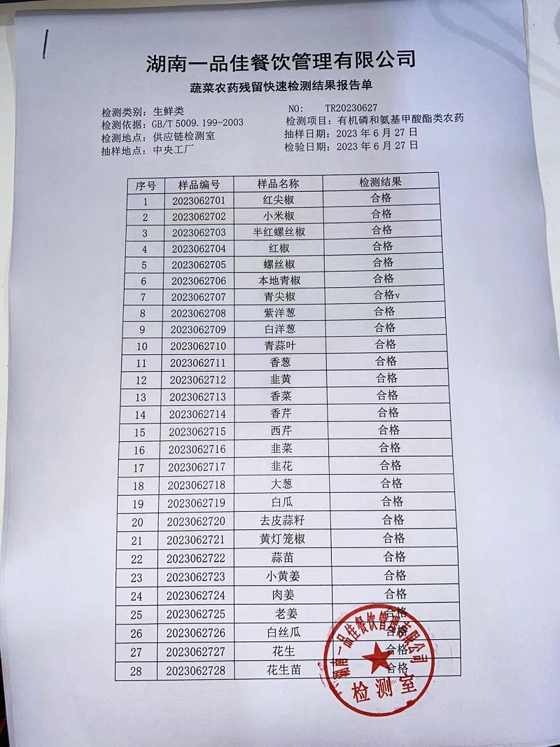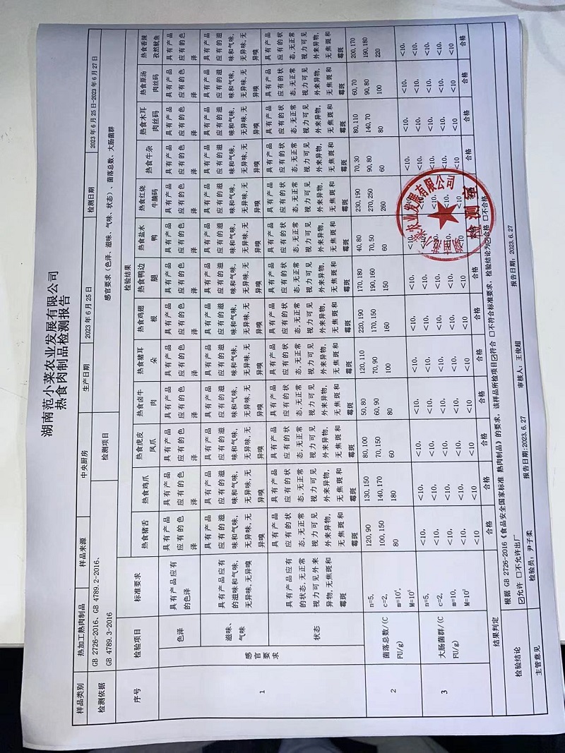 范小菜热食肉制品、调味料、 一品佳中点、水产、农残2023