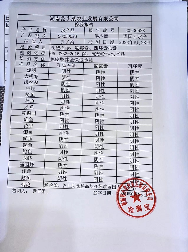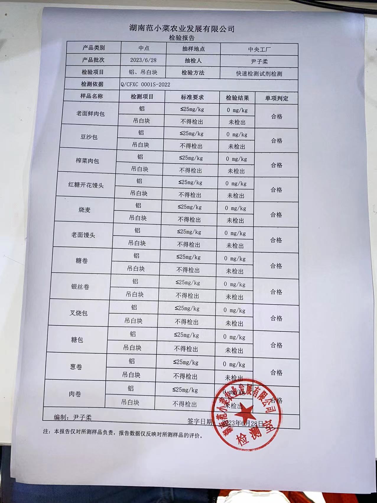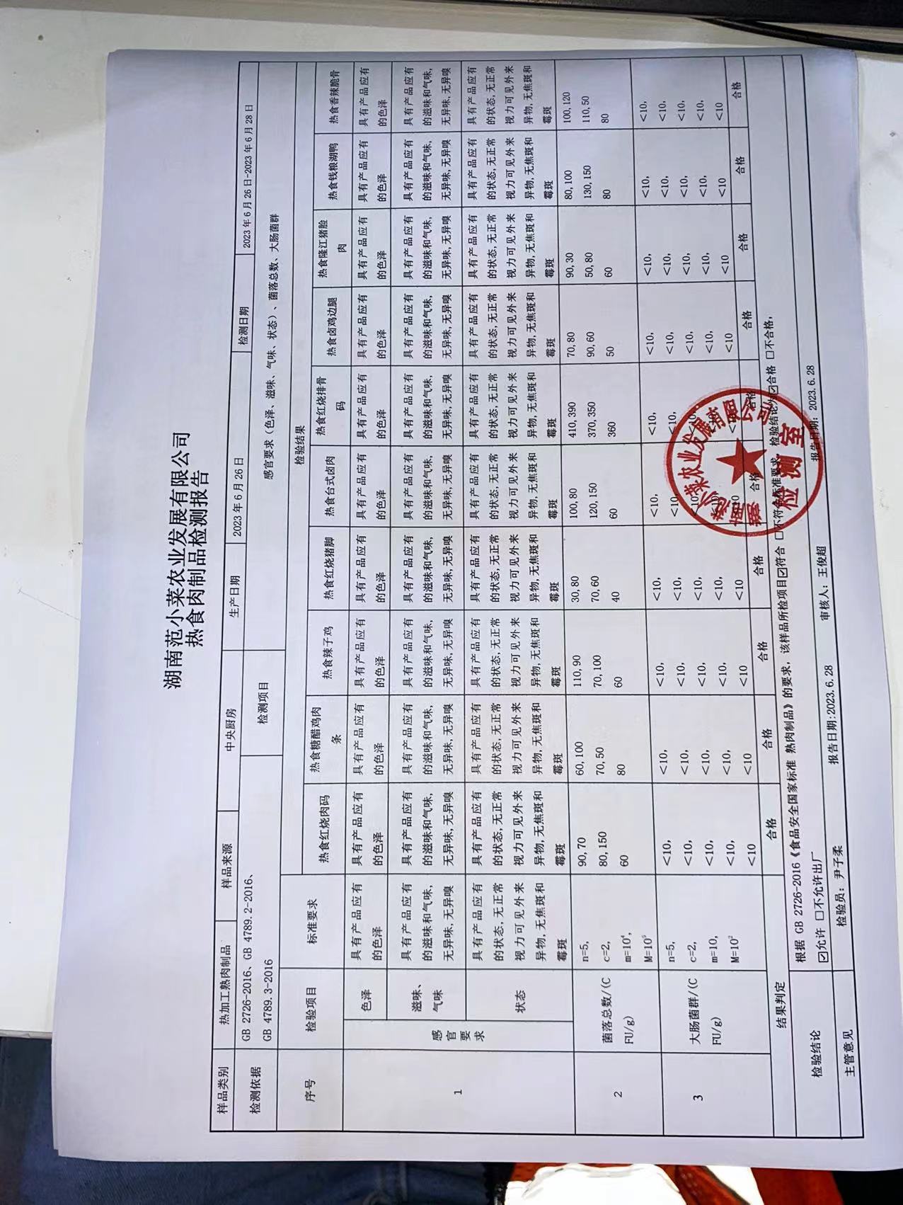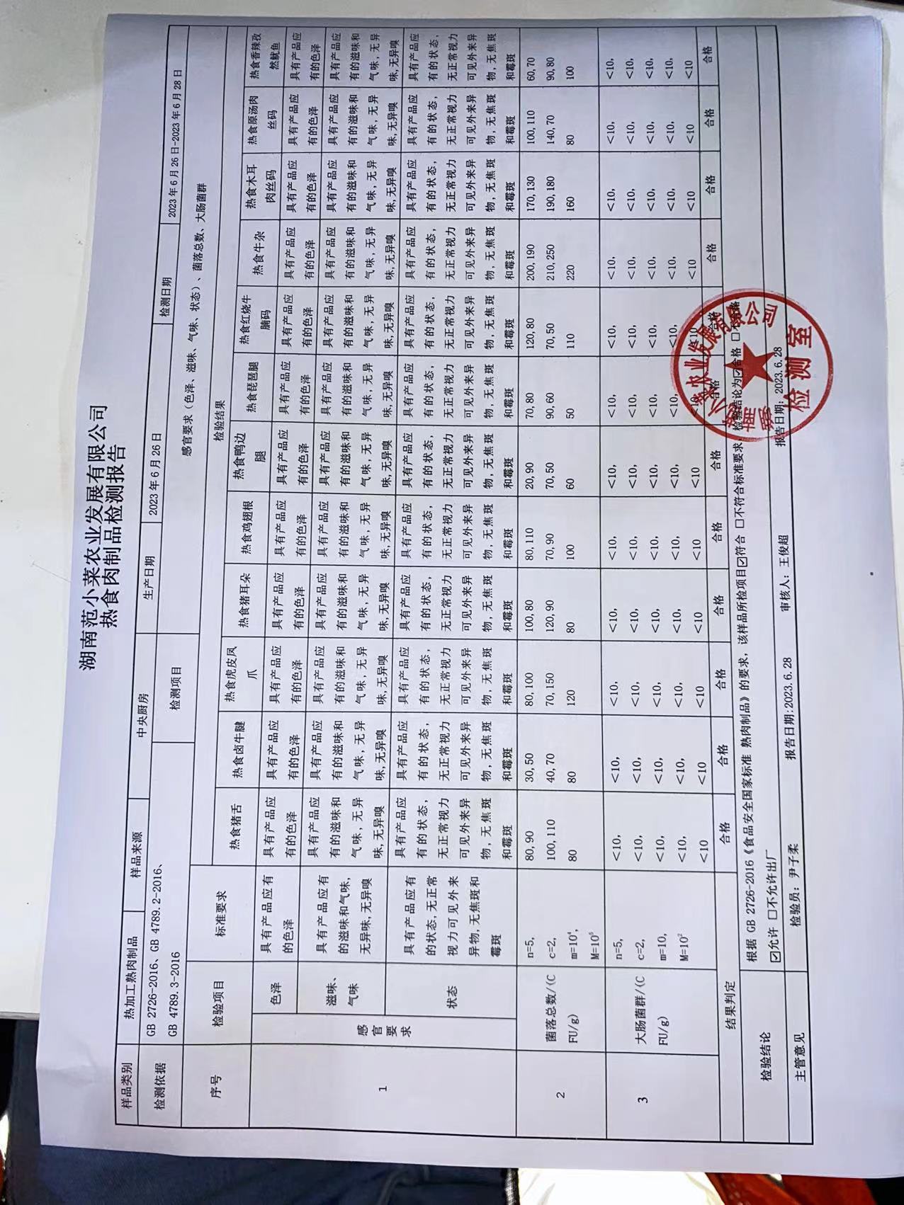 范小菜热食肉制品、调味料、 一品佳、范小菜中点、水产、农残、速冻米面制品2023.6.28