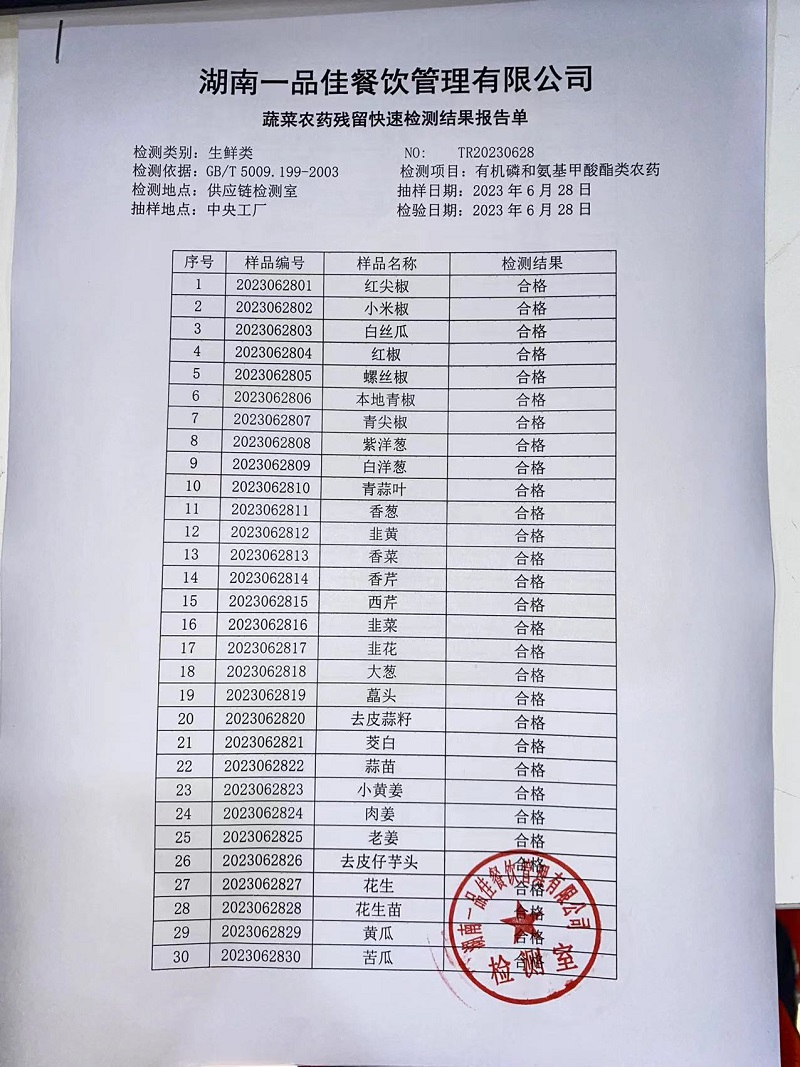 范小菜热食肉制品、调味料、 一品佳中点、水产、农残2023