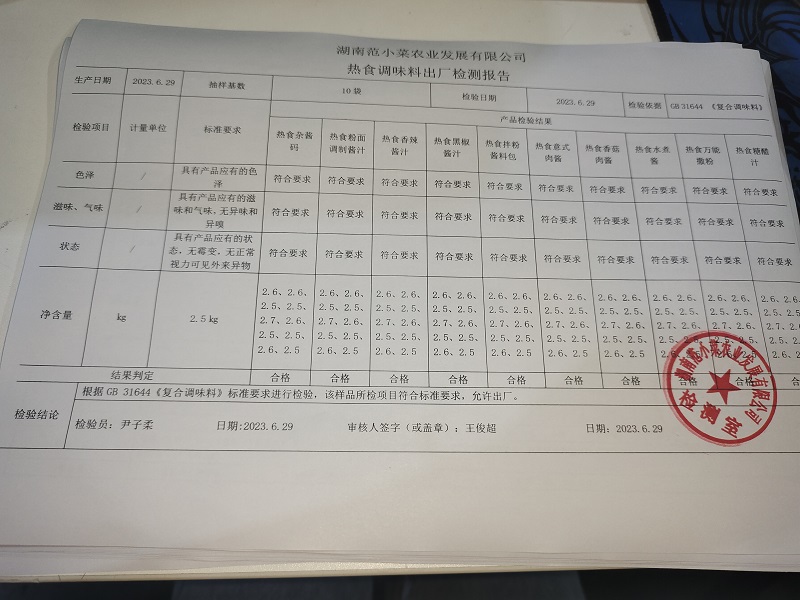 范小菜热食肉制品、调味料、 一品佳中点、水产、农残2023