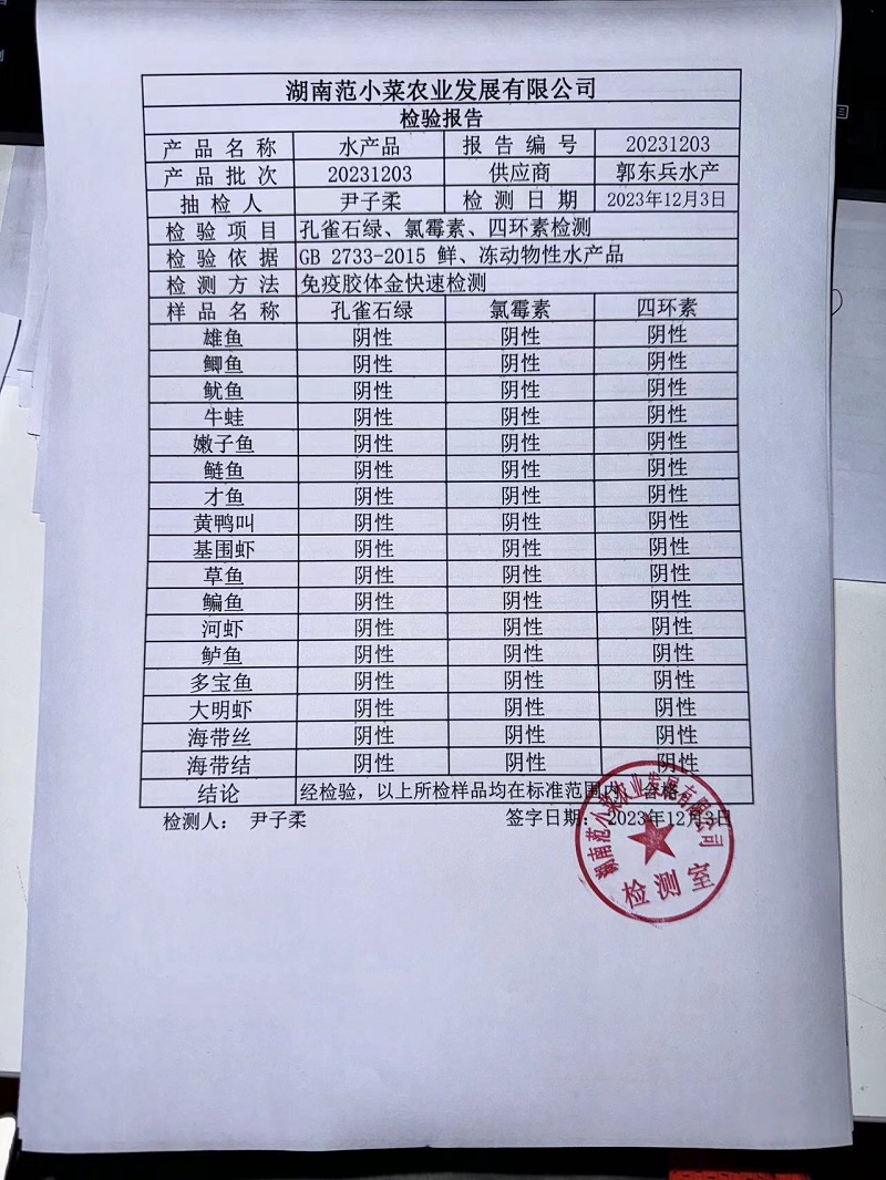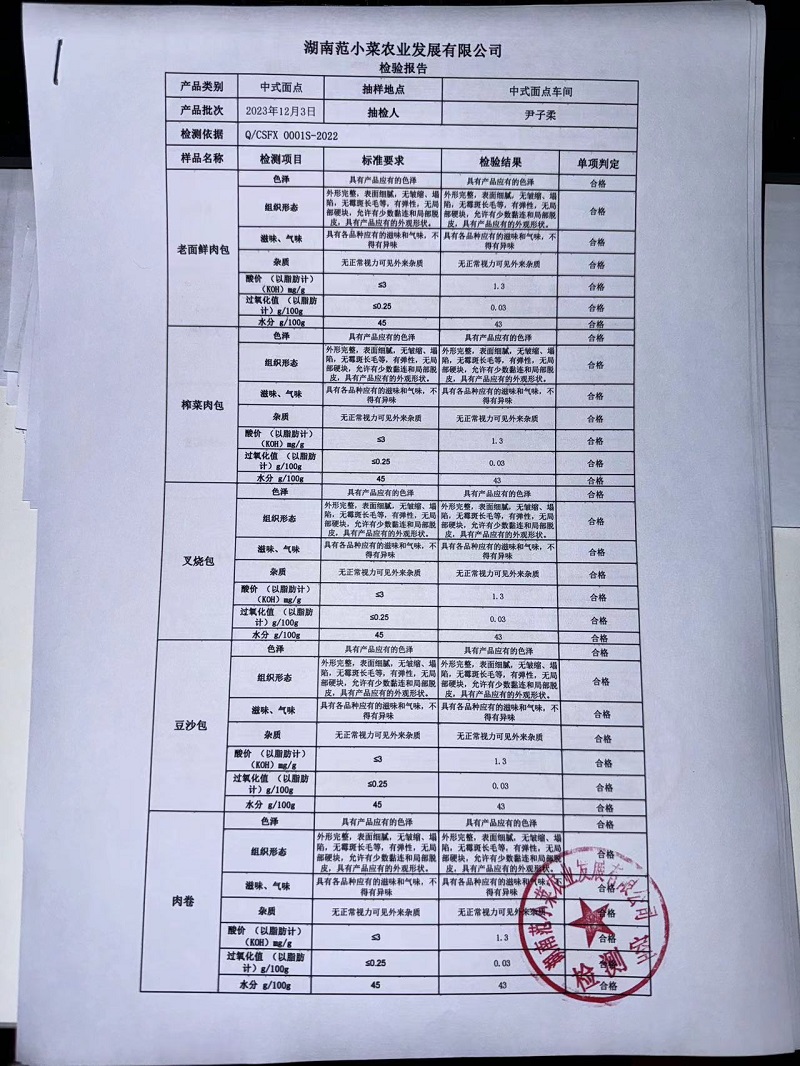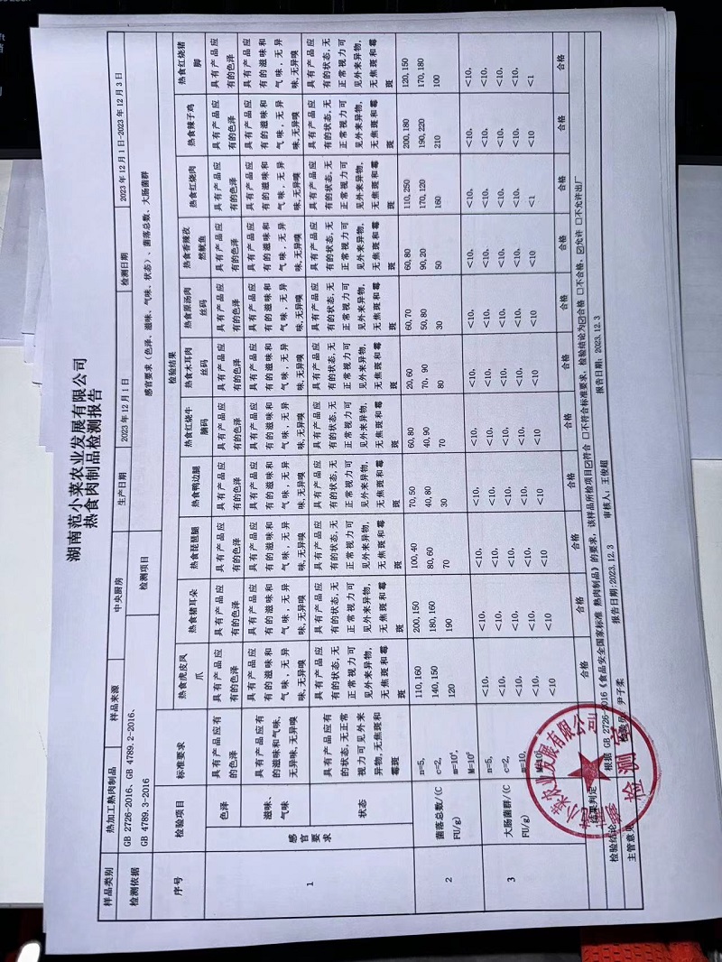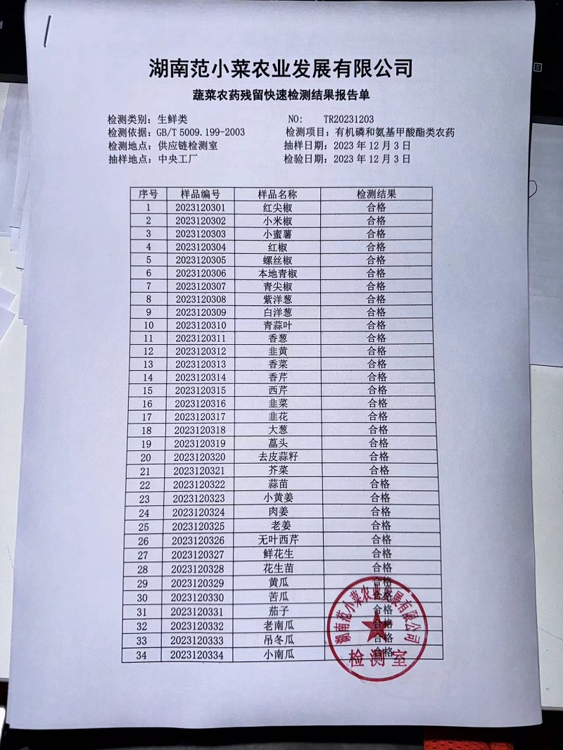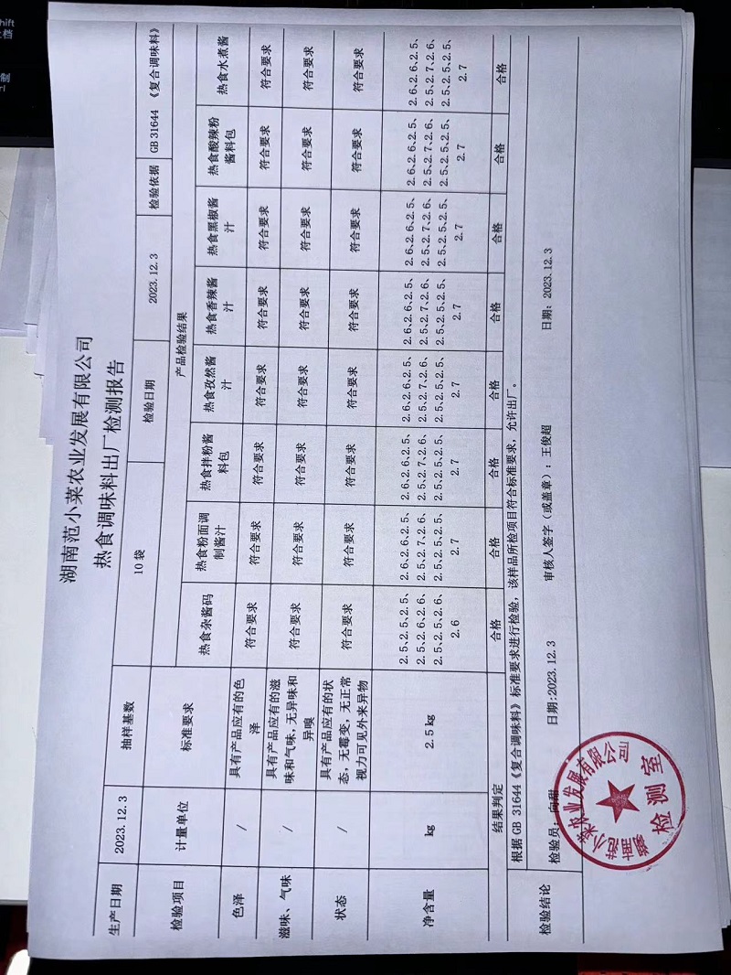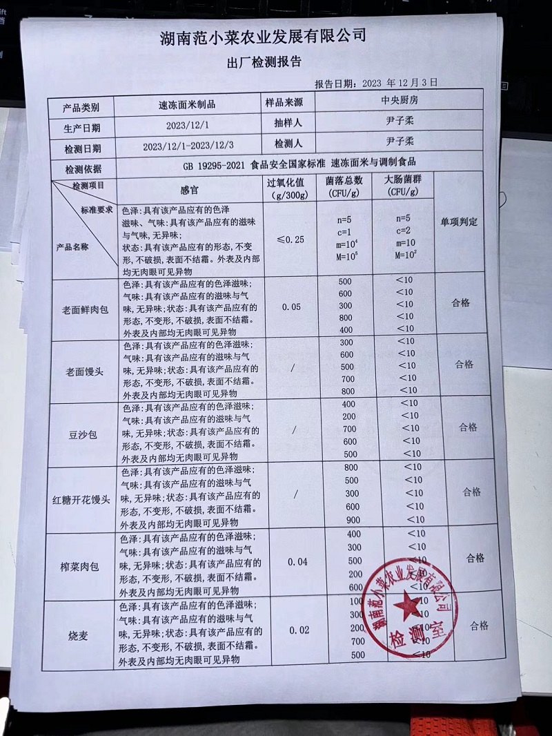 范小菜、一品佳热食肉制品、调味料、意面、农残、水产、中点、速冻米面制品2023.12.3