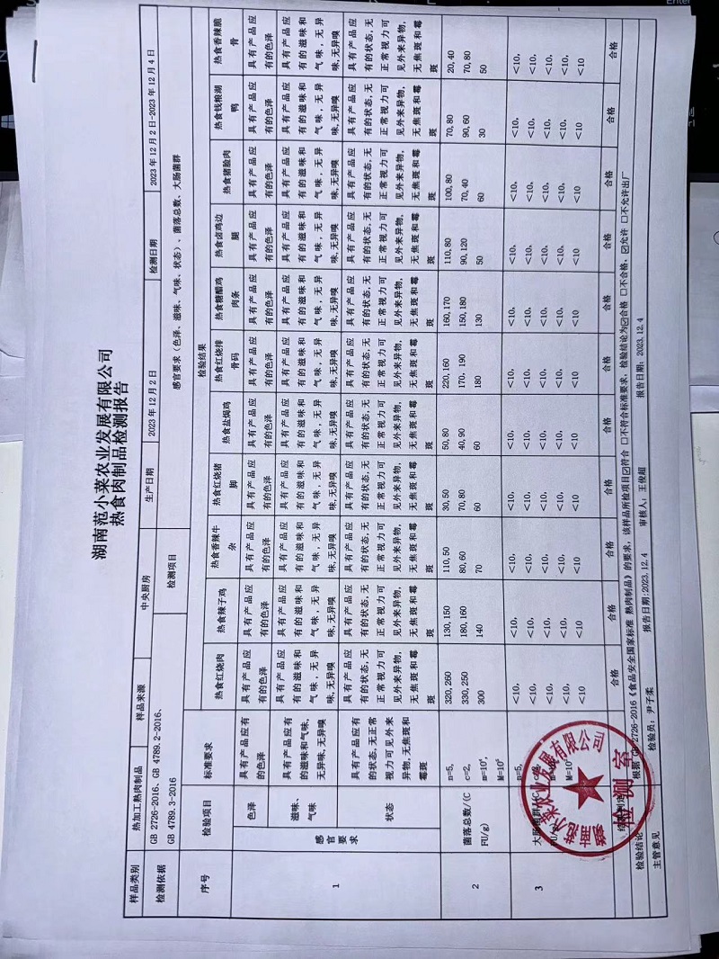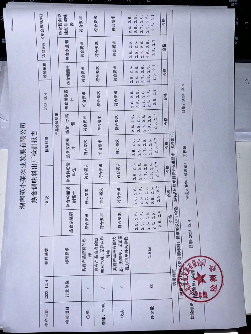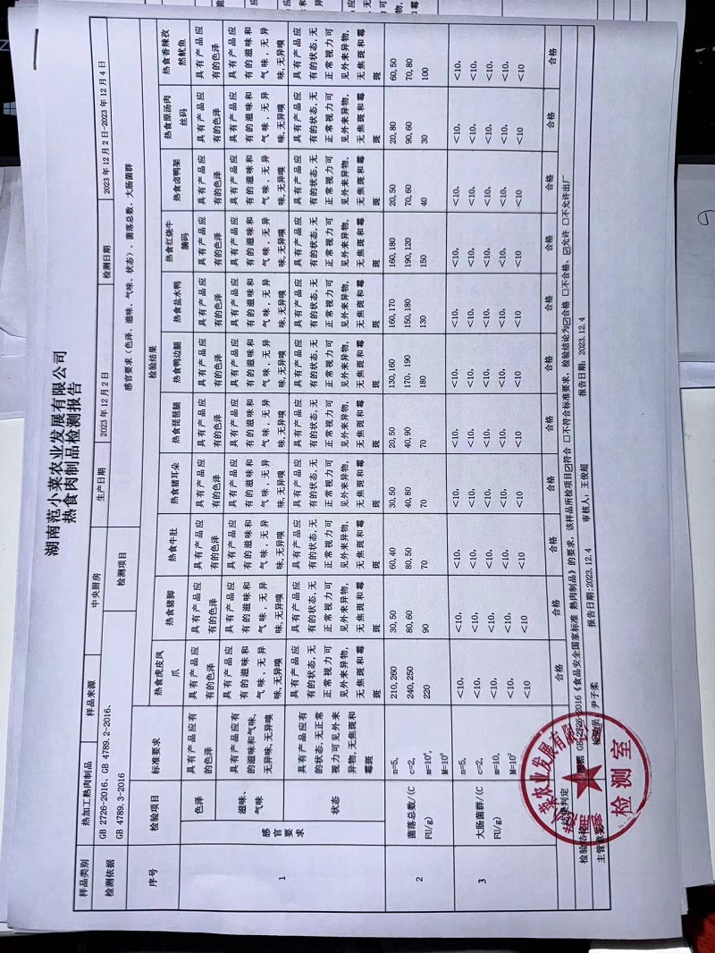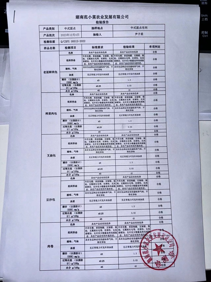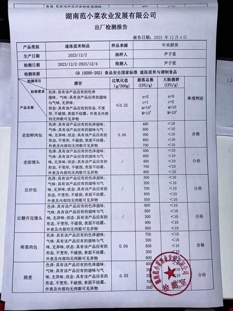 范小菜、一品佳热食肉制品、调味料、意面、农残、水产、中点、速冻米面制品2023.12.4