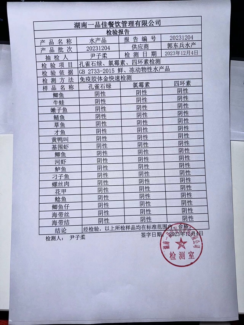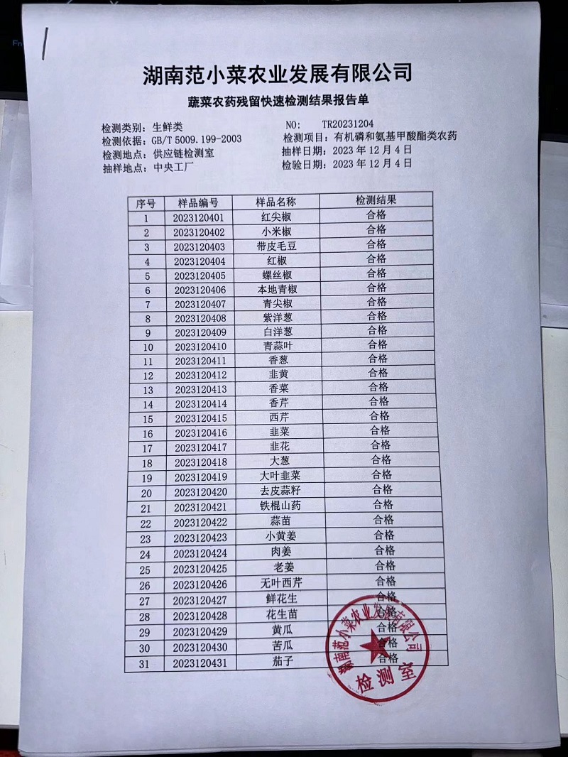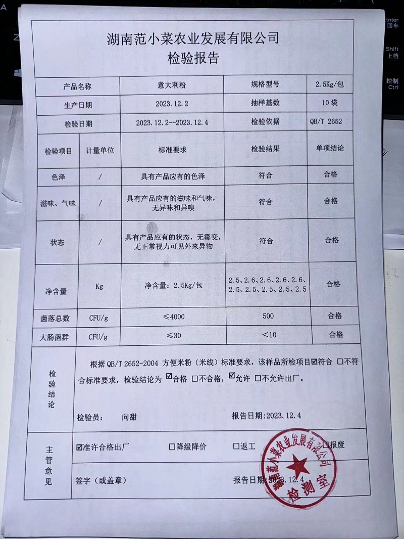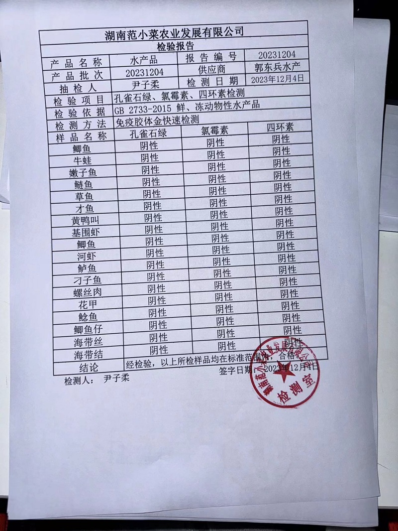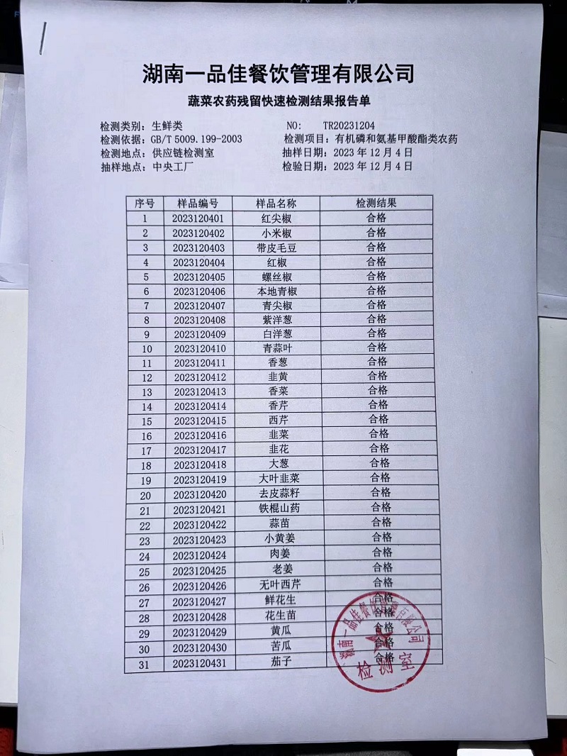范小菜、一品佳热食肉制品、调味料、意面、农残、水产、中点、速冻米面制品2023.12.4