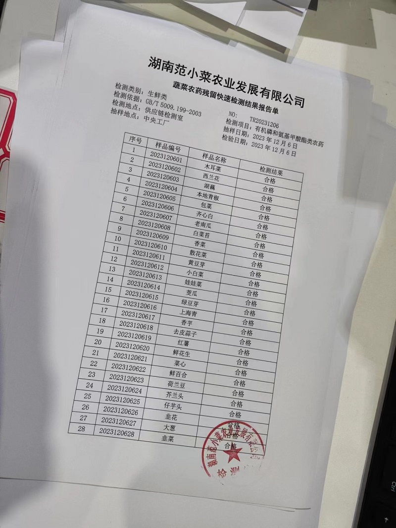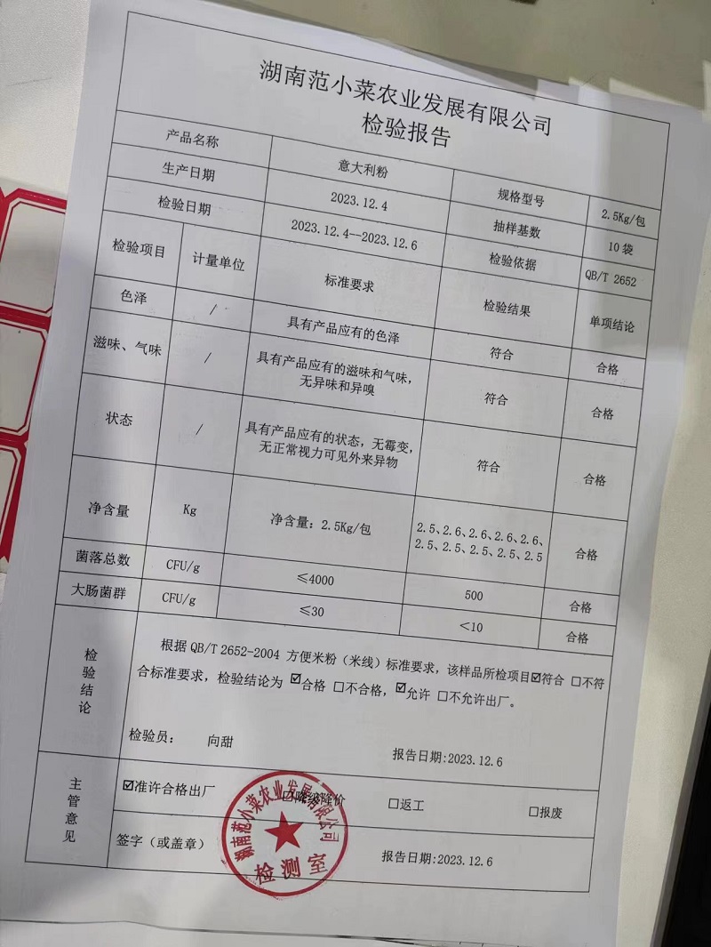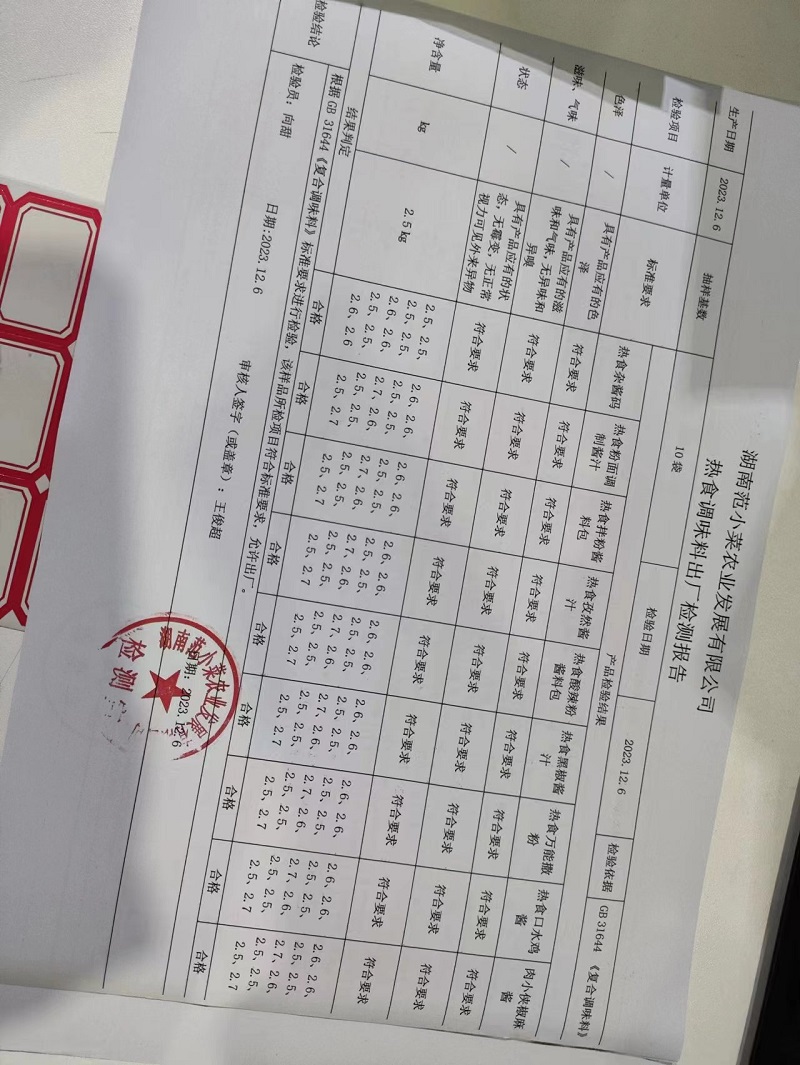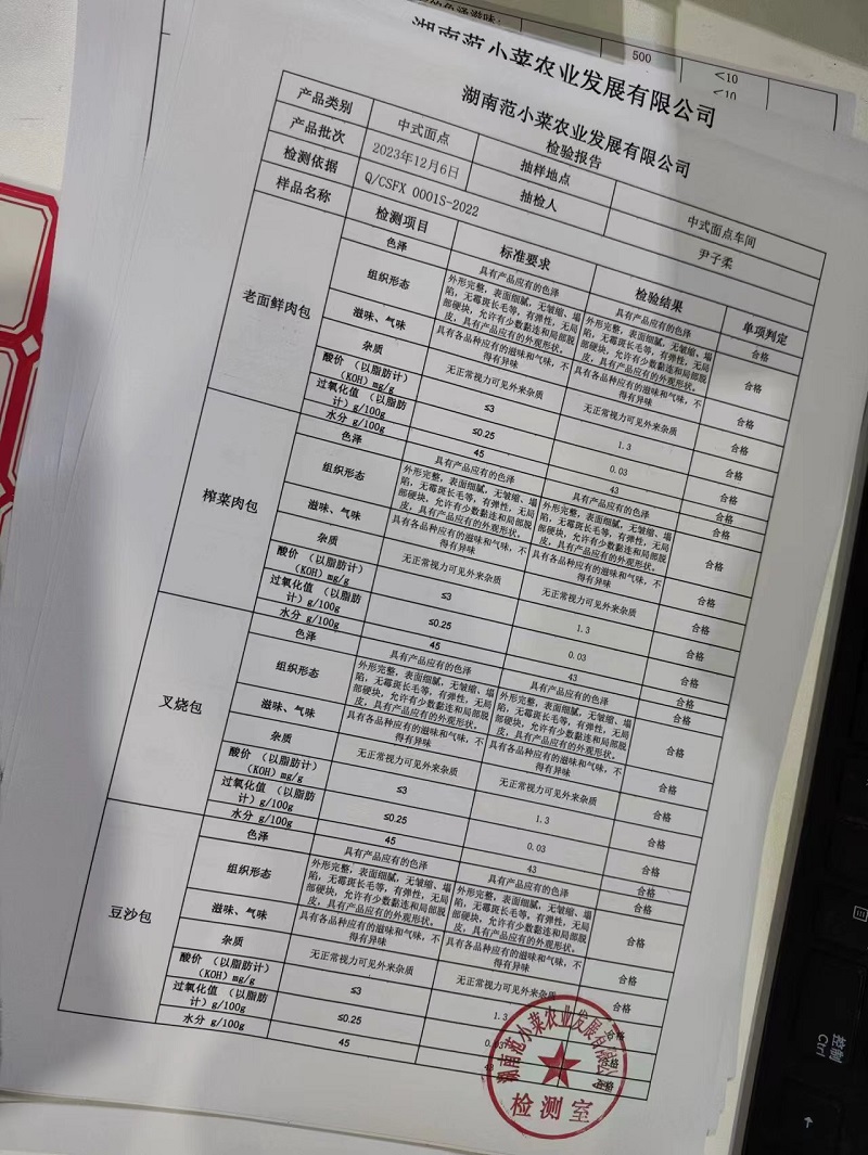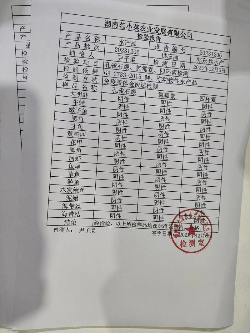 范小菜、一品佳热食肉制品、调味料、意面、农残、水产、中点、速冻米面制品2023.12.6