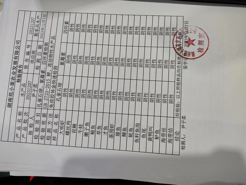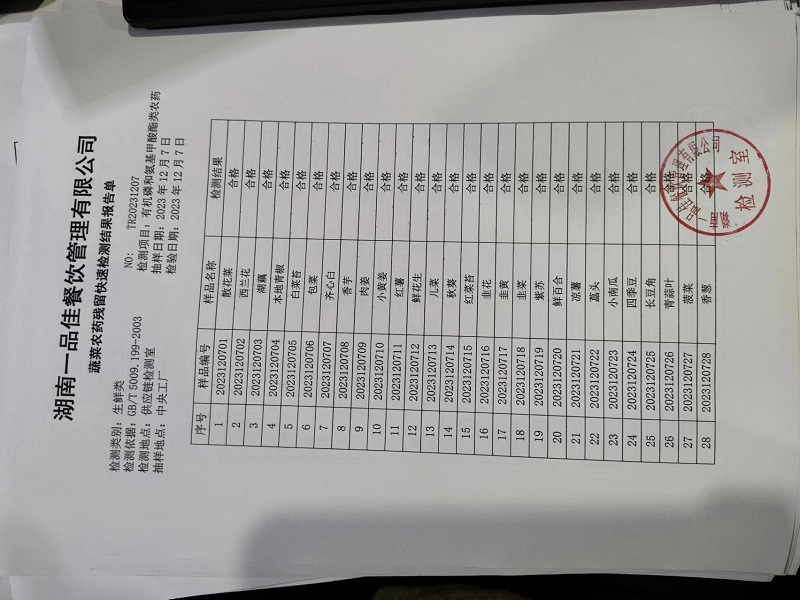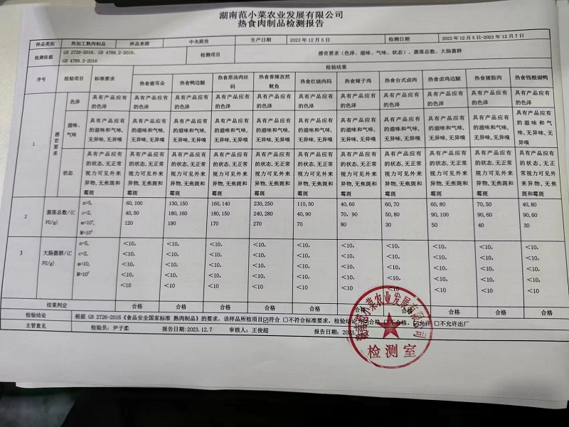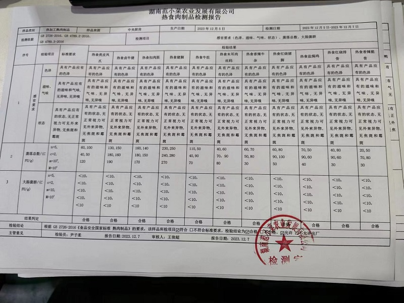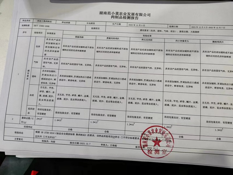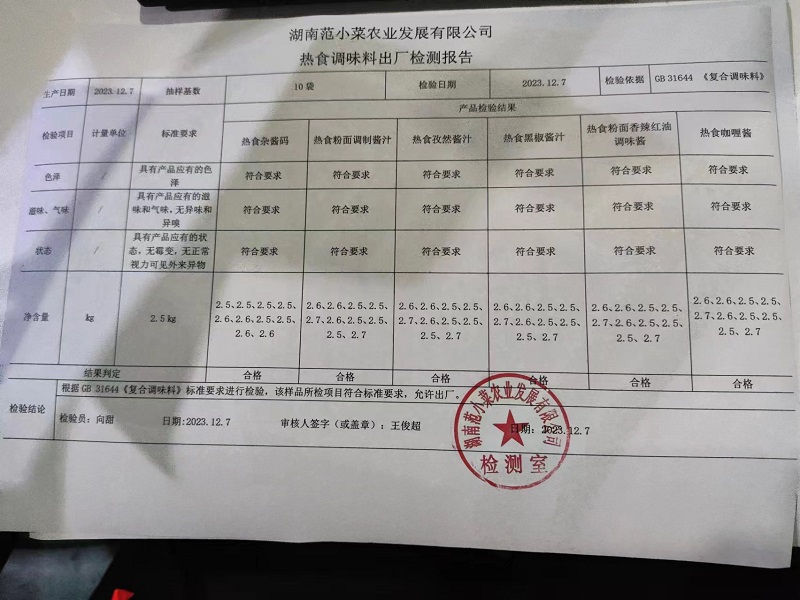 范小菜、一品佳热食肉制品、调味料、意面、农残、水产、中点、速冻米面制品2023.12.7