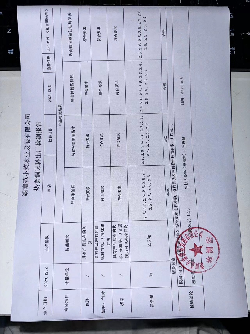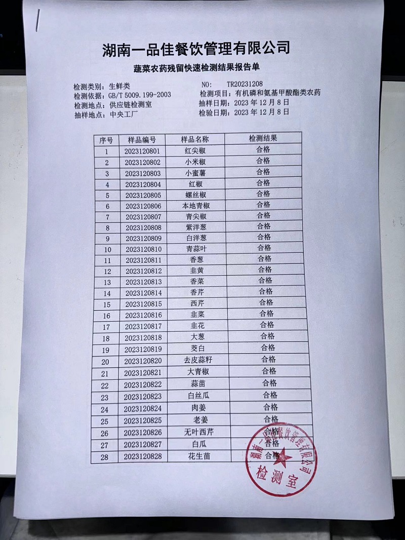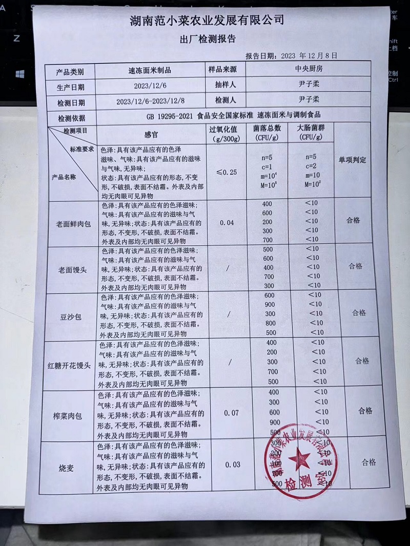 范小菜、一品佳热食肉制品、调味料、意面、农残、水产、中点、速冻米面制品2023.12.8