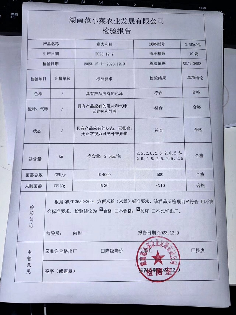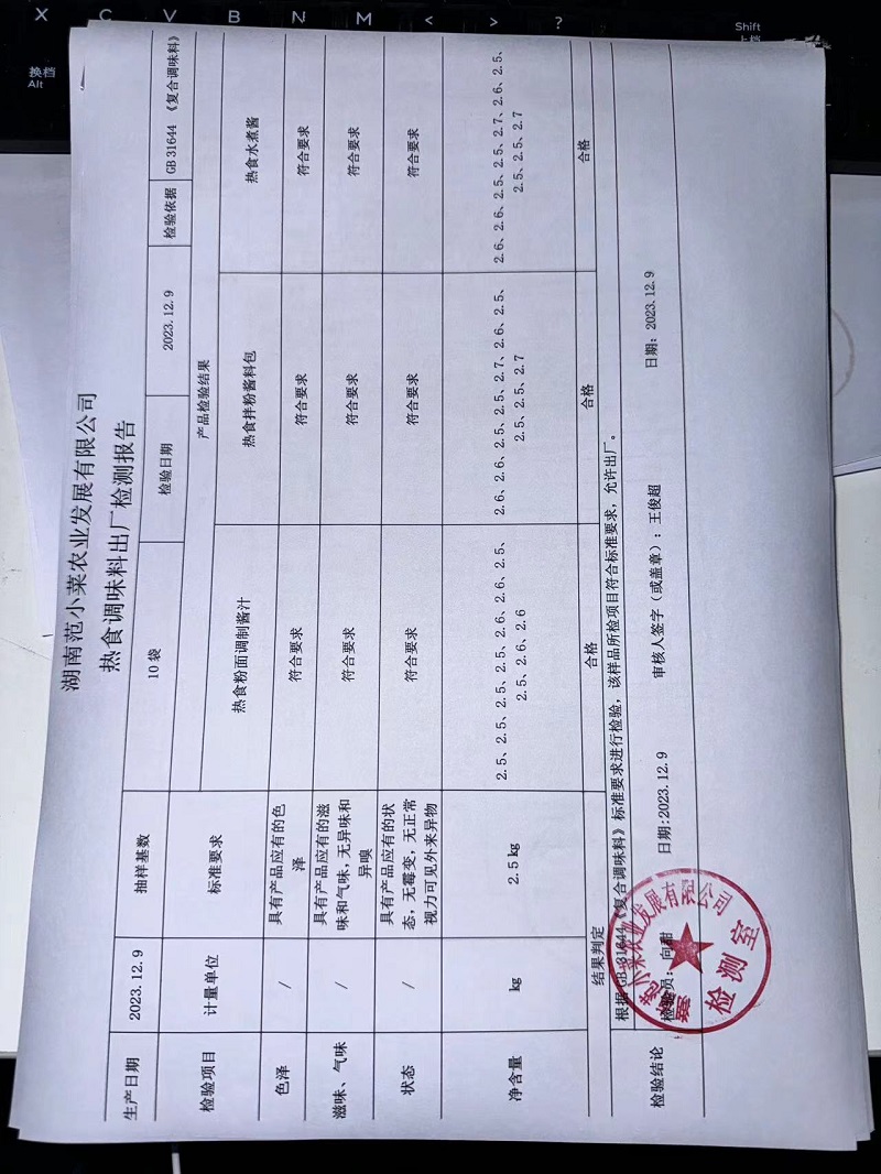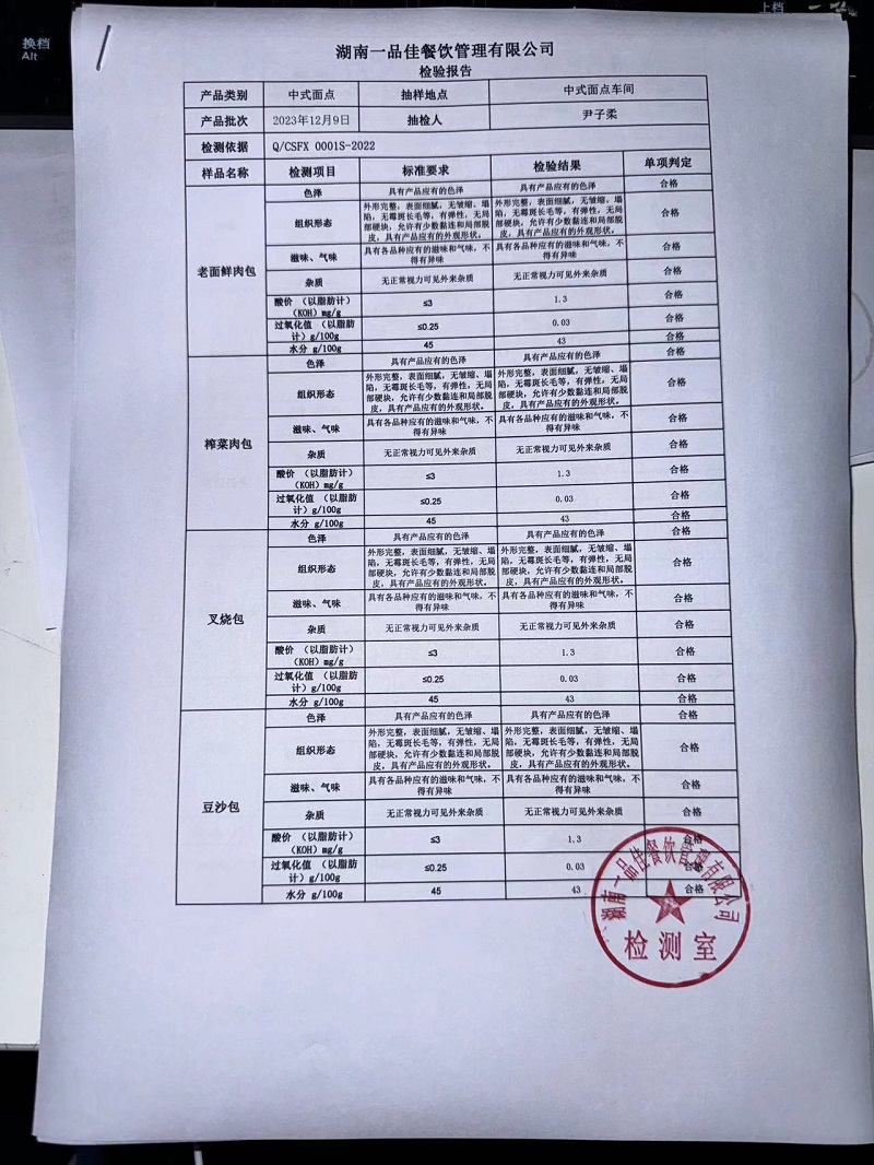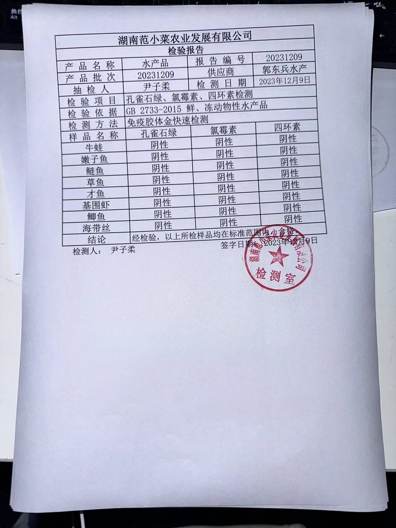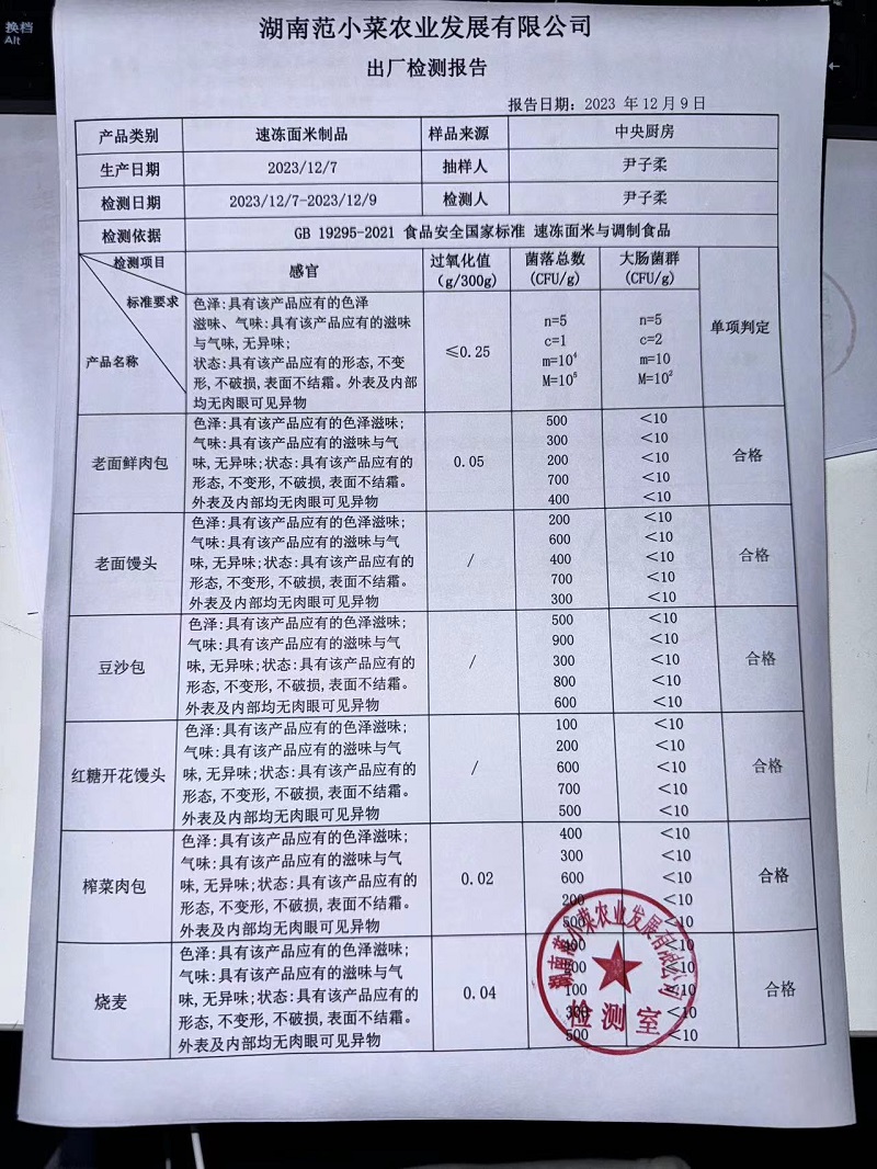 范小菜、一品佳热食肉制品、调味料、意面、农残、水产、中点、速冻米面制品2023.12.9