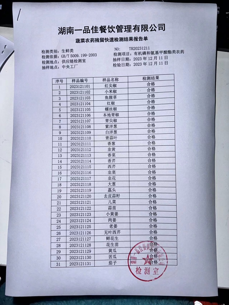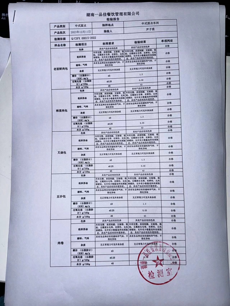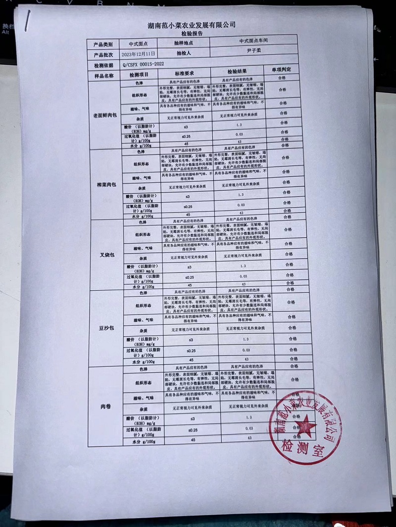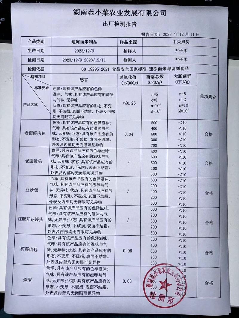 范小菜、一品佳热食肉制品、调味料、意面、农残、水产、中点、速冻米面制品2023.12.11