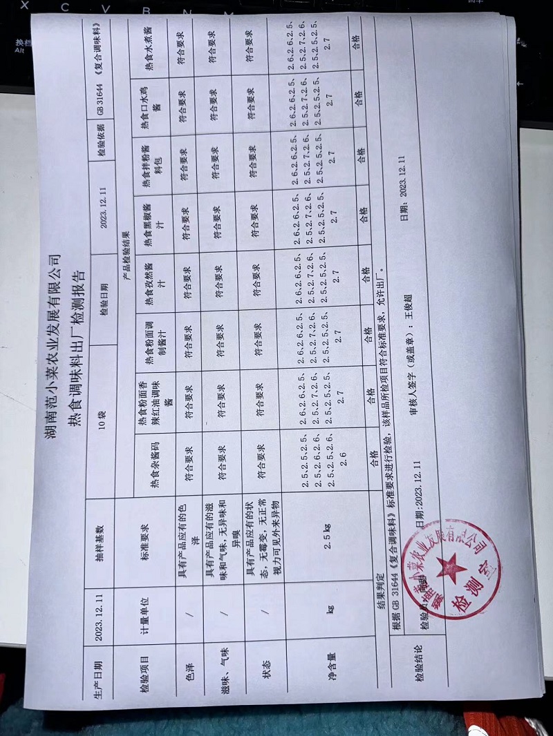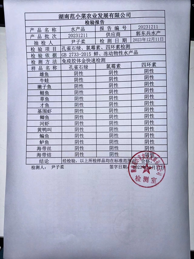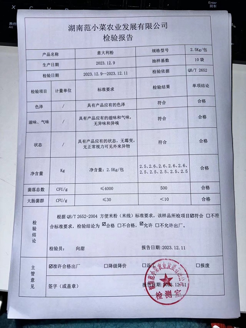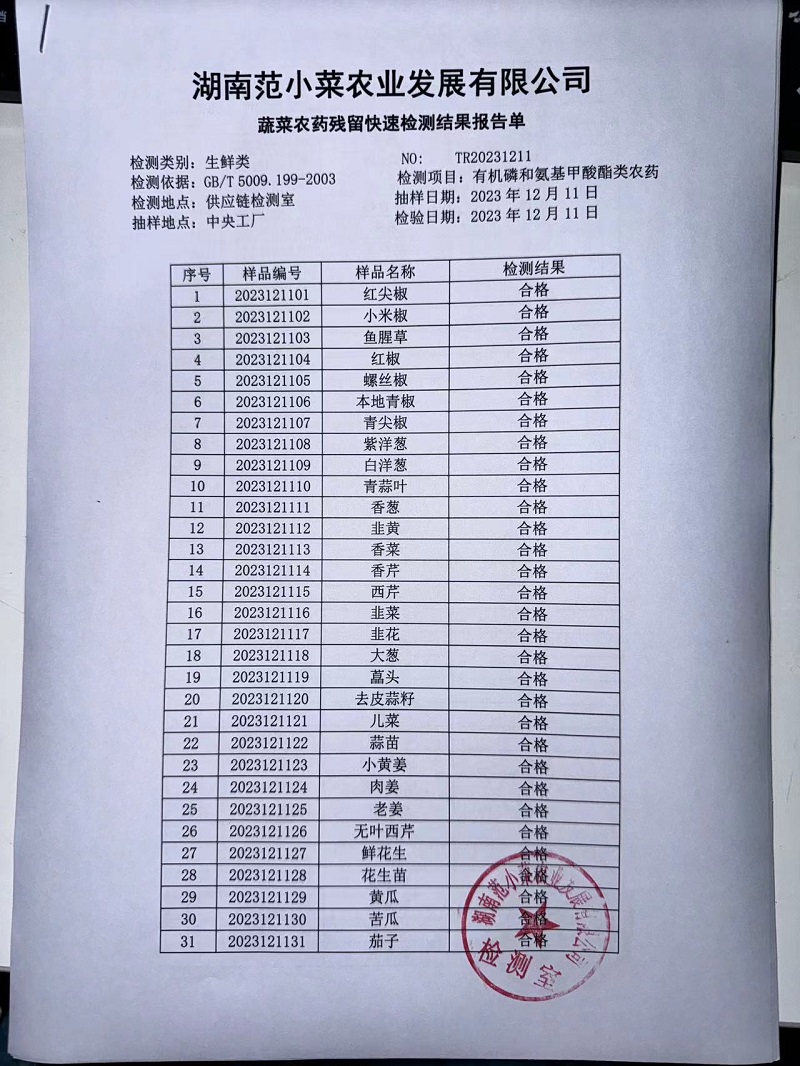 范小菜、一品佳热食肉制品、调味料、意面、农残、水产、中点、速冻米面制品2023.12.11