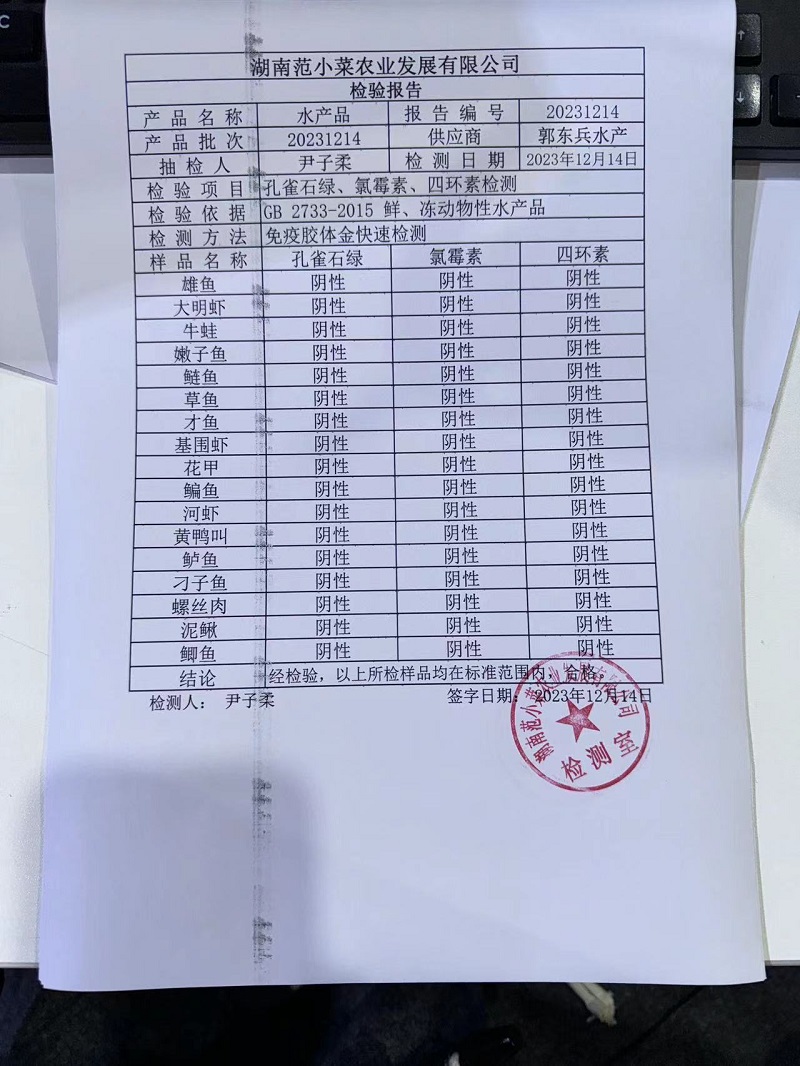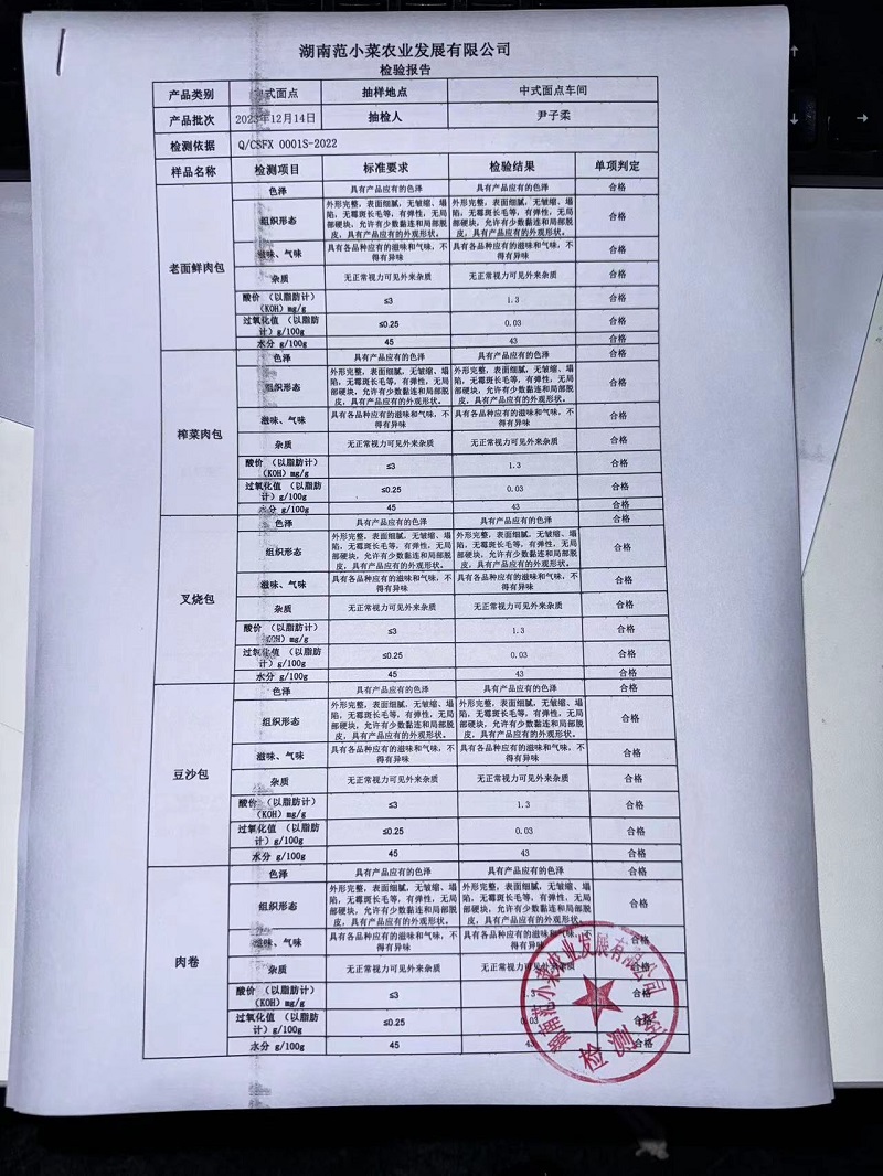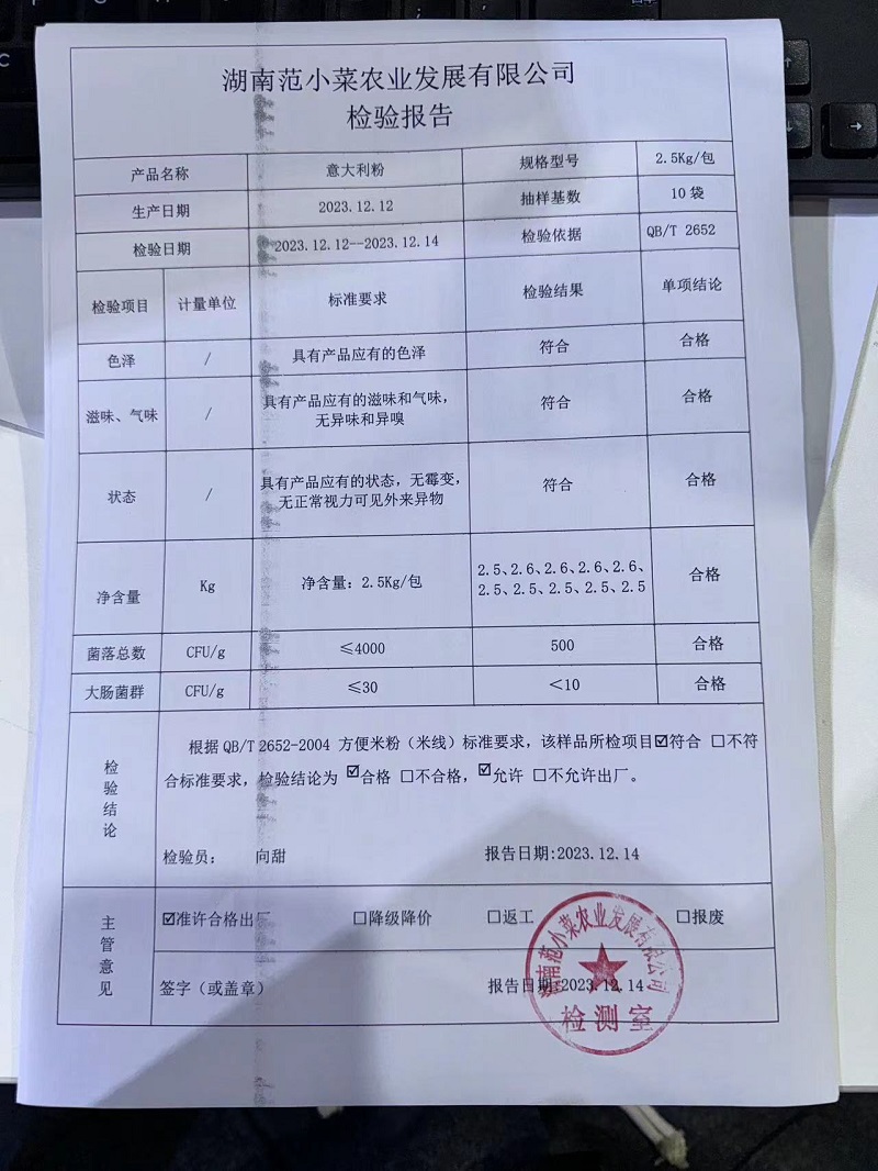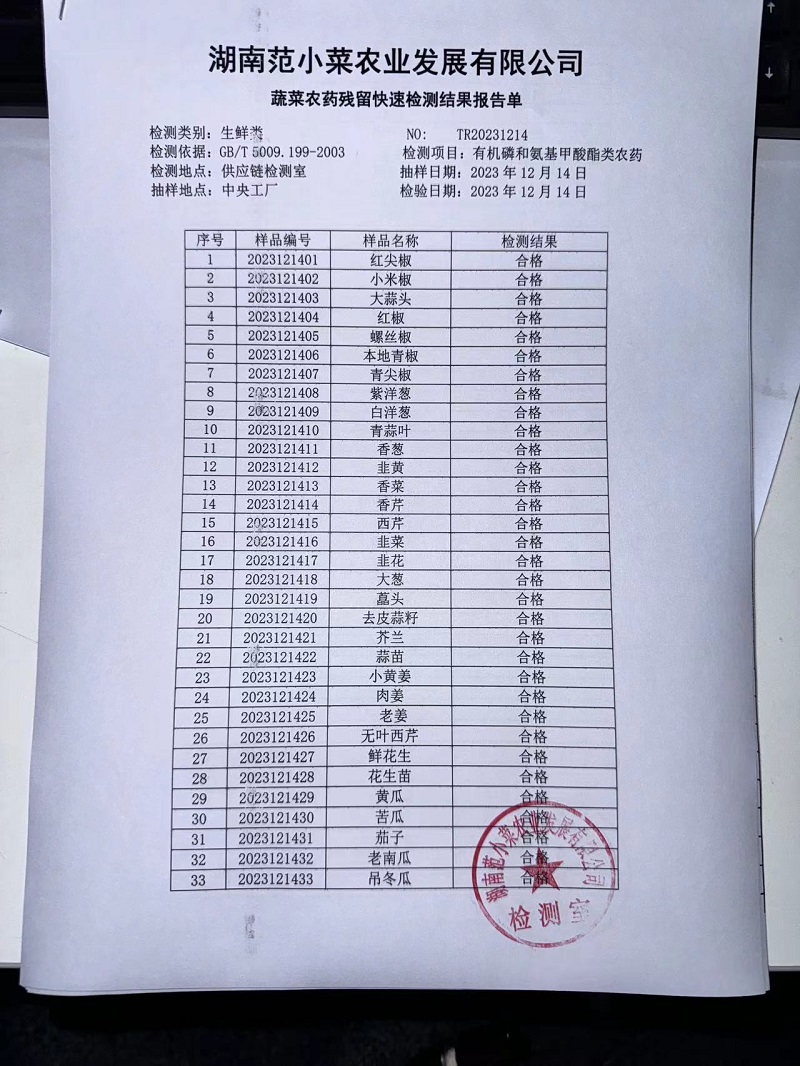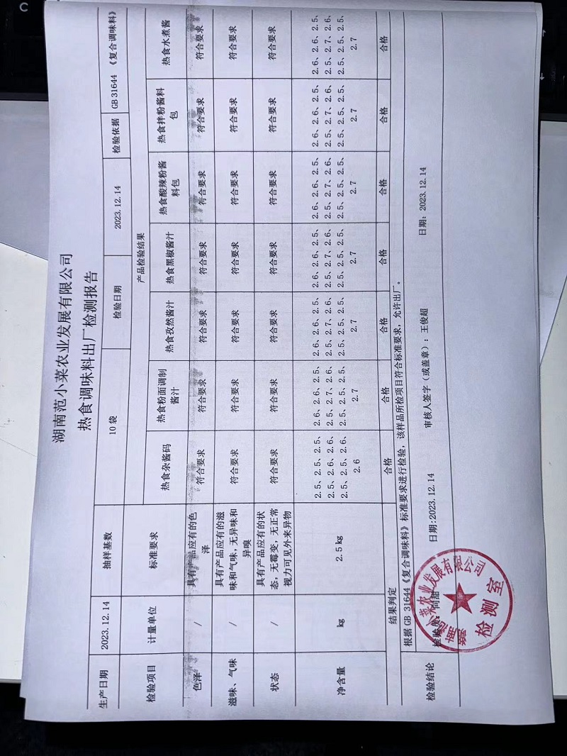 范小菜、一品佳热食肉制品、调味料、意面、农残、水产、中点、速冻米面制品2023.12.14