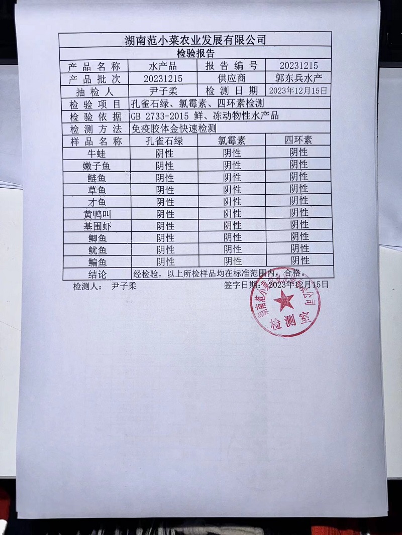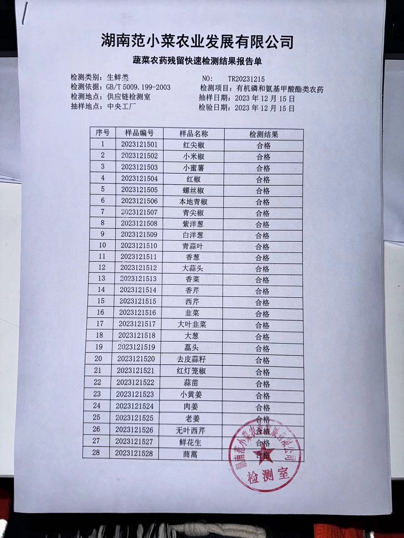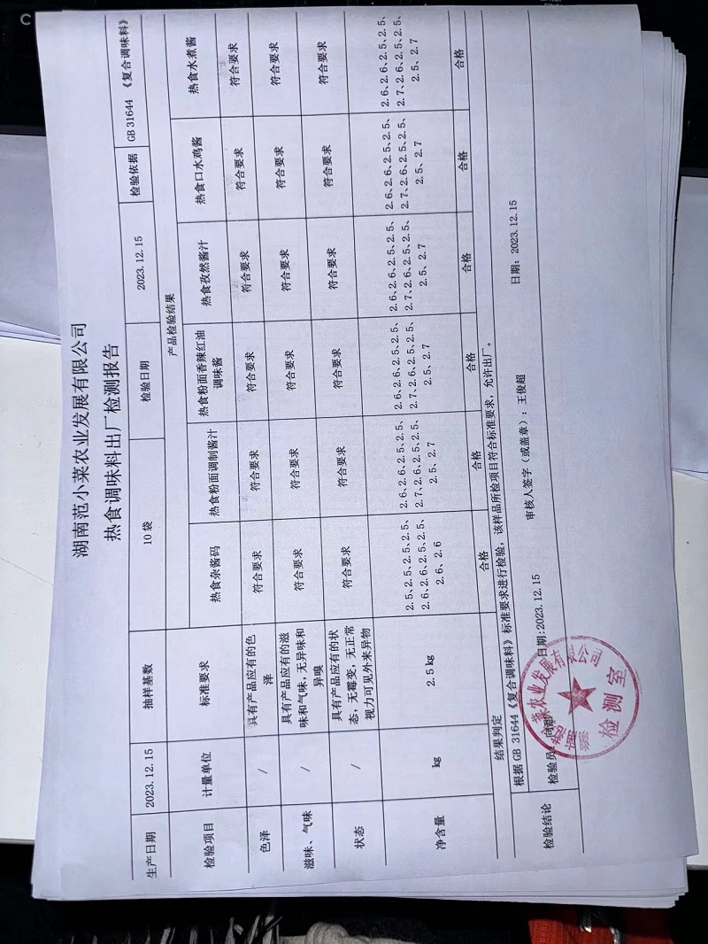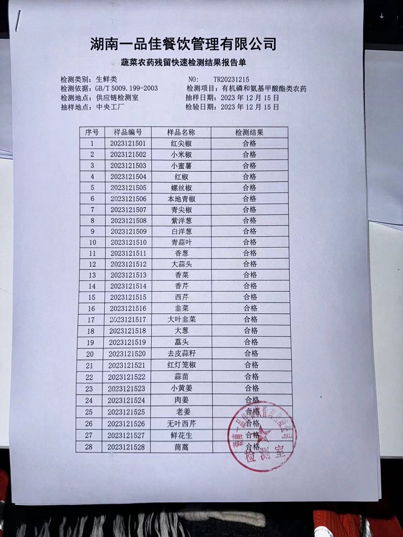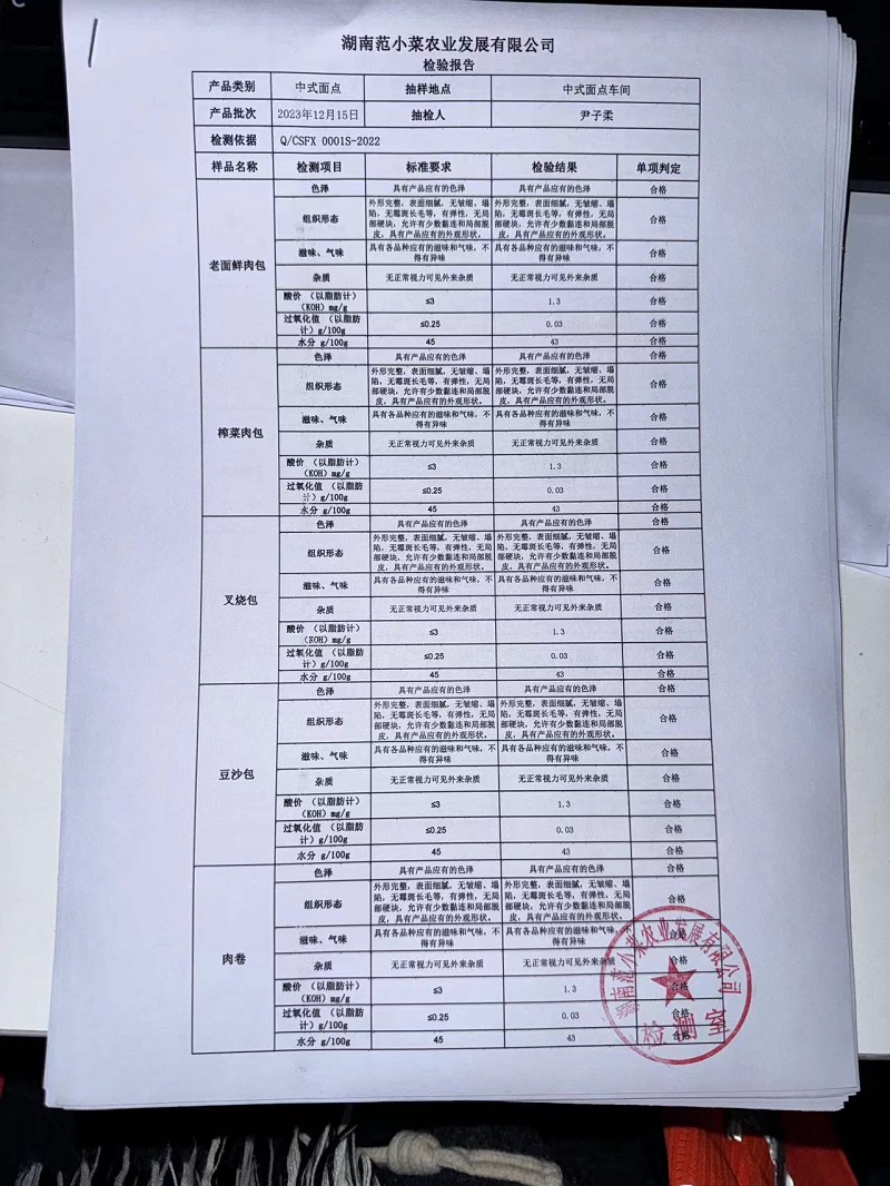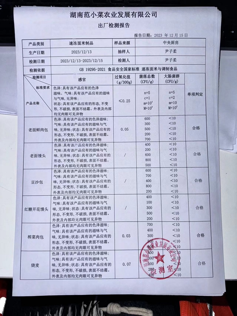 范小菜、一品佳热食肉制品、调味料、意面、农残、水产、中点、速冻米面制品2023.12.15