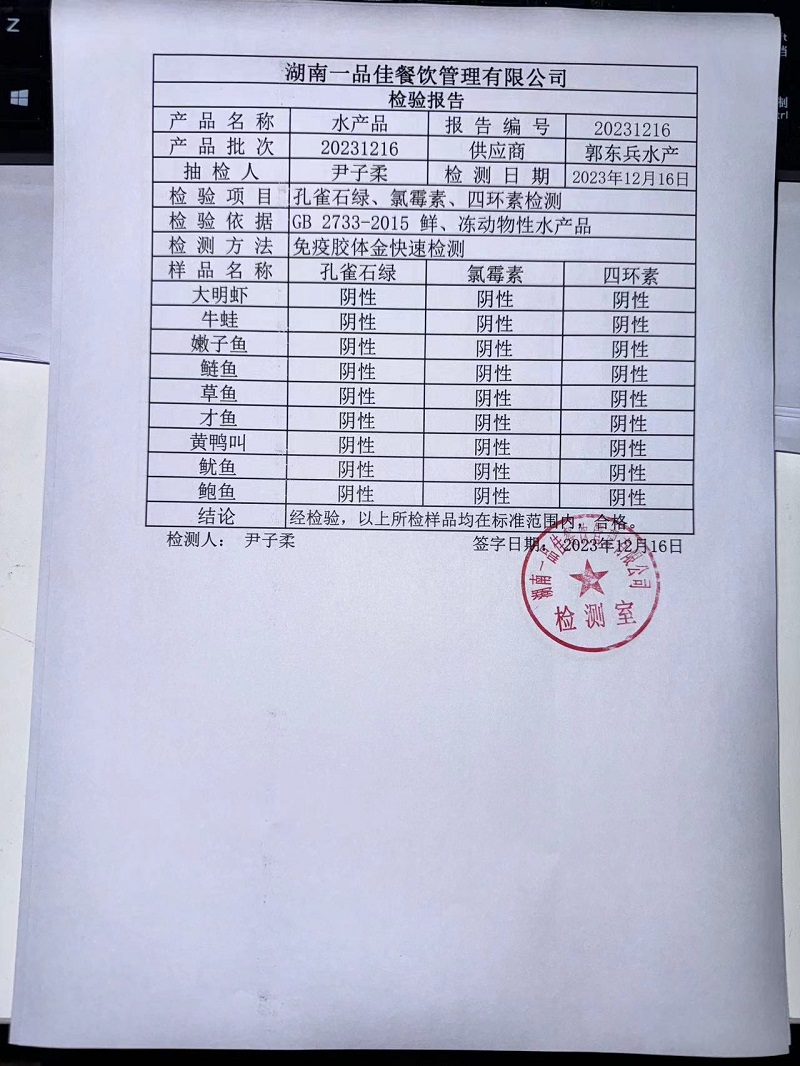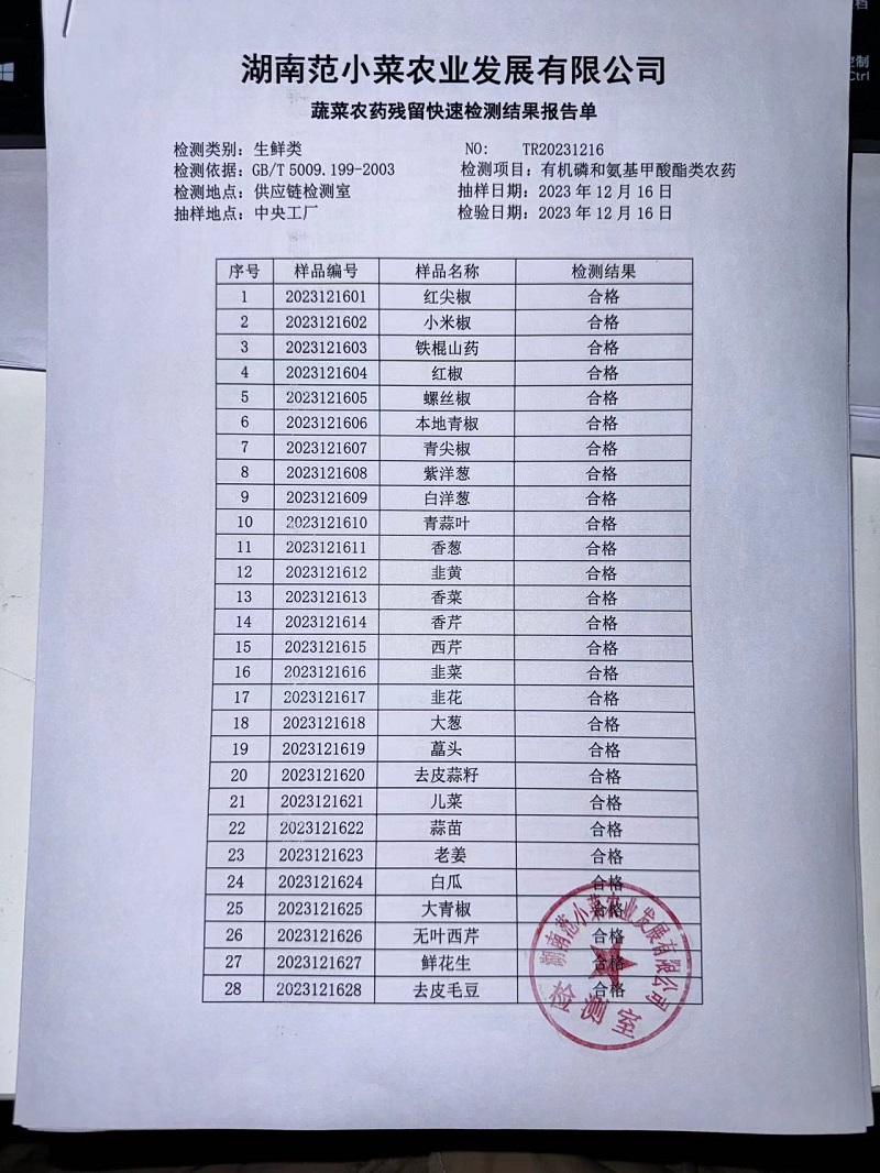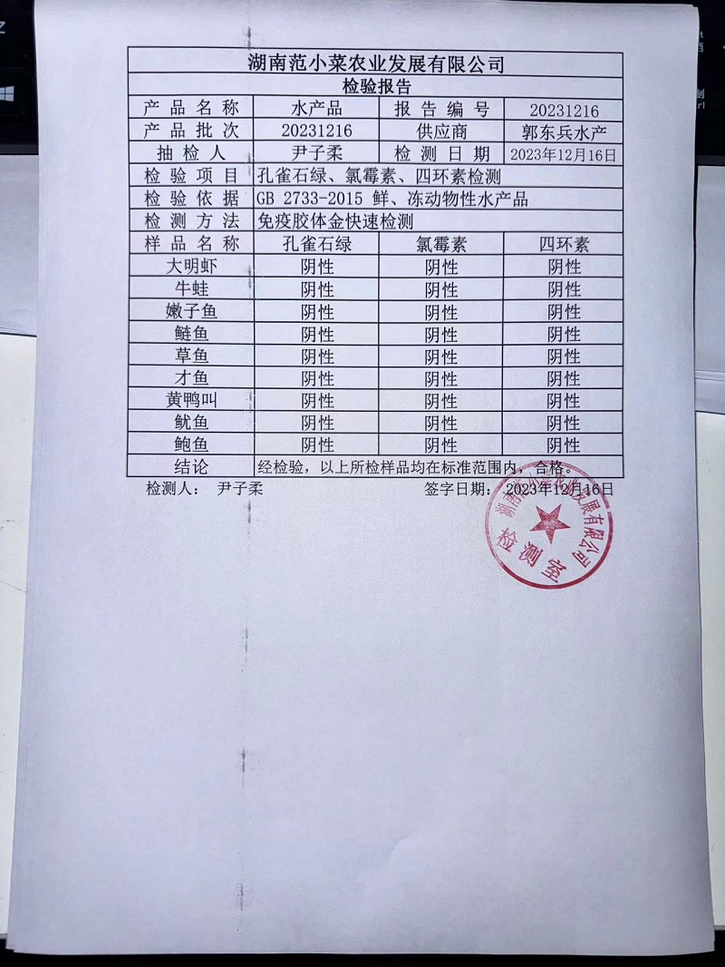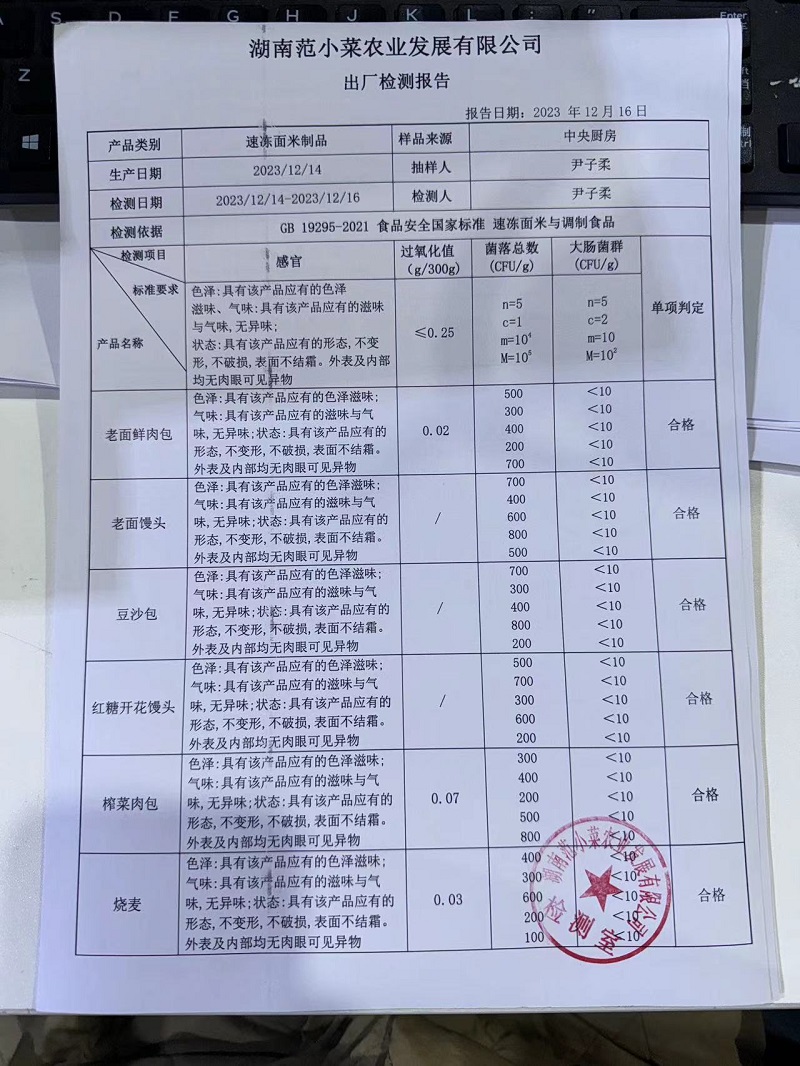 范小菜、一品佳热食肉制品、调味料、意面、农残、水产、中点、速冻米面制品2023.12.16