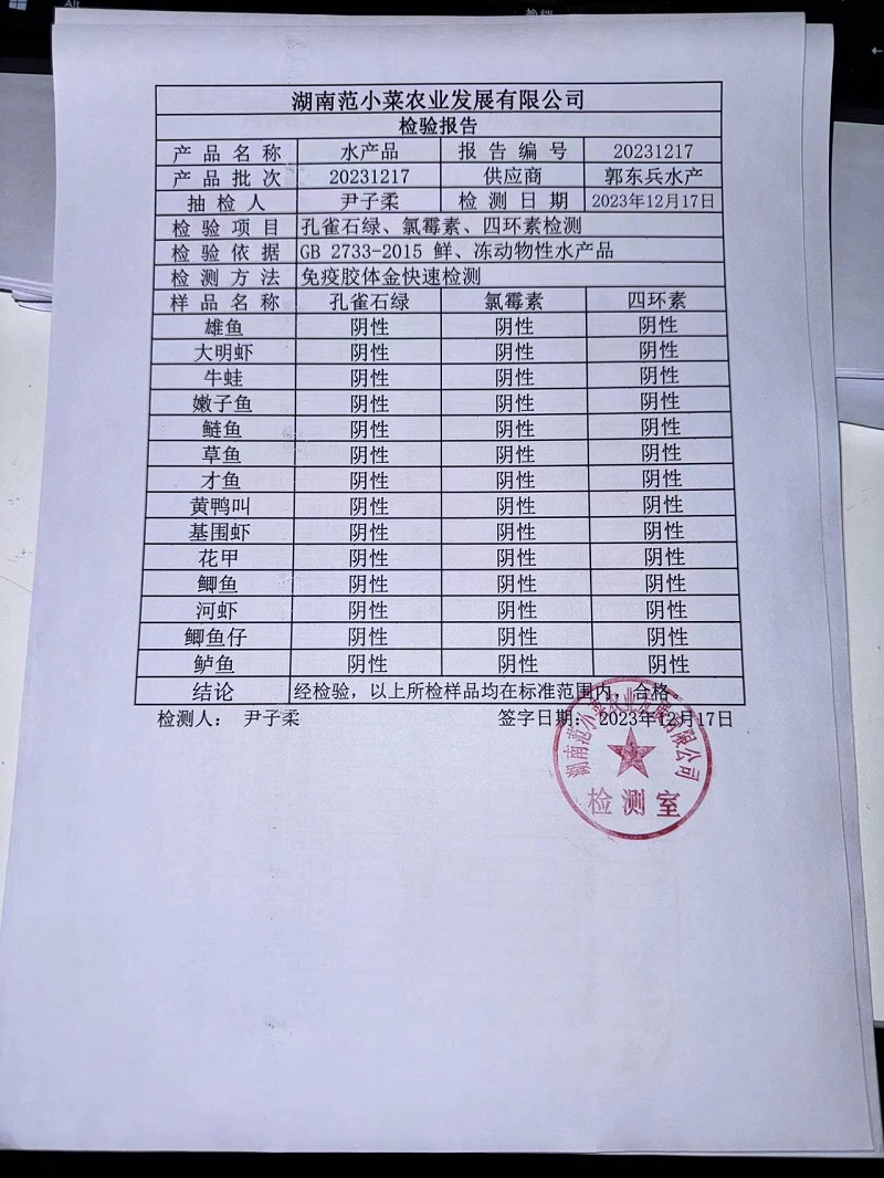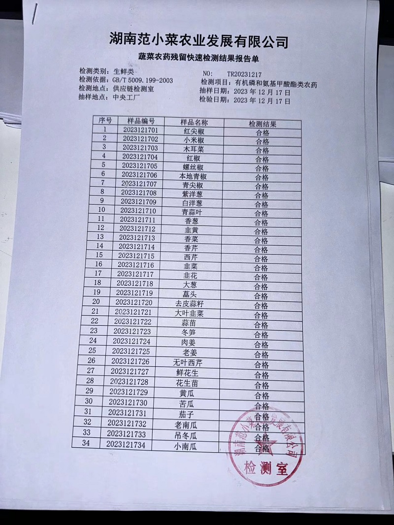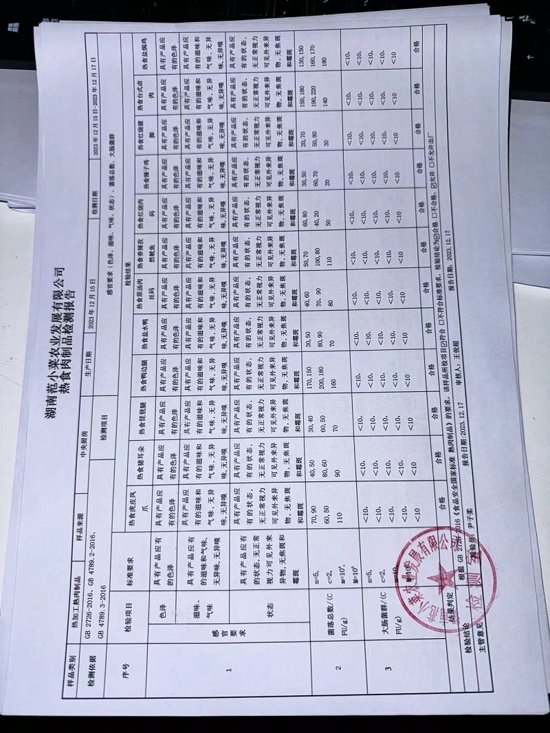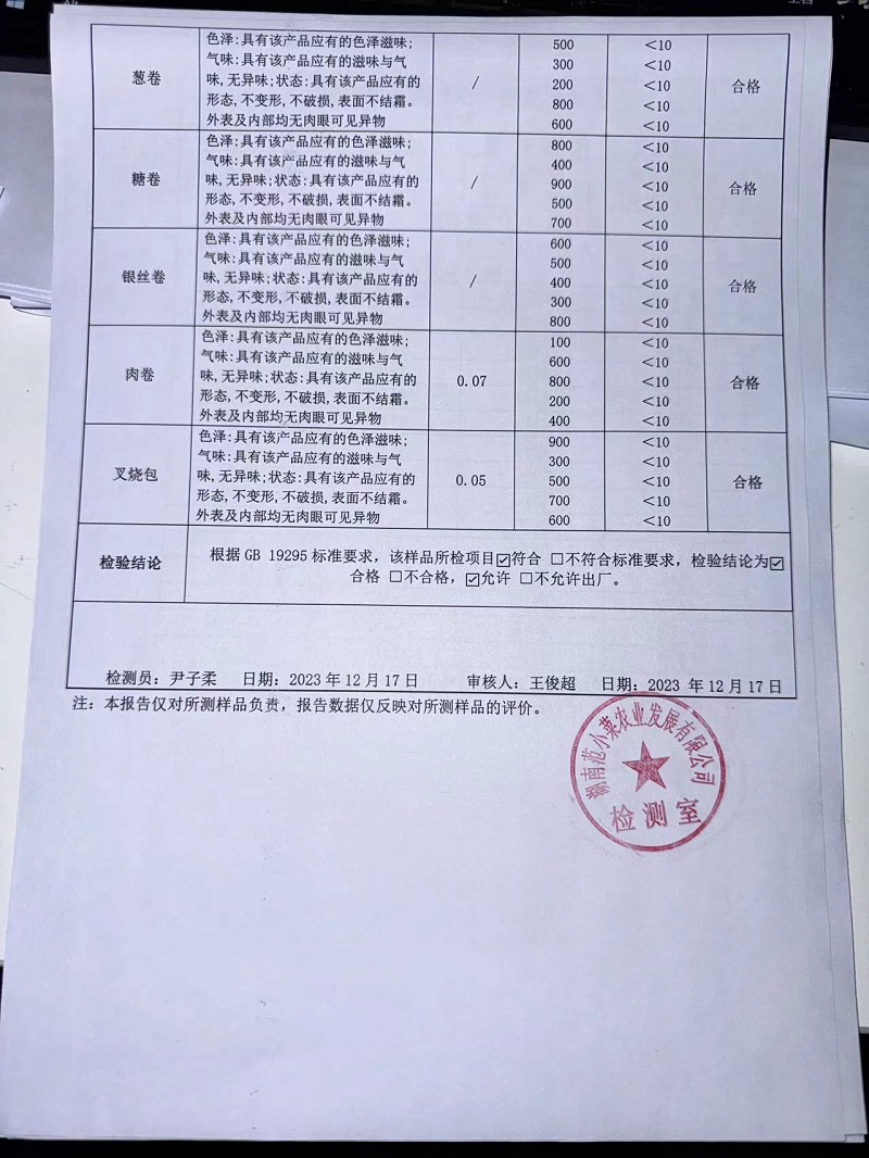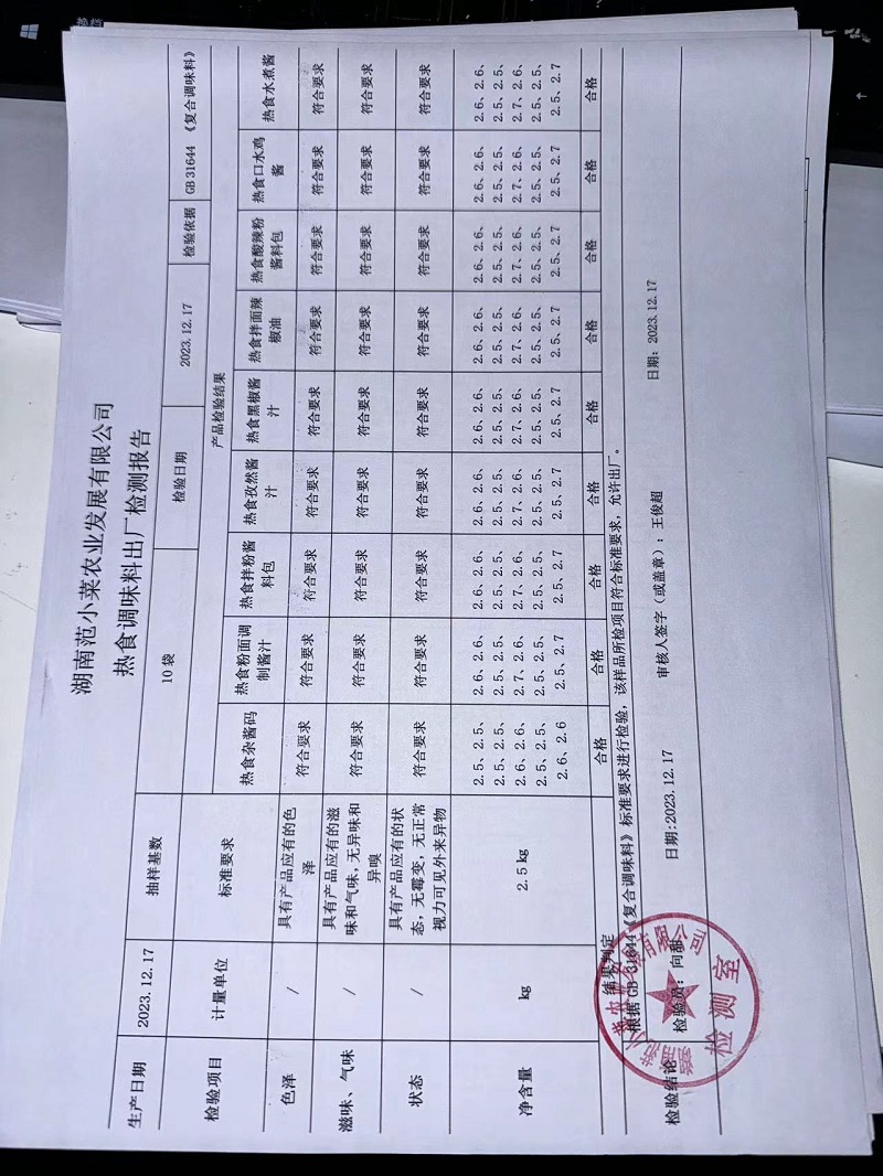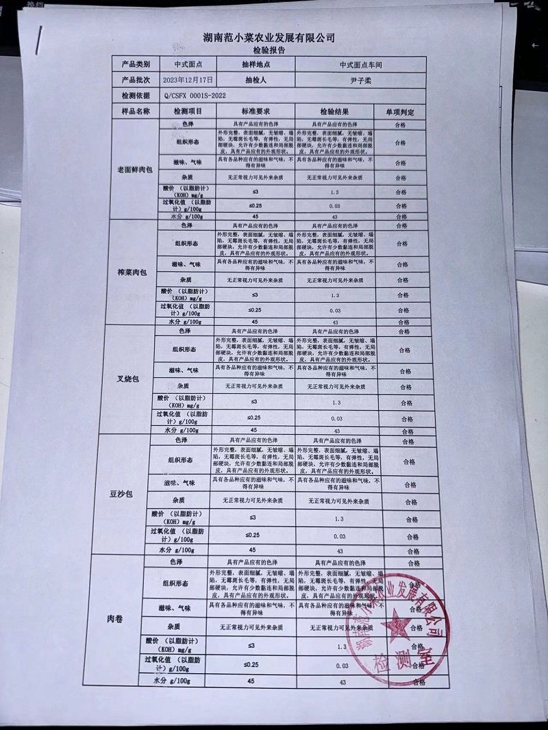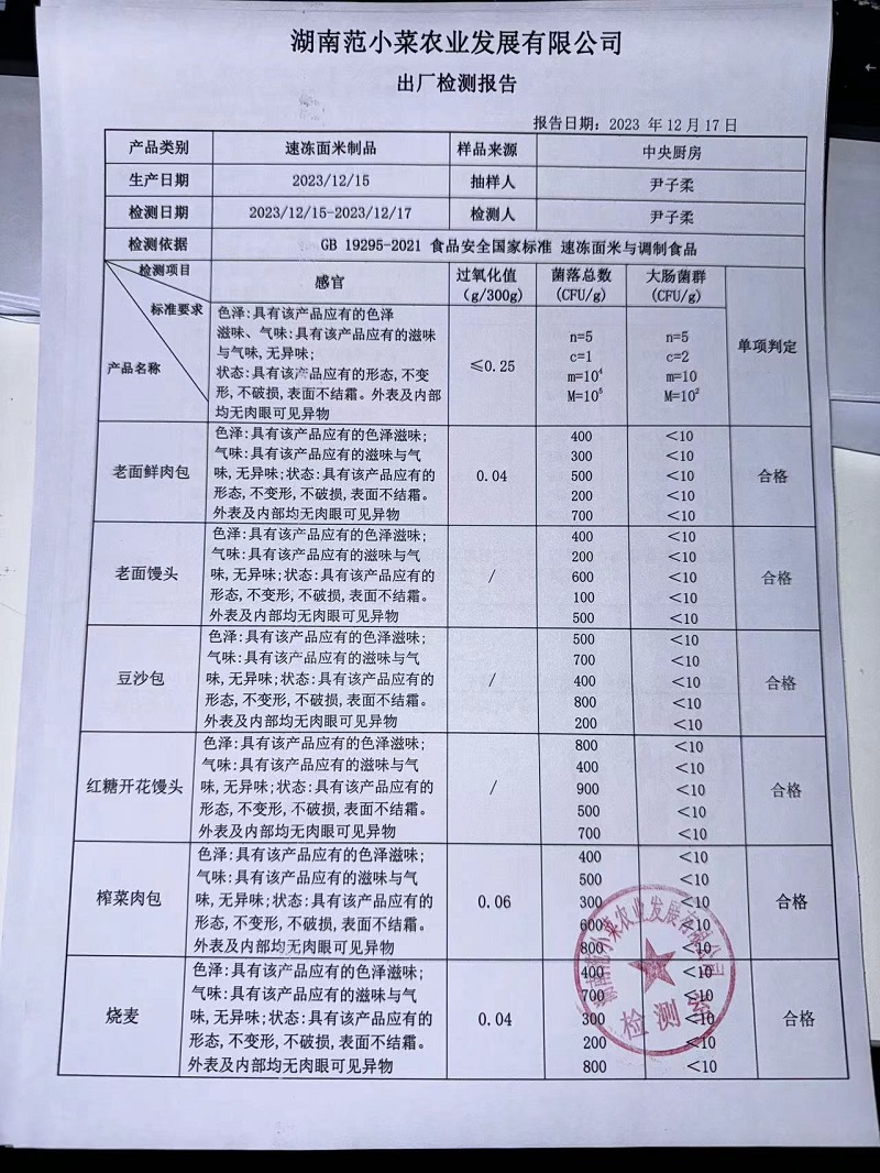 范小菜、一品佳热食肉制品、调味料、意面、农残、水产、中点、速冻米面制品2023.12.17
