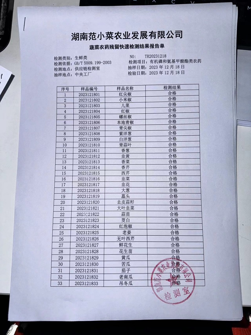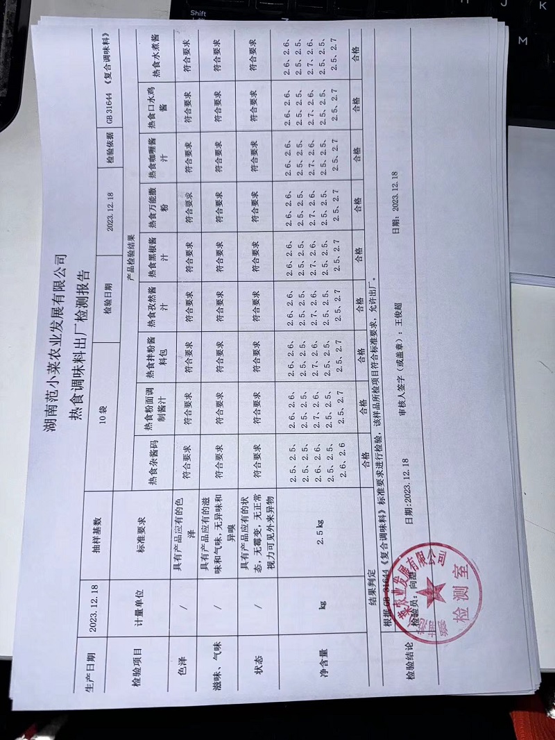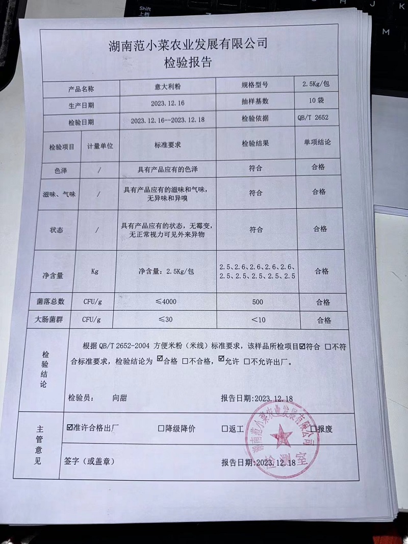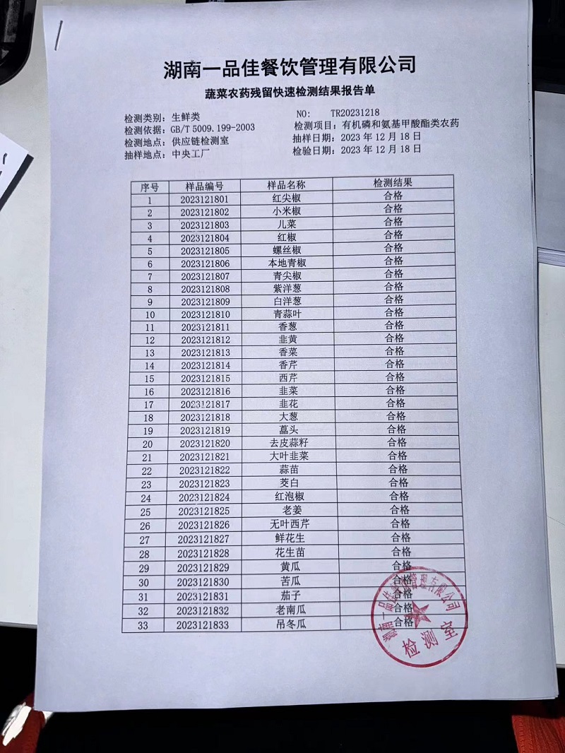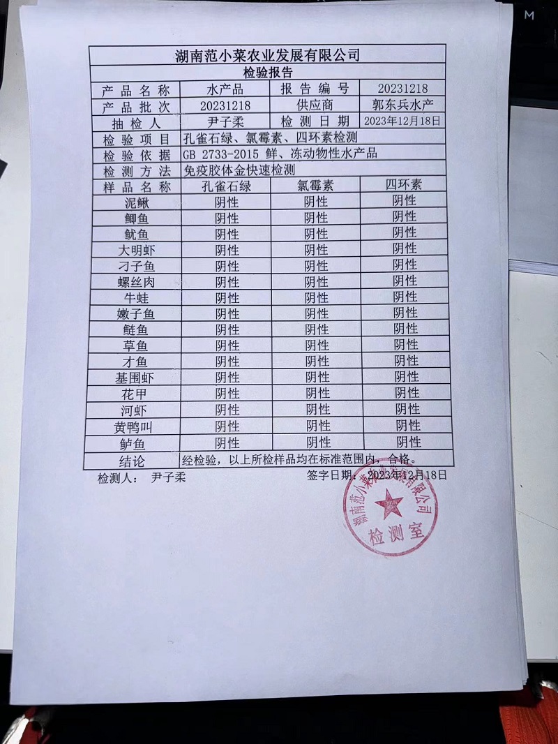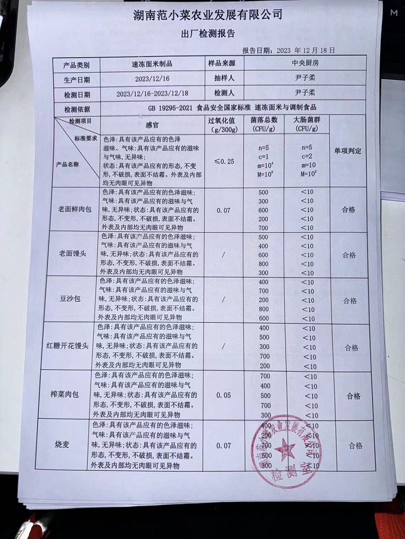 范小菜、一品佳热食肉制品、调味料、意面、农残、水产、中点、速冻米面制品2023.12.18