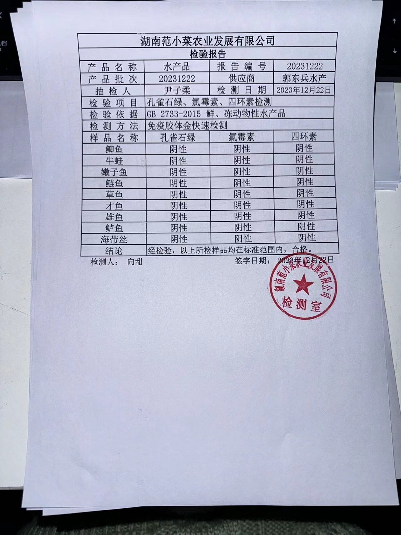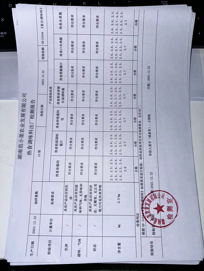 范小菜、一品佳热食肉制品、调味料、意面、农残、水产、中点、速冻米面制品2023.12.22