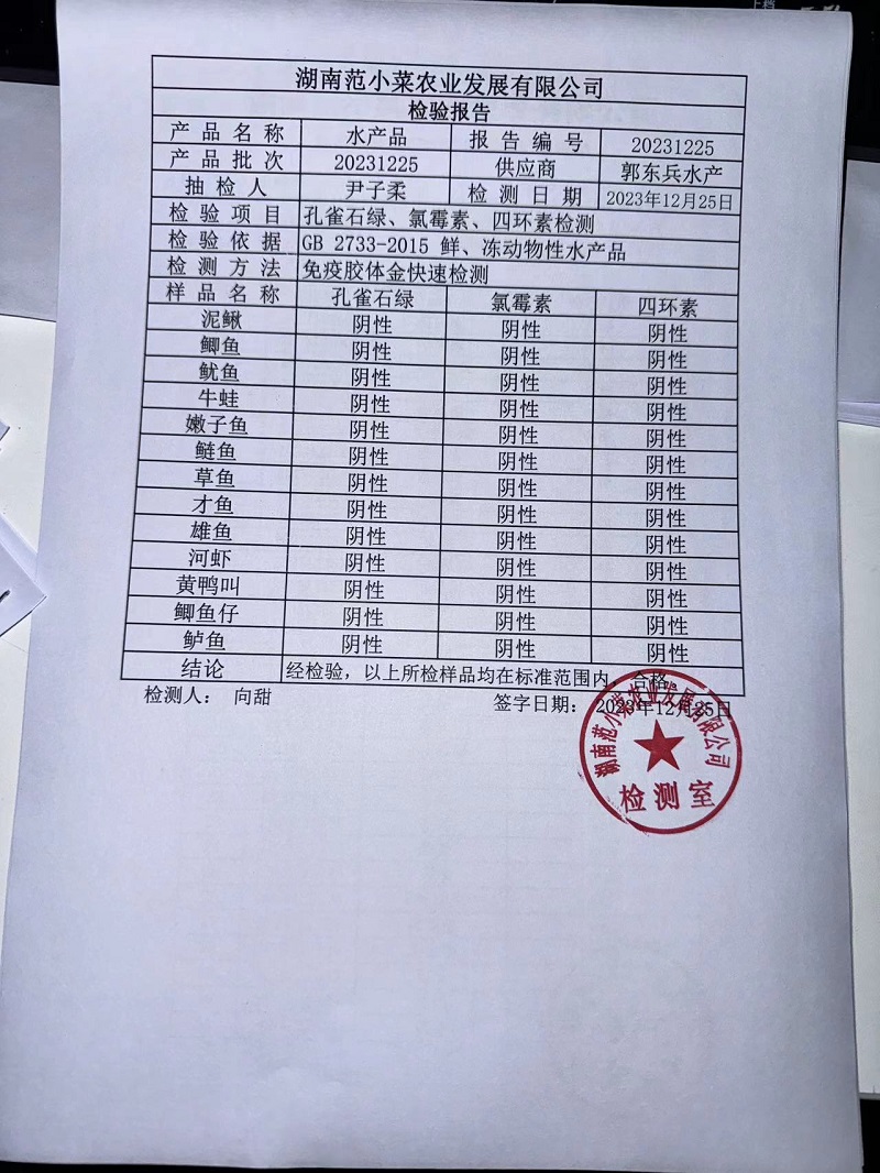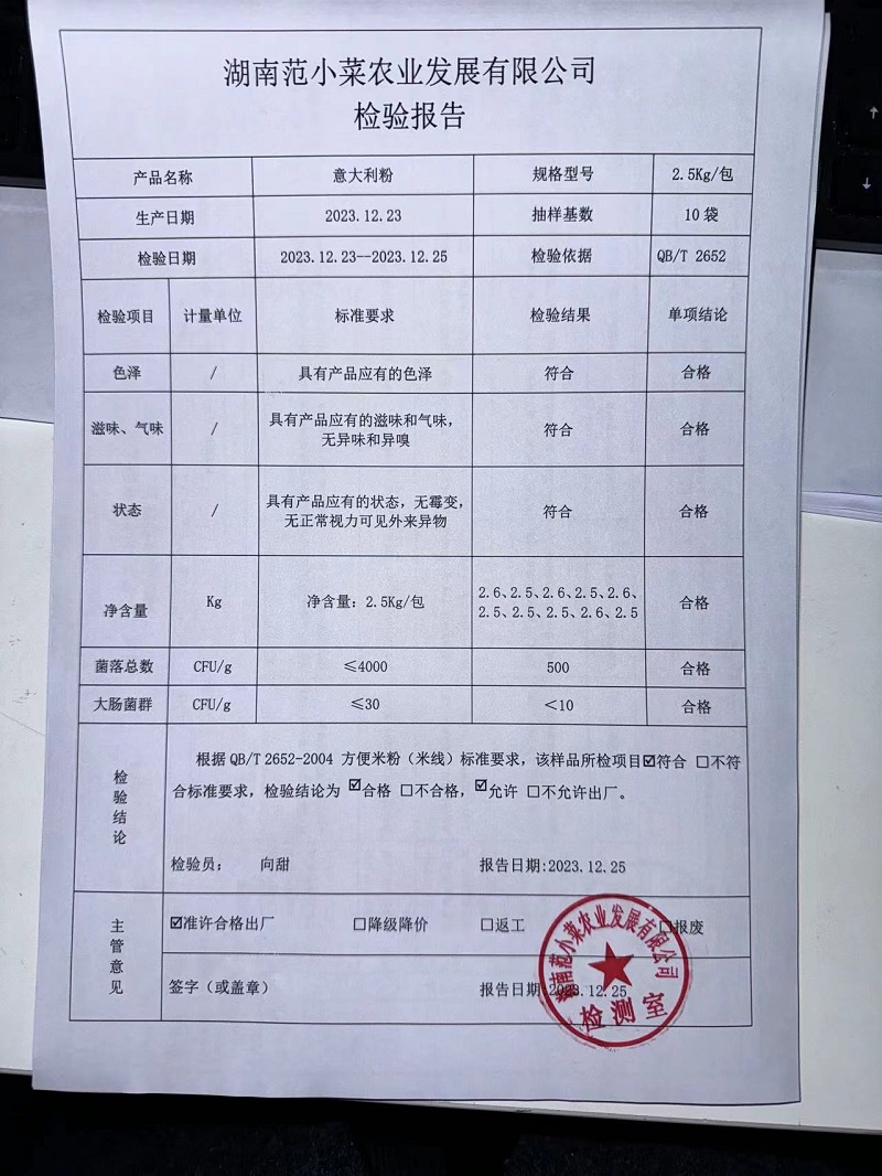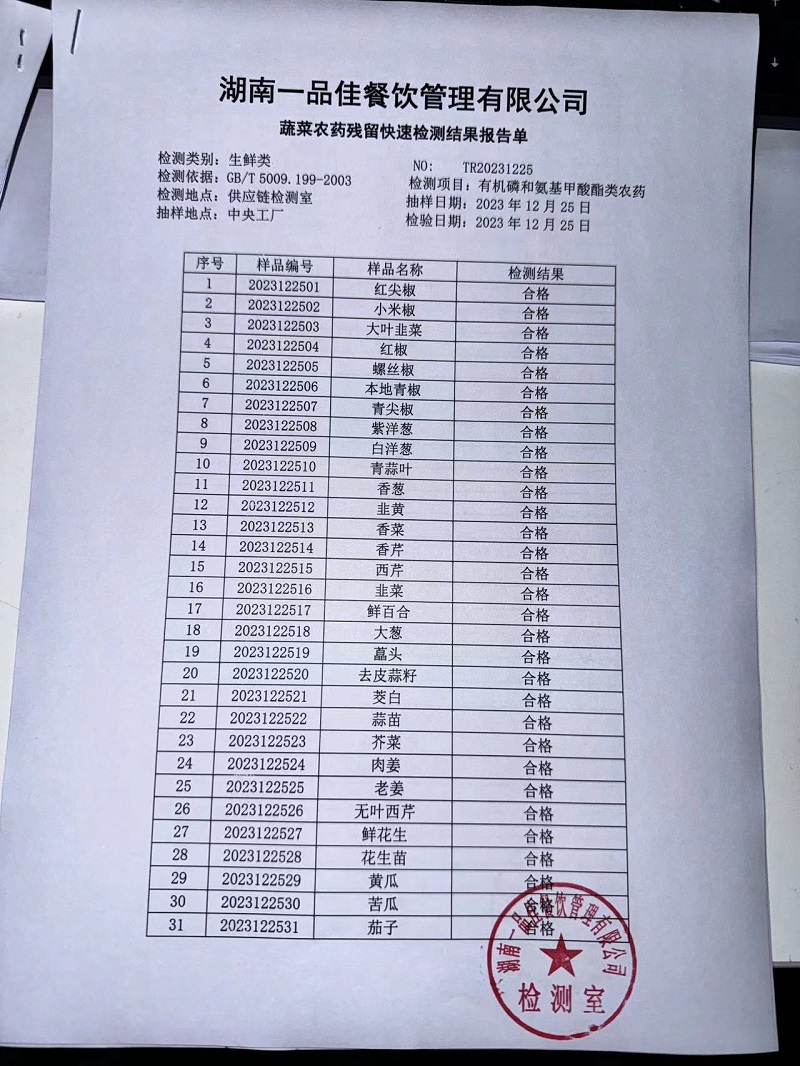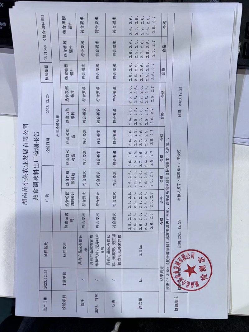 范小菜、一品佳热食肉制品、调味料、意面、农残、水产、中点、速冻米面制品2023.12.25