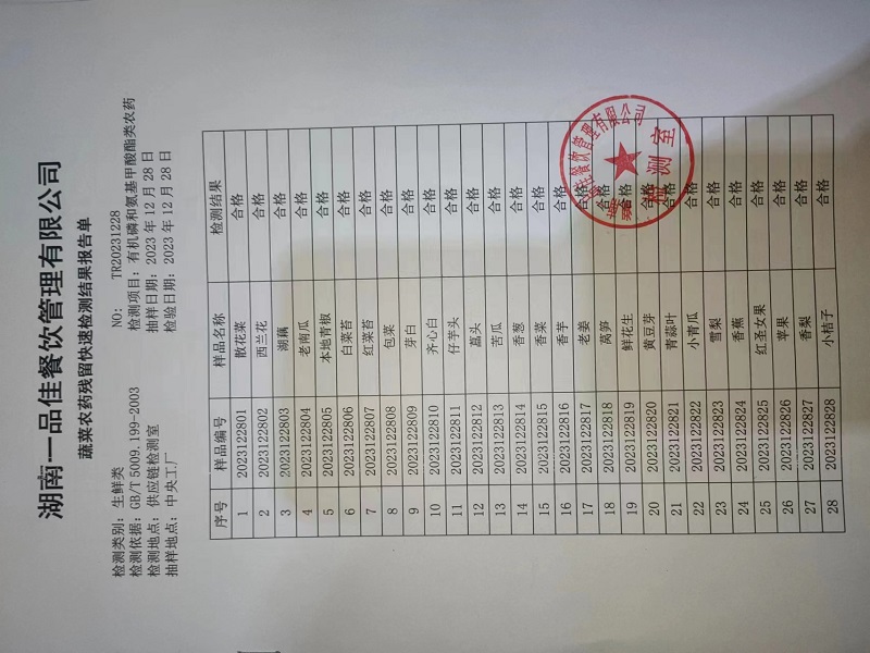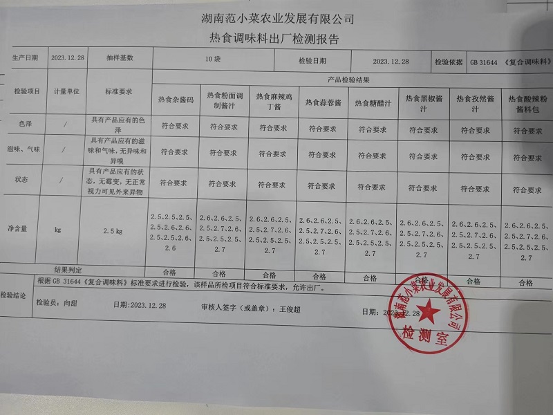 范小菜、一品佳热食肉制品、调味料、意面、农残、水产、中点、速冻米面制品2023.12.28
