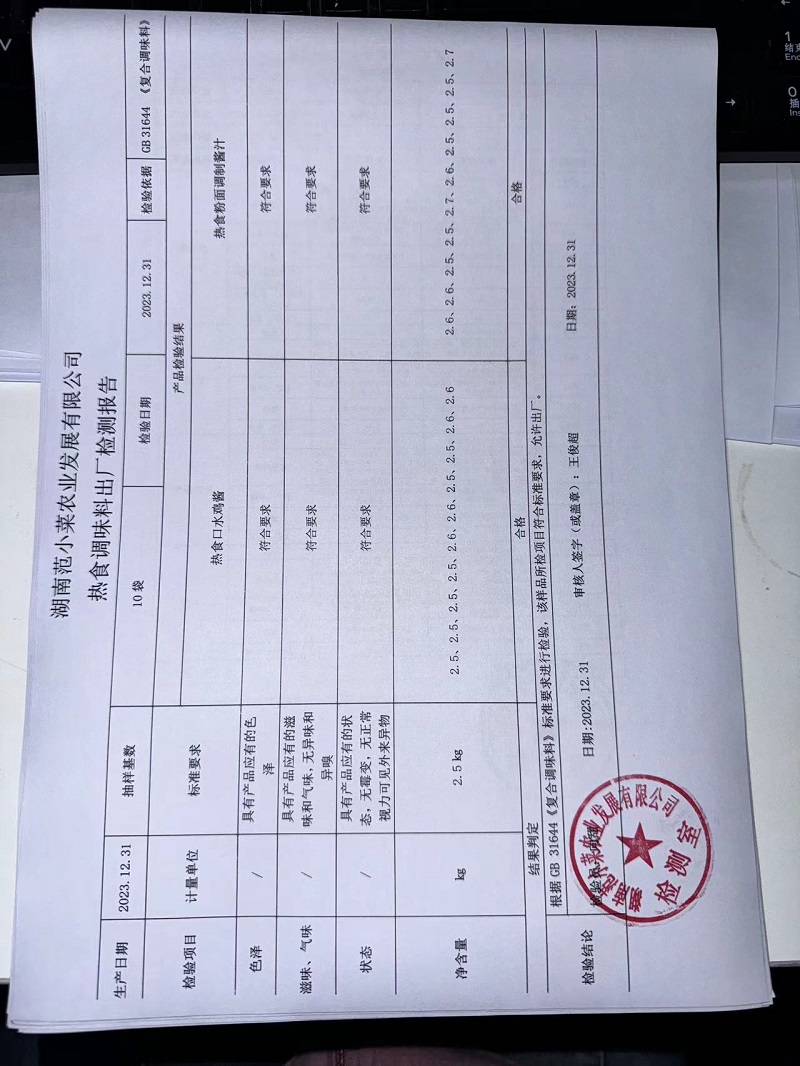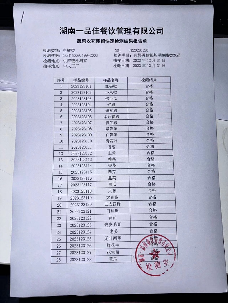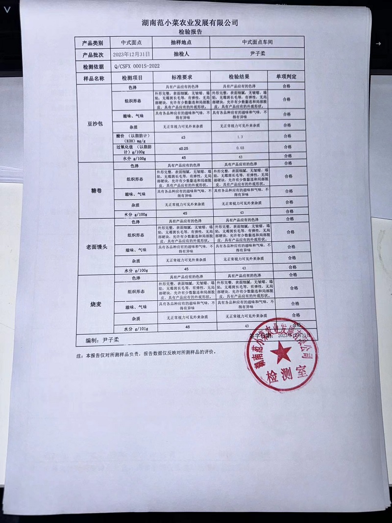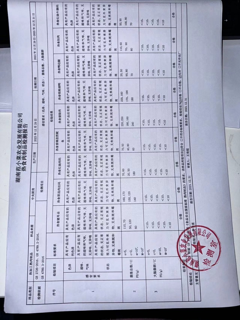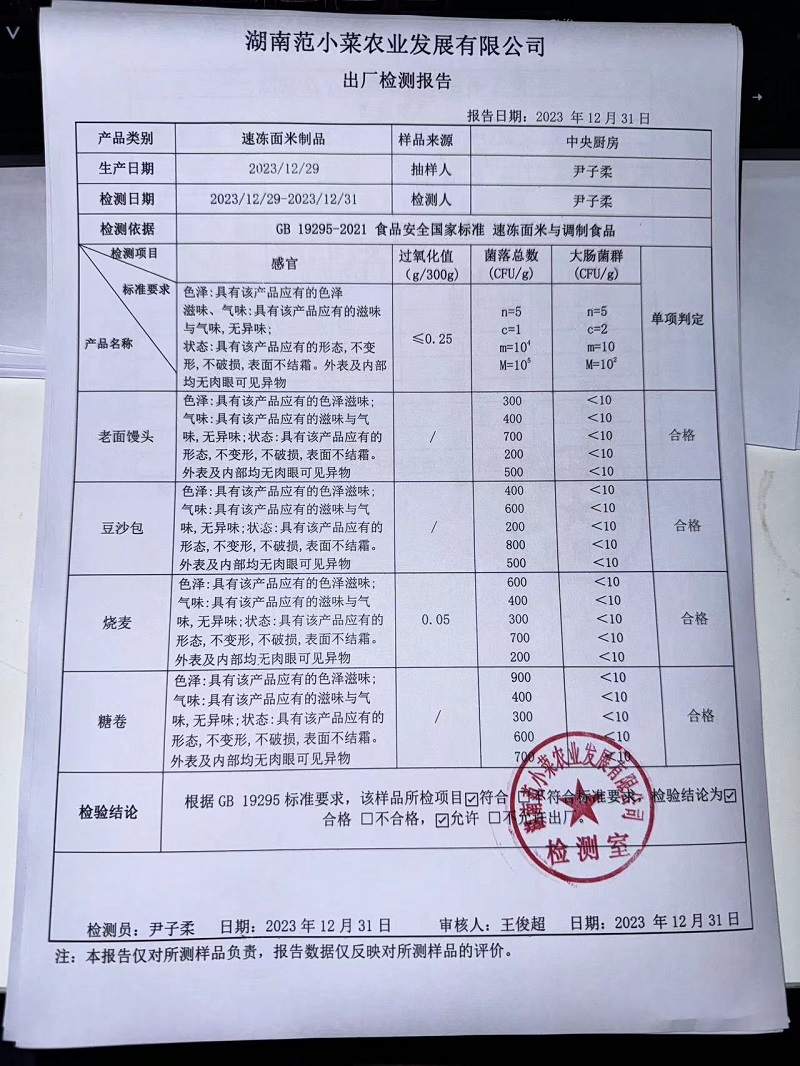 范小菜、一品佳热食肉制品、调味料、意面、农残、水产、中点、速冻米面制品2023.12.31