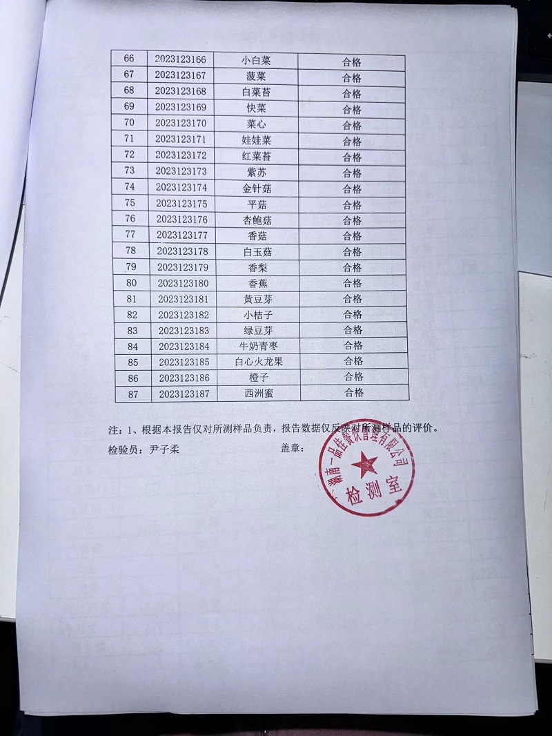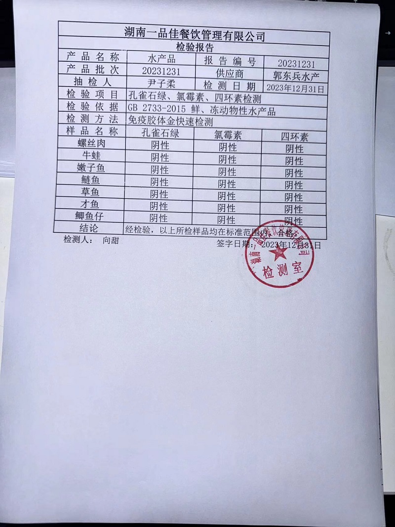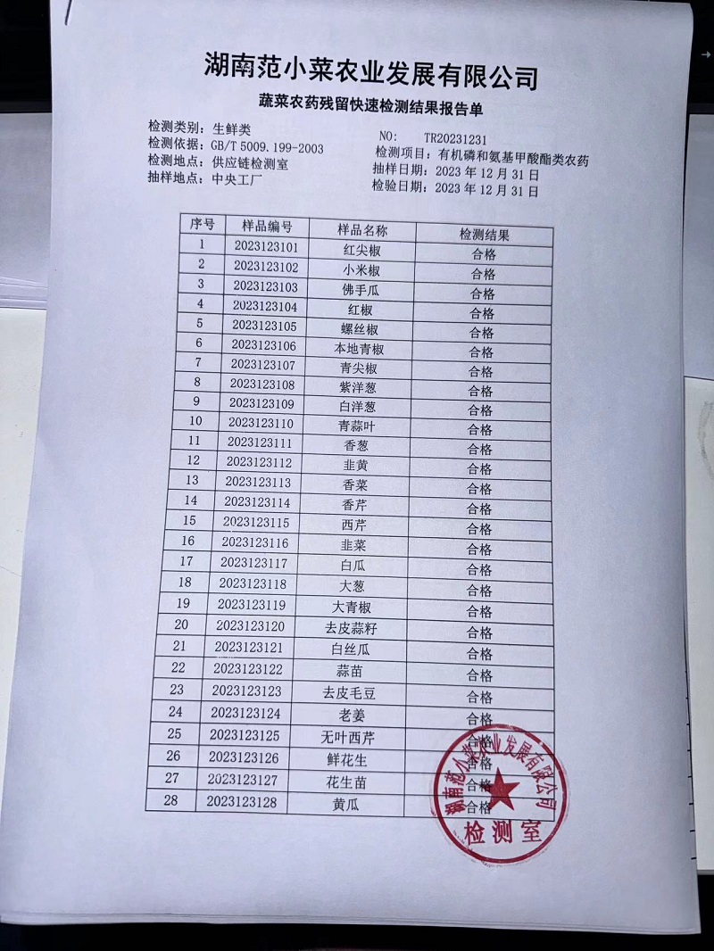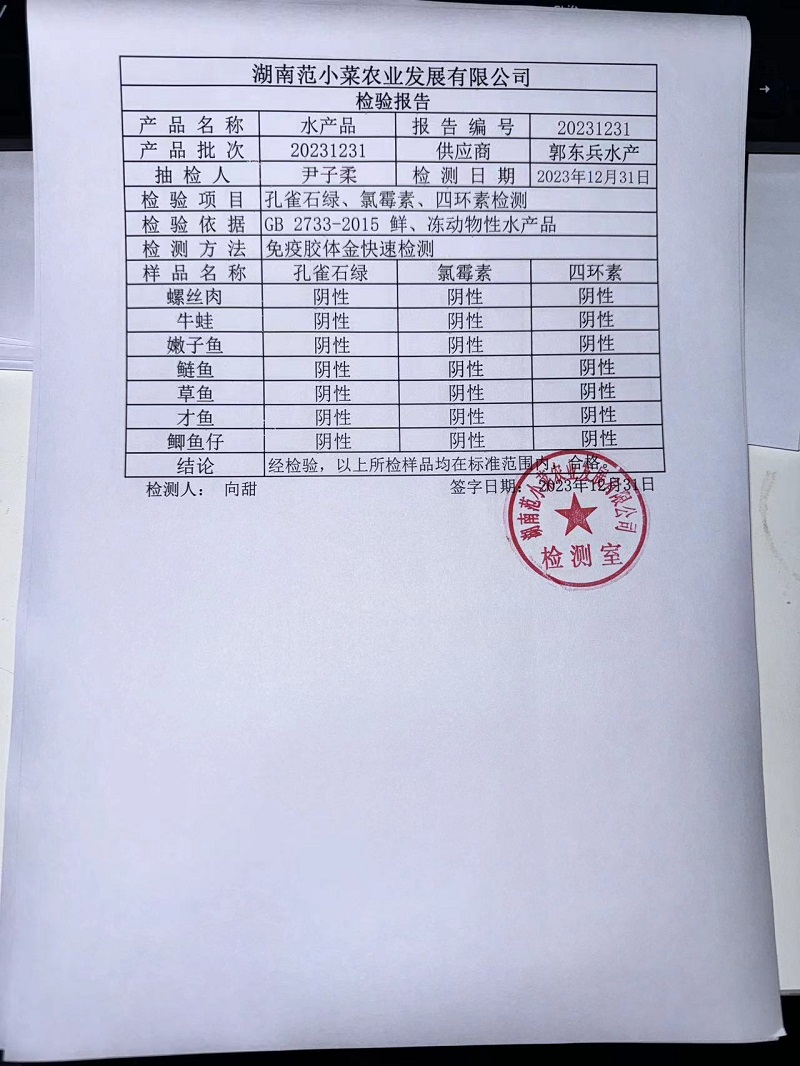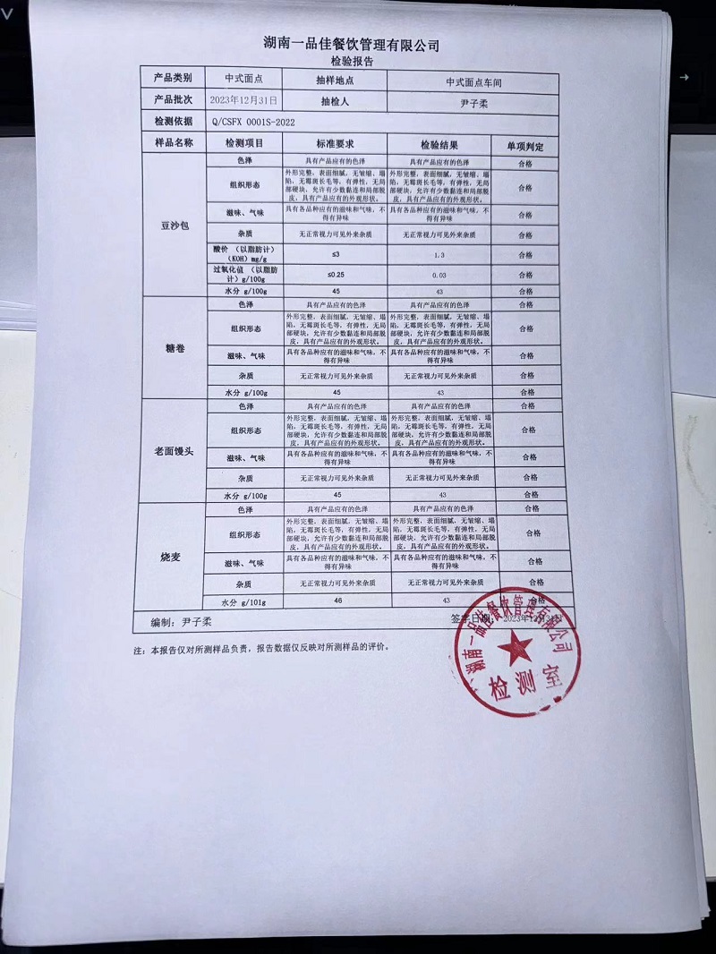 范小菜、一品佳热食肉制品、调味料、意面、农残、水产、中点、速冻米面制品2023.12.31