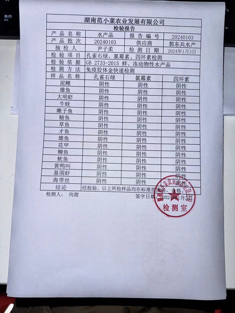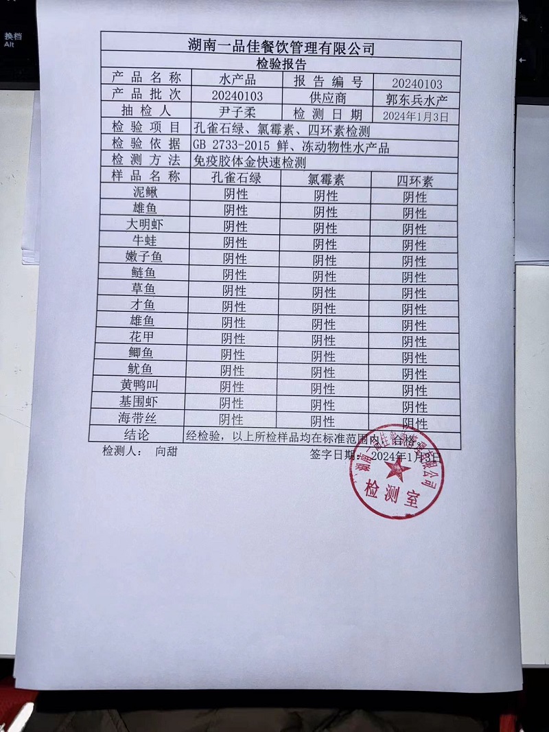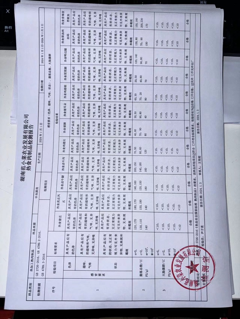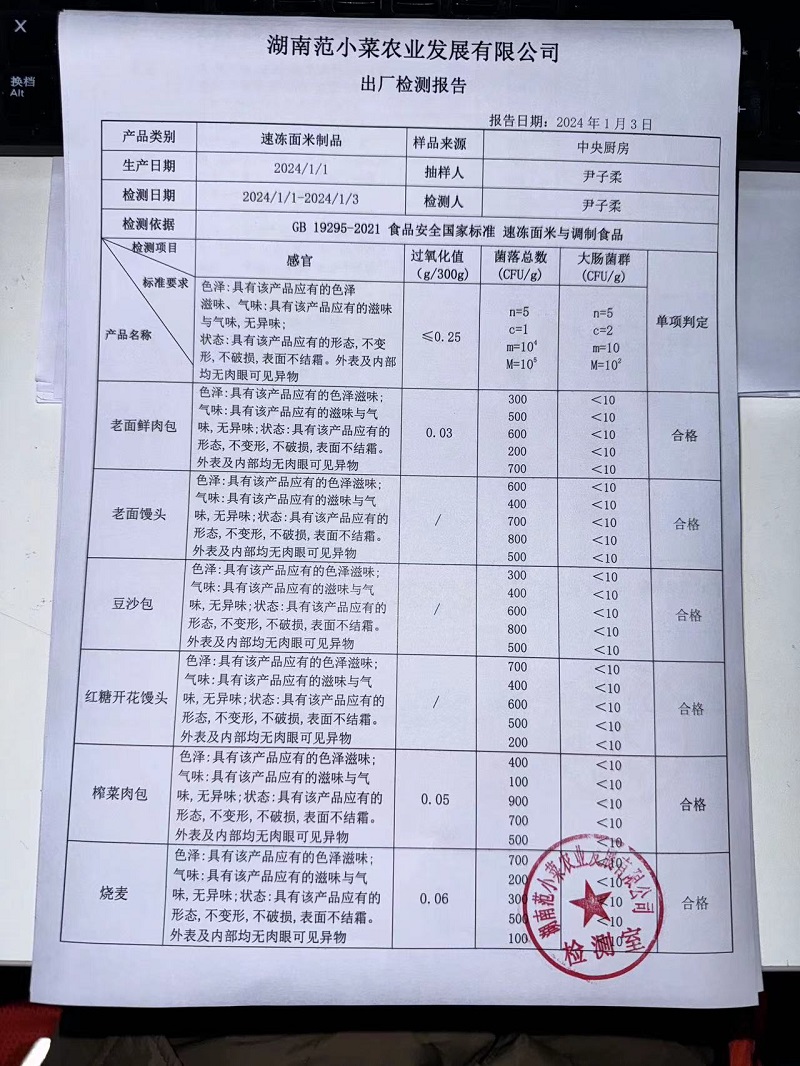 范小菜、一品佳热食肉制品、调味料、意面、农残、水产、中点、速冻米面制品2024.1.3