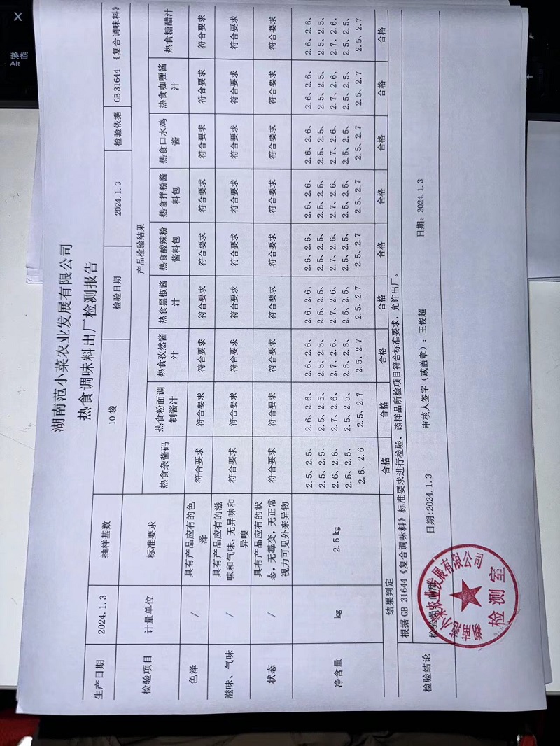 范小菜、一品佳热食肉制品、调味料、意面、农残、水产、中点、速