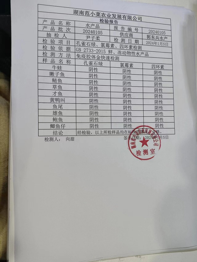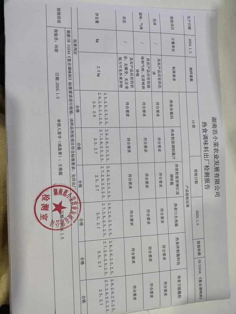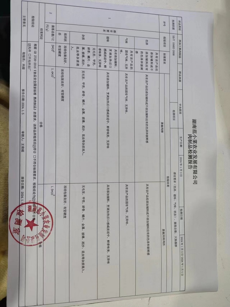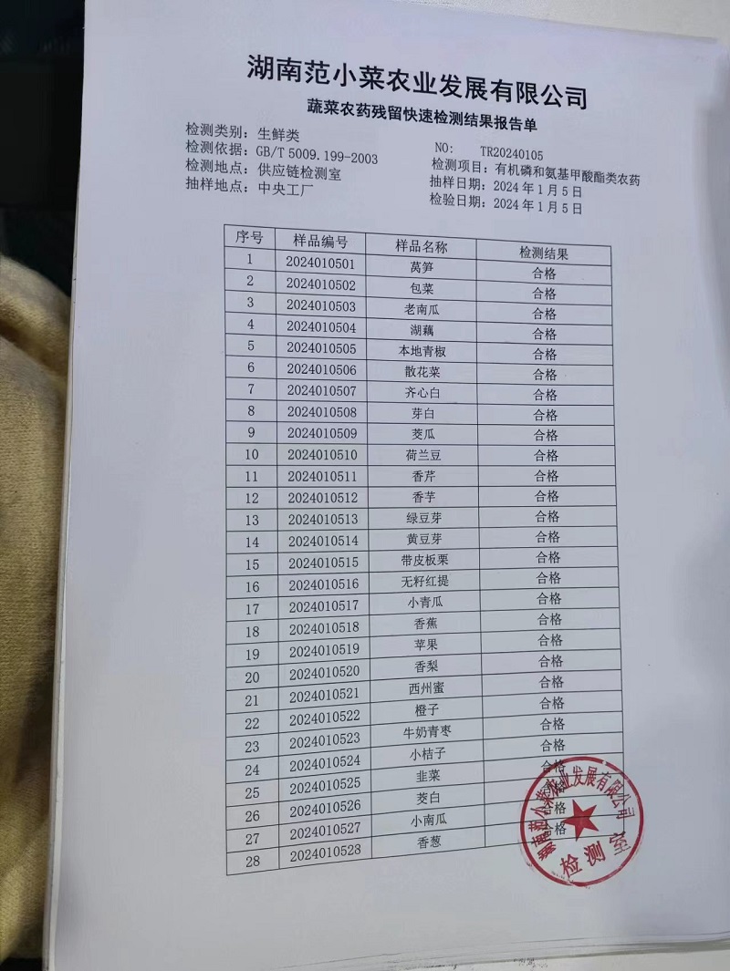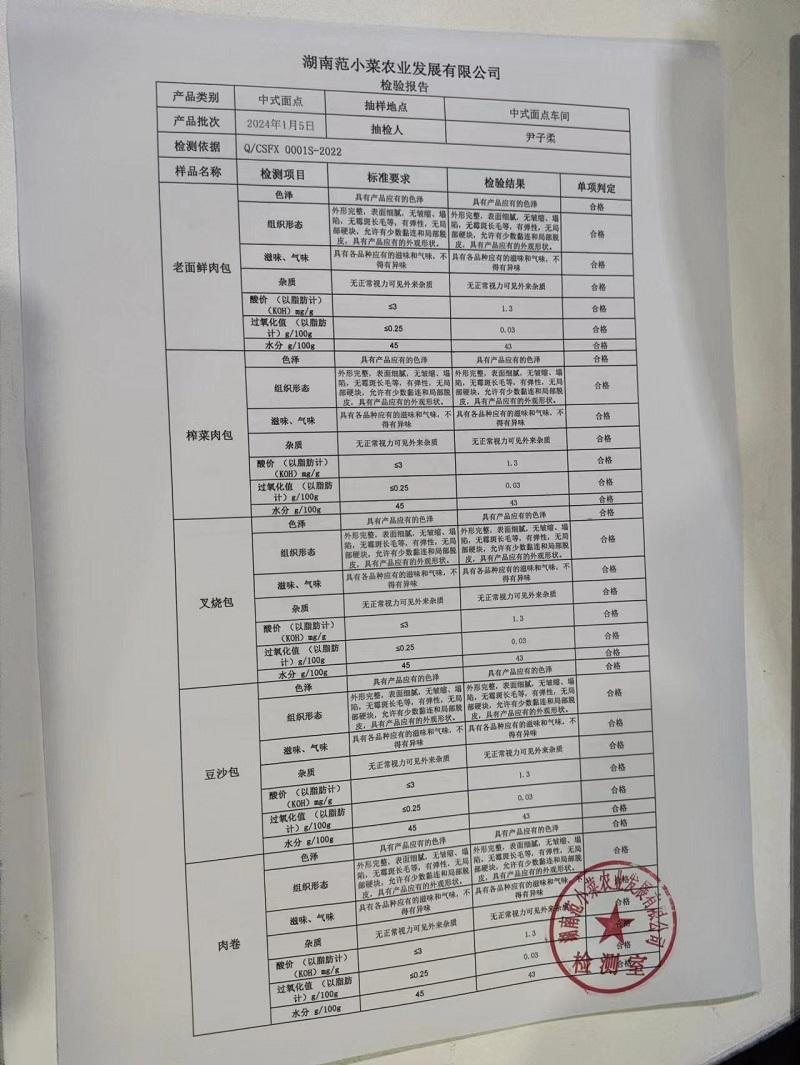 范小菜、一品佳热食肉制品、调味料、意面、农残、水产、中点、速冻米面制品2024.1.5