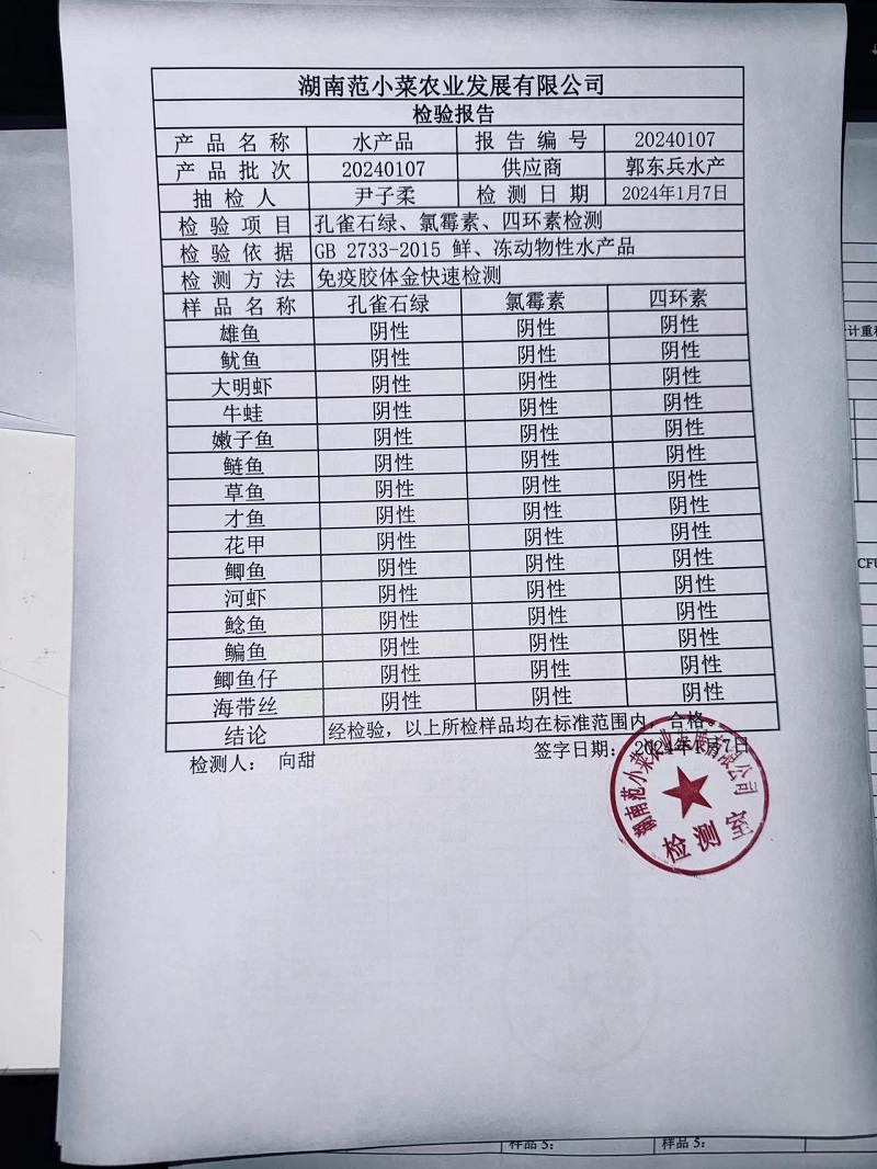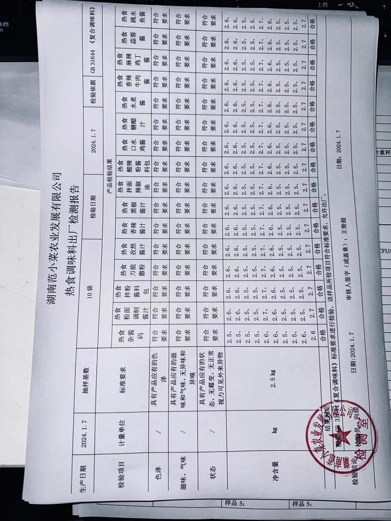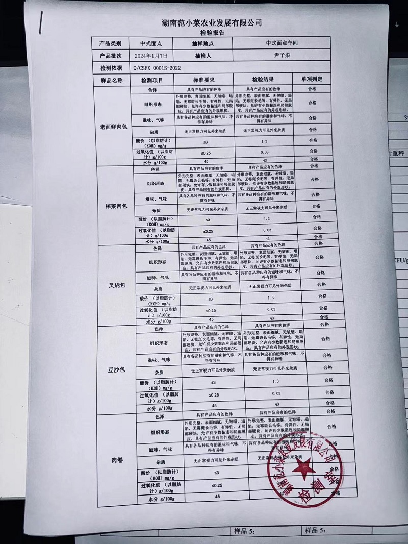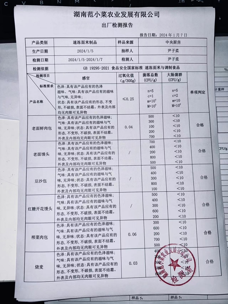 范小菜、一品佳热食肉制品、调味料、意面、农残、水产、中点、速冻米面制品2024.1.7
