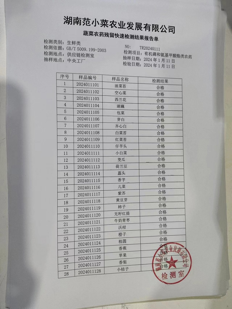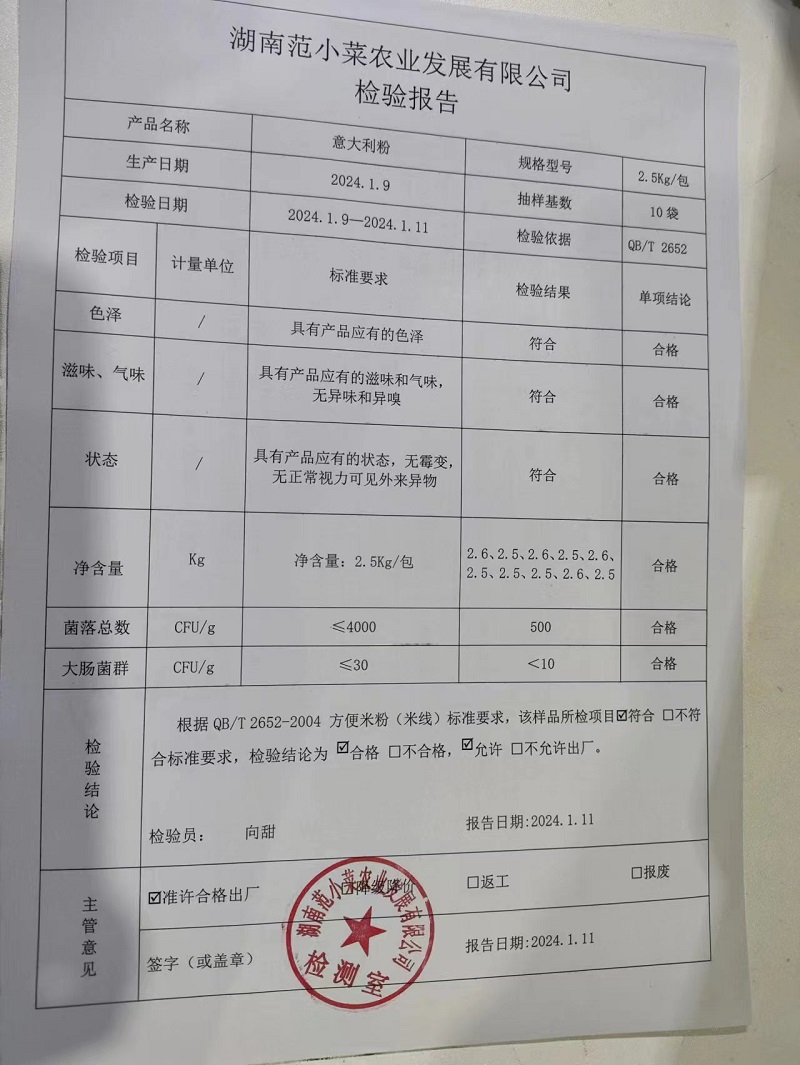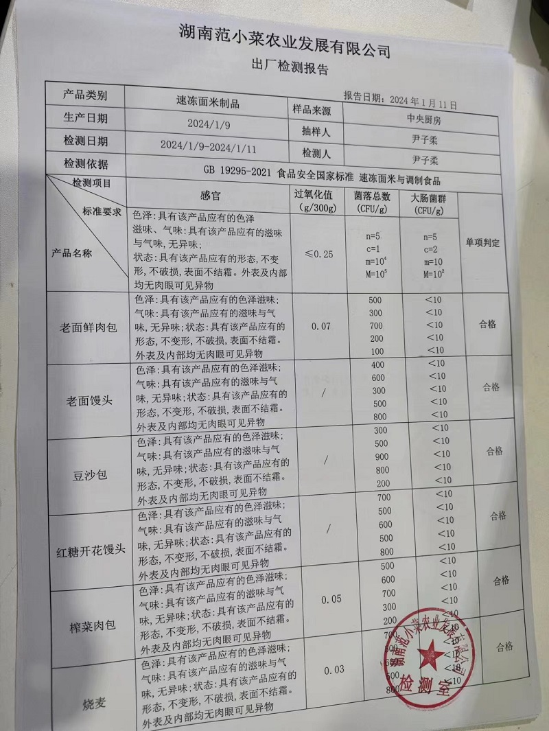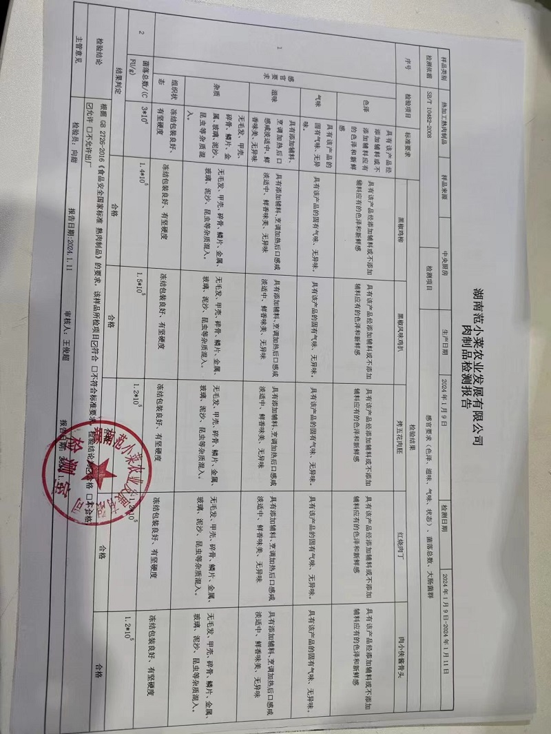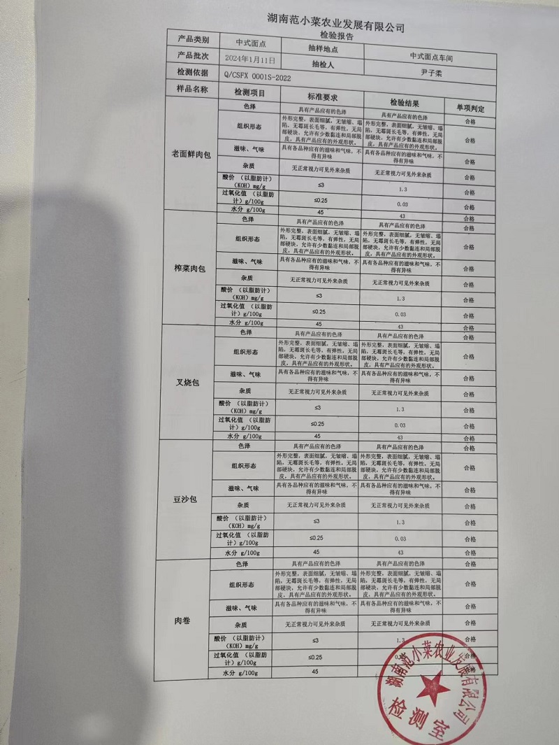 范小菜、一品佳热食肉制品、调味料、意面、农残、水产、中点、速冻米面制品2024.1.11