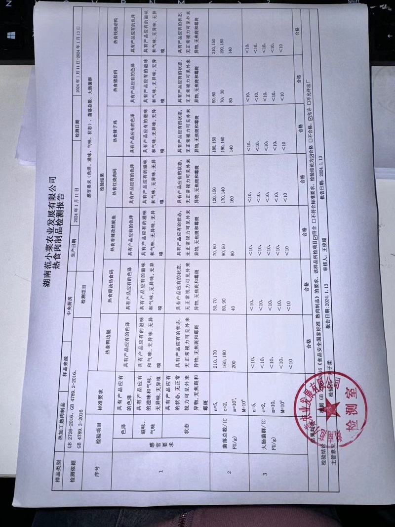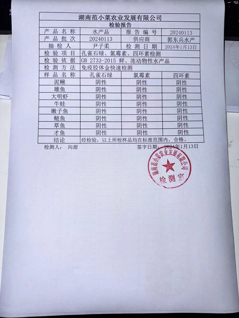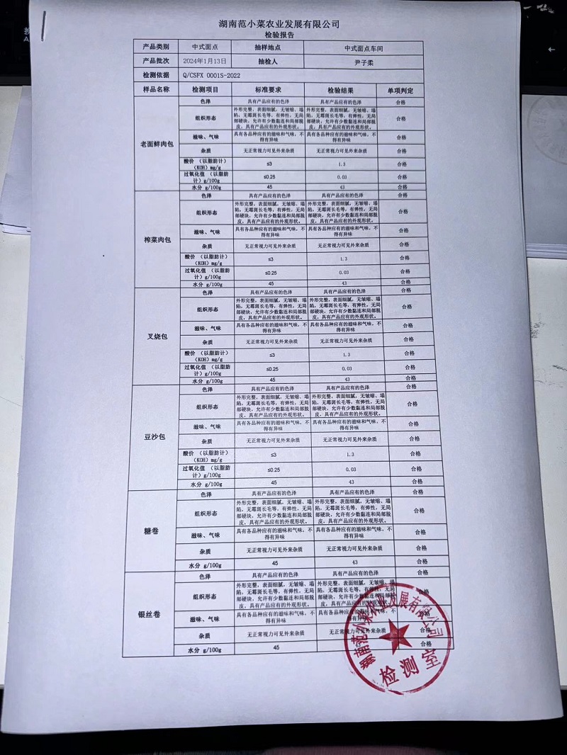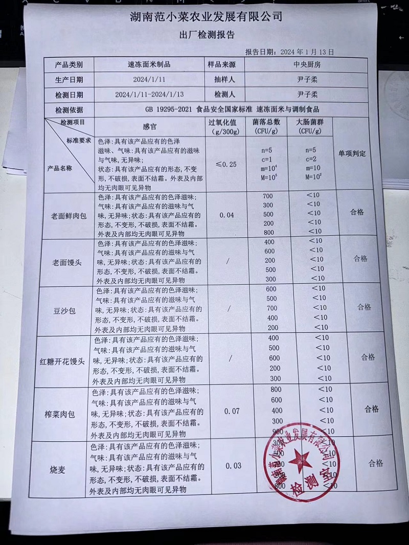 范小菜、一品佳热食肉制品、调味料、意面、农残、水产、中点、速冻米面制品2024.1.13