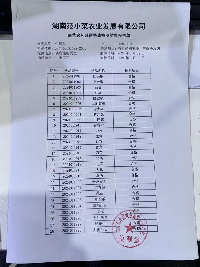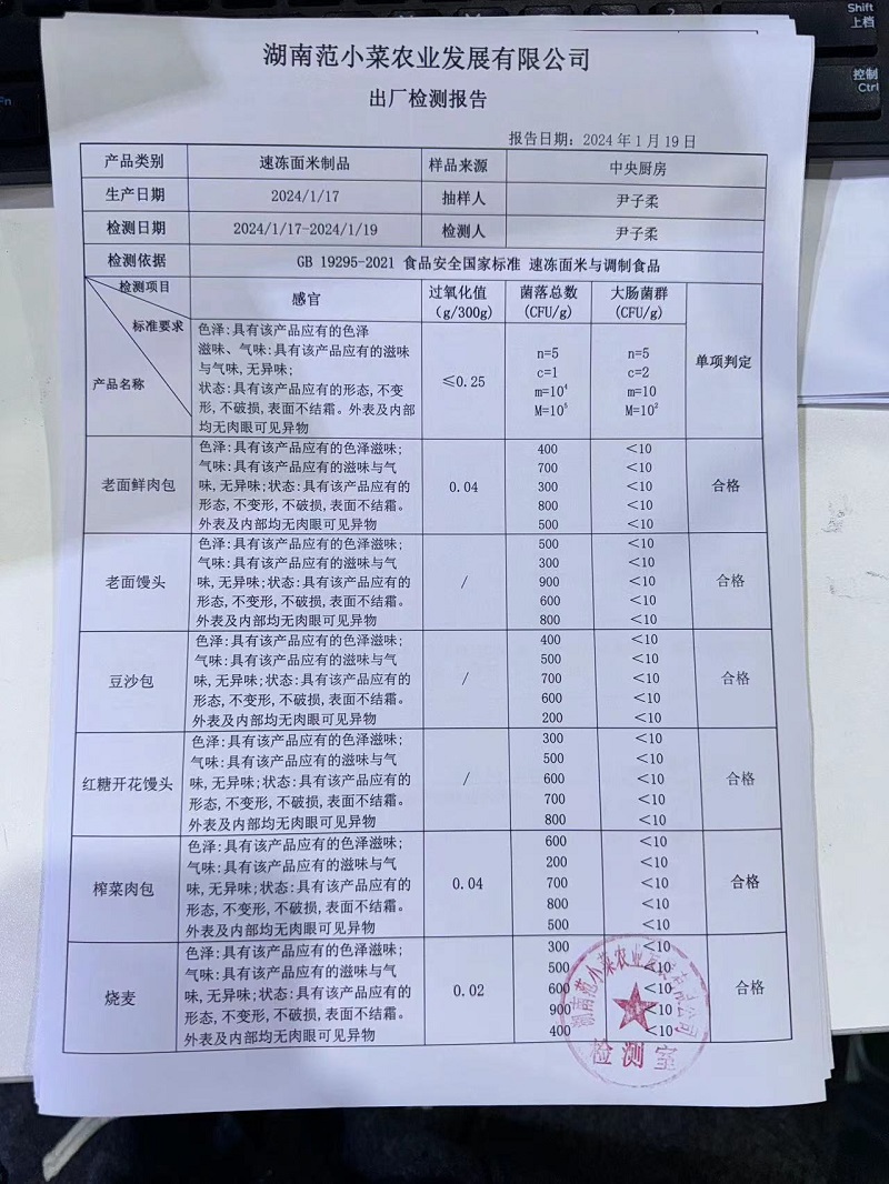 范小菜、一品佳热食肉制品、调味料、意面、农残、水产、中点、速冻米面制品2024.1.19