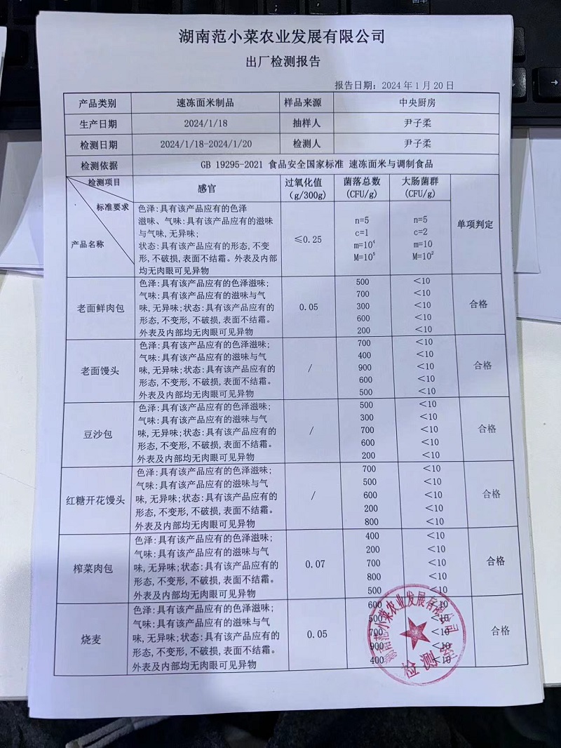 范小菜、一品佳热食肉制品、调味料、意面、农残、水产、中点、速冻米面制品2024.1.20