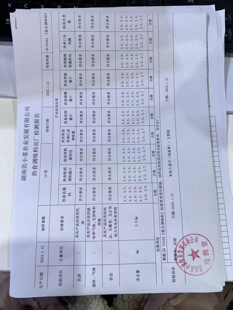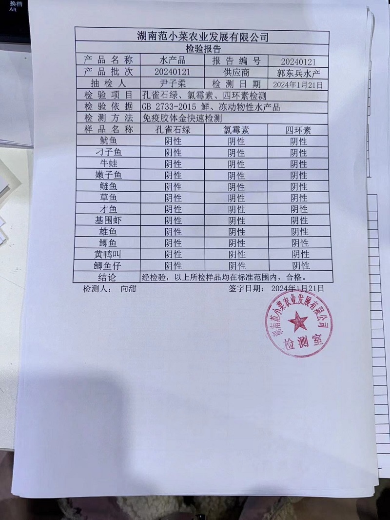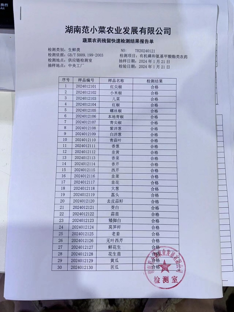 范小菜、一品佳热食肉制品、调味料、意面、农残、水产、中点、速冻米面制品2024.1.21